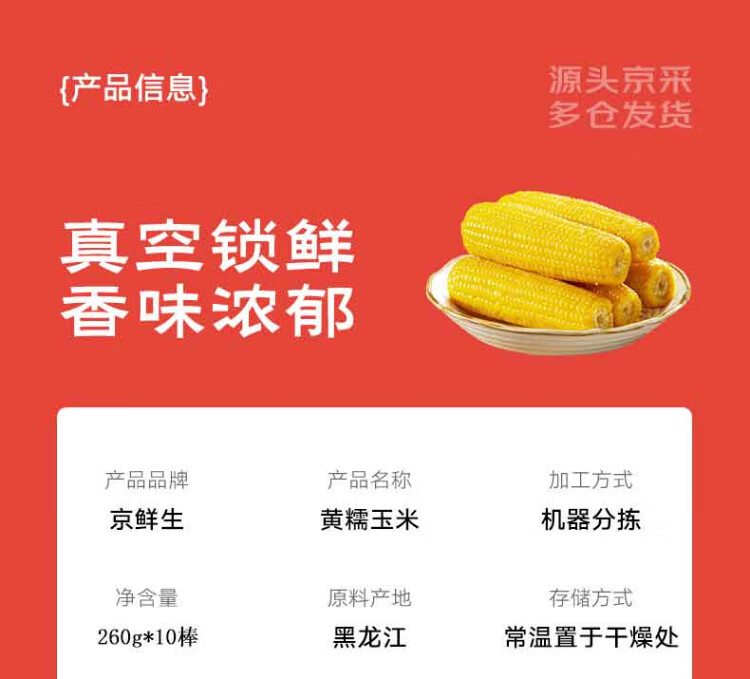 Jingxiansheng Northeastern Yellow Corn 260g*10 Cobs Vacuum Packaging Sticky Corn Sticky Corn Straight from the Source