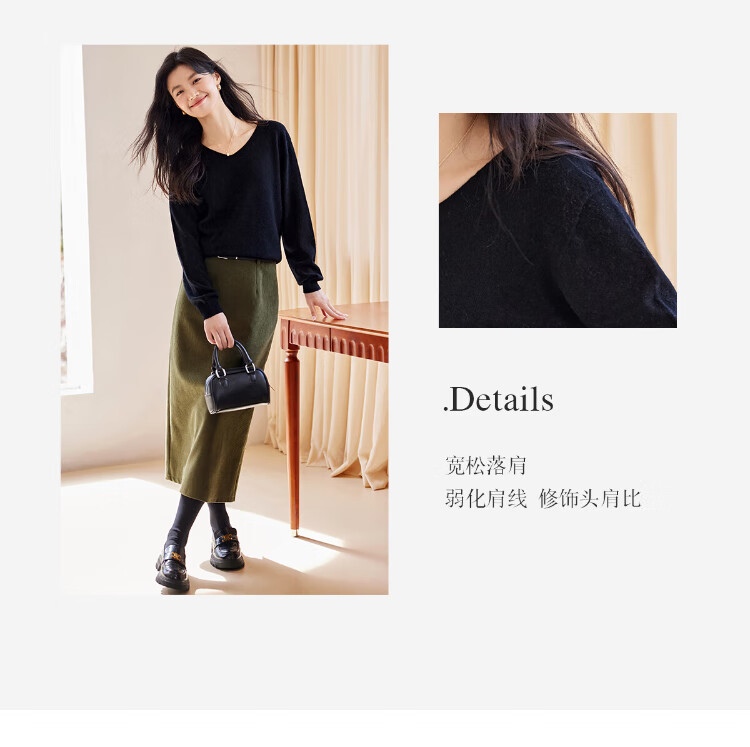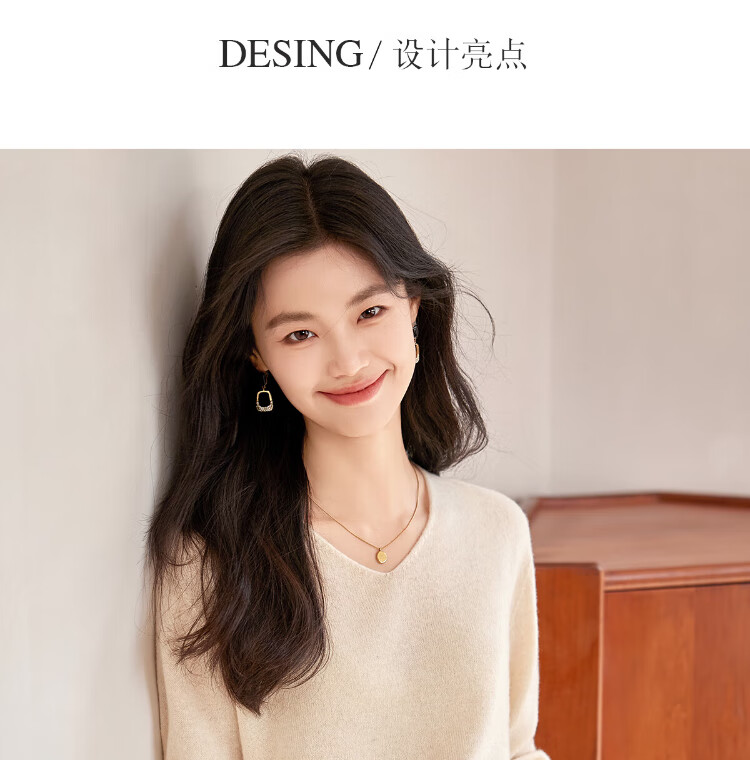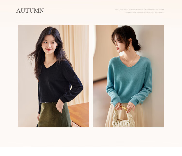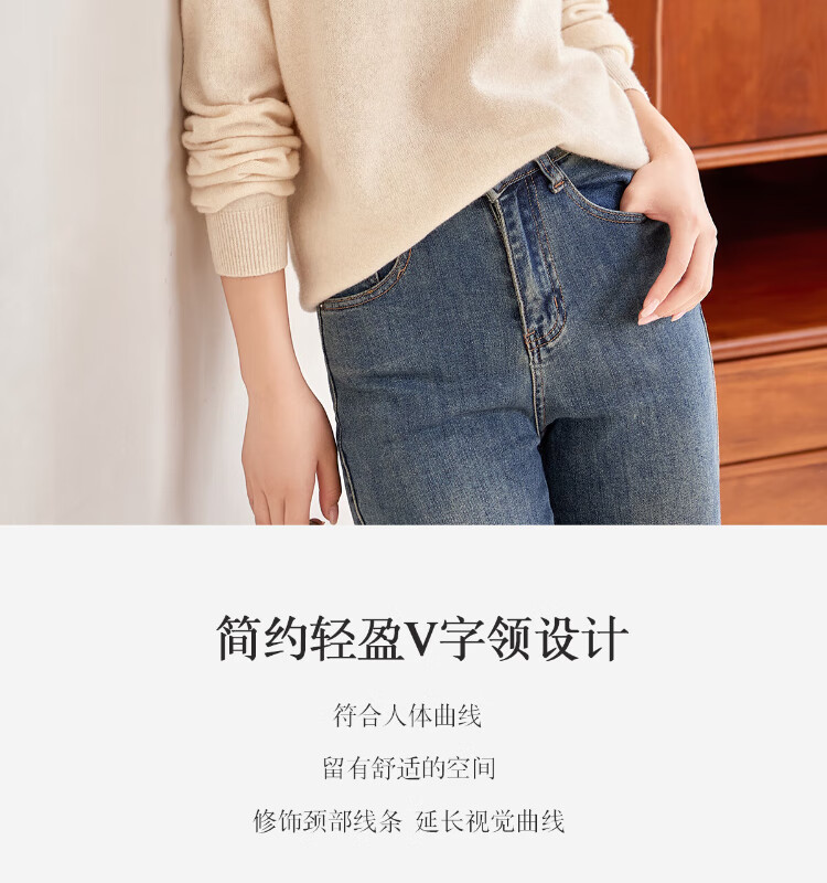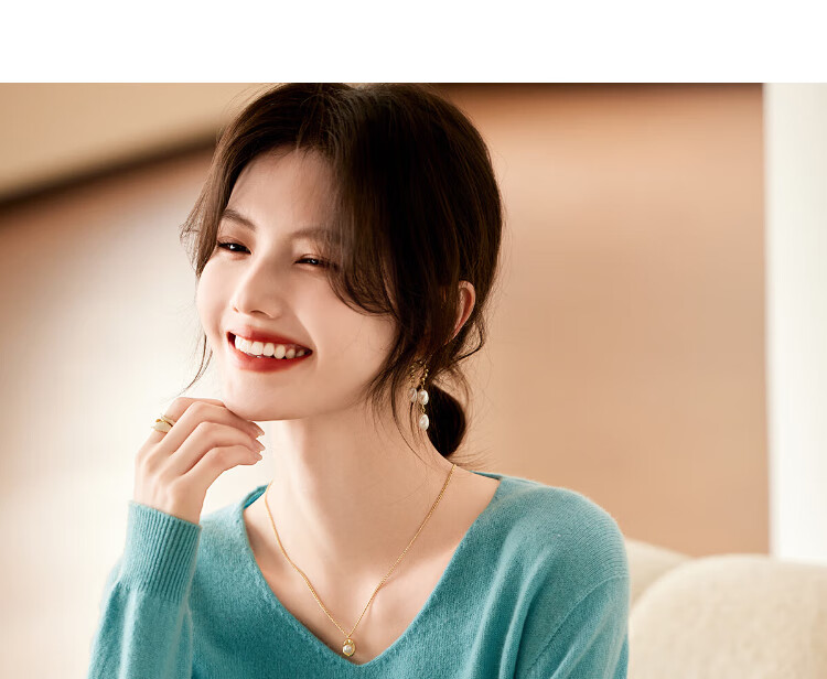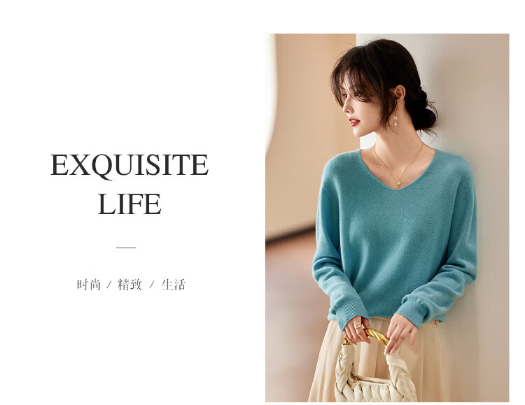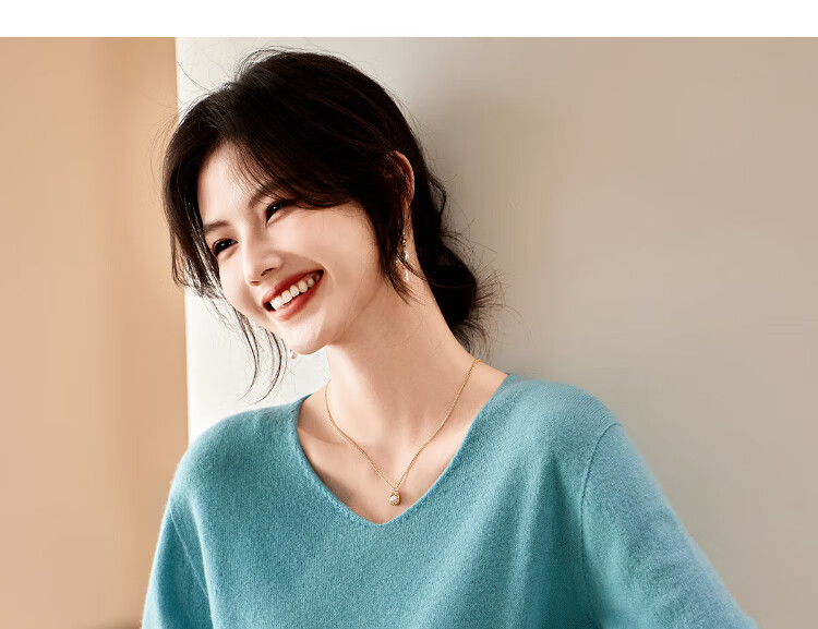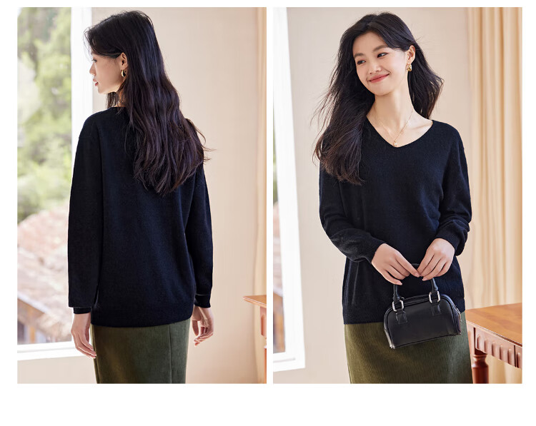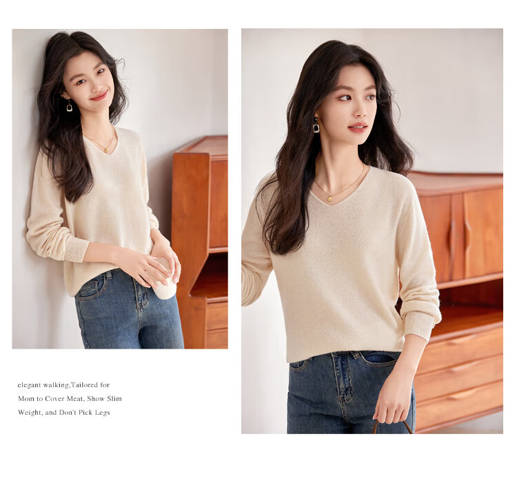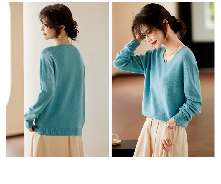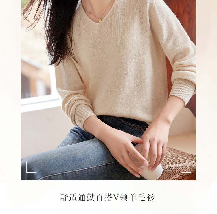 She enjoys 100% pure wool sweater, feminine V-neck sweater, women's wool sweater base top, recommended 100-130 Jin Jin equals 0.5 kg