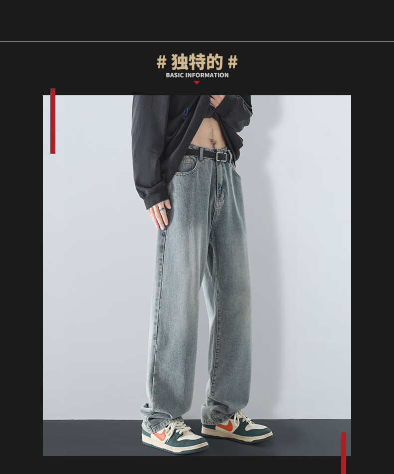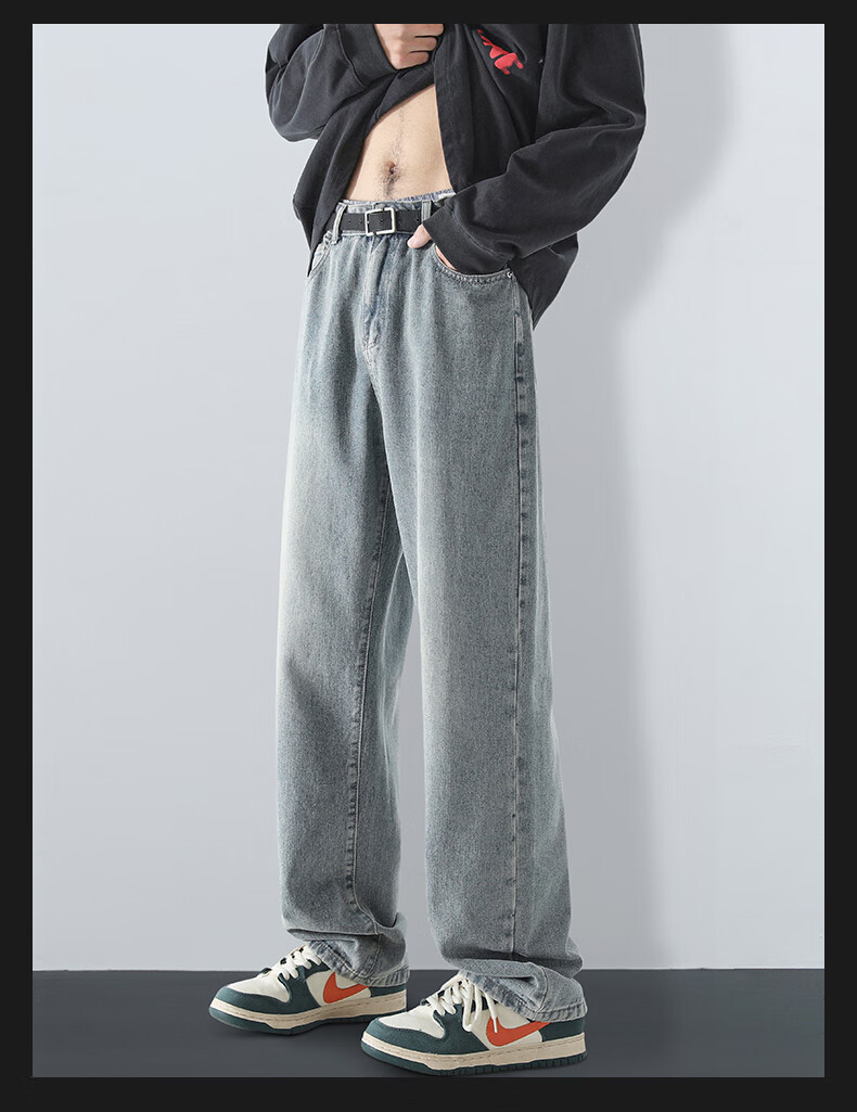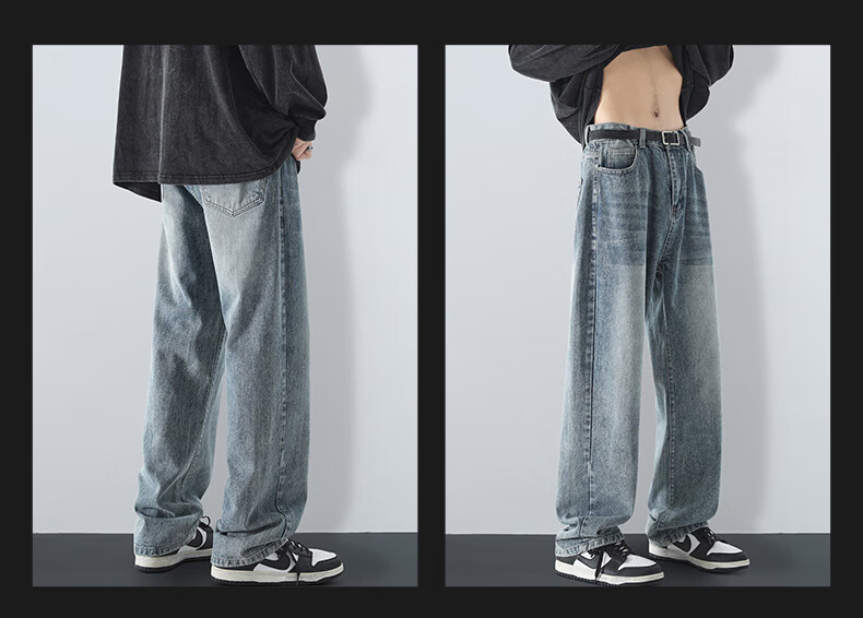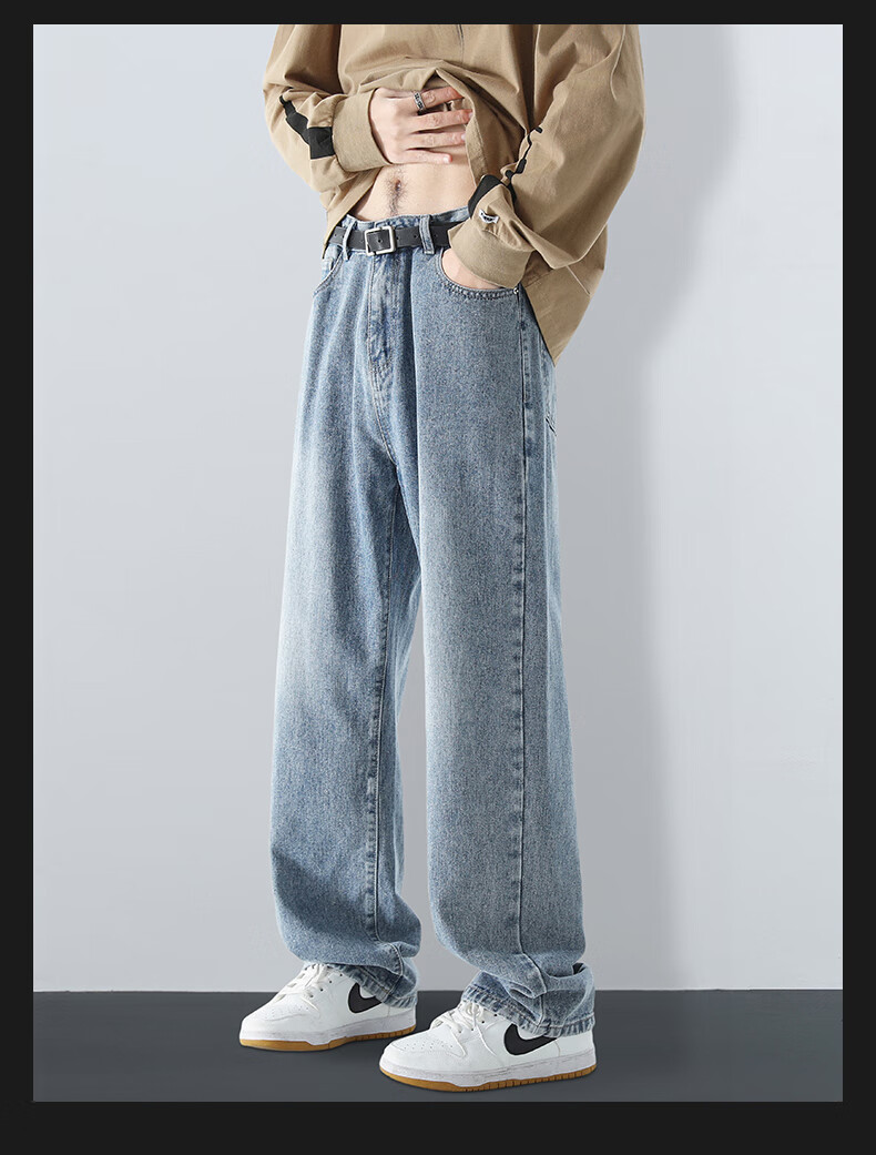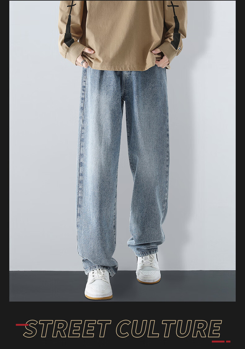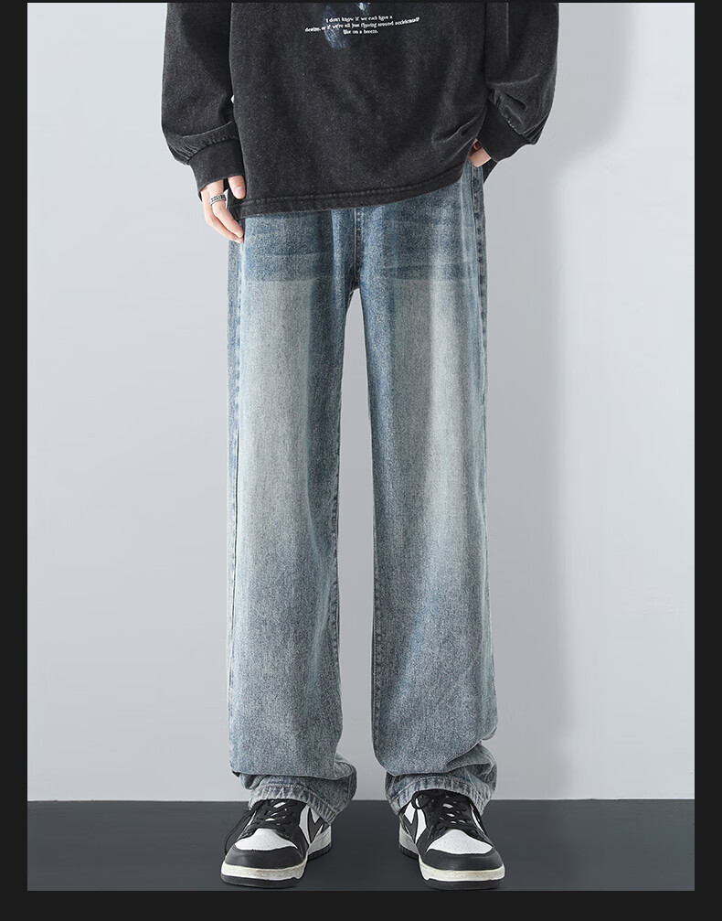 MAYBEYOND jeans men's autumn and winter loose casual straight pants trendy American pants men MA73 retro blue 2XL