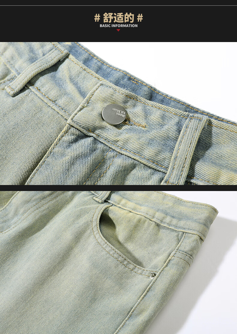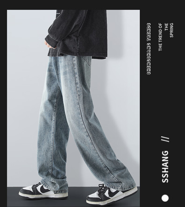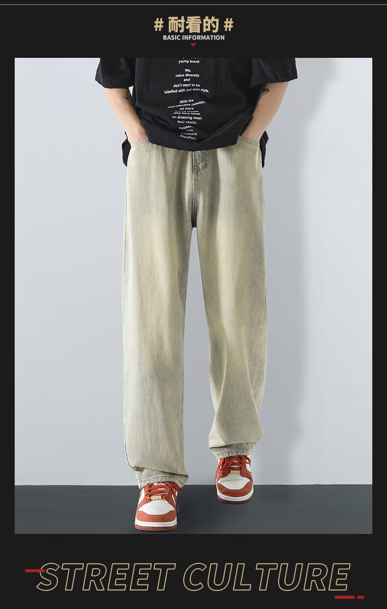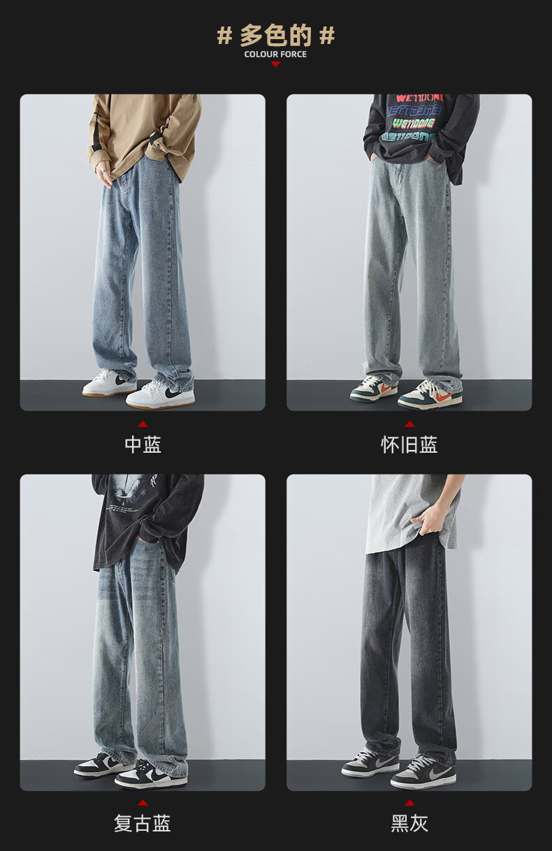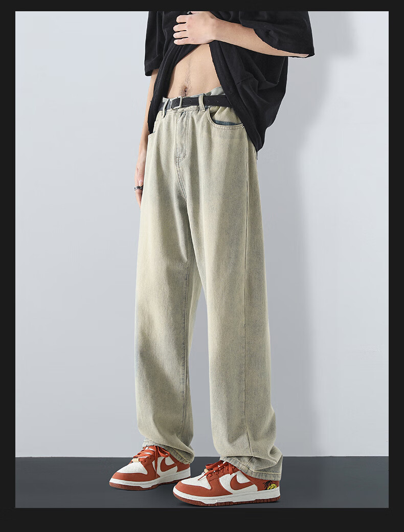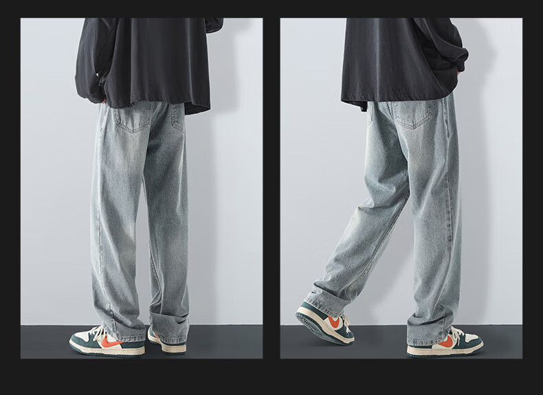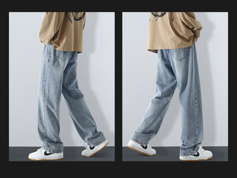 MAYBEYOND jeans men's autumn and winter loose casual straight pants trendy American pants men MA73 retro blue 2XL