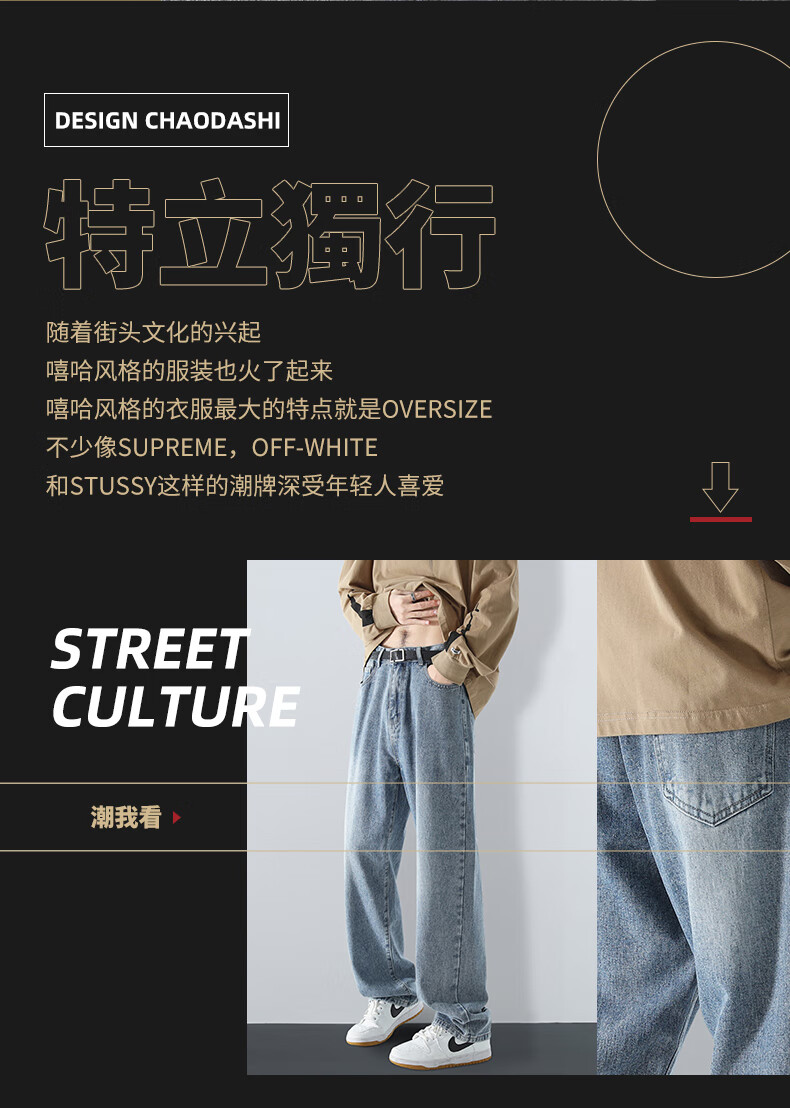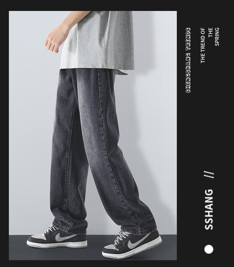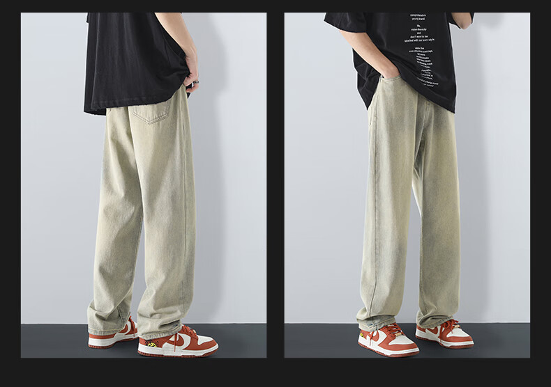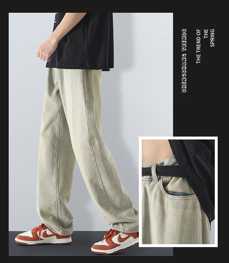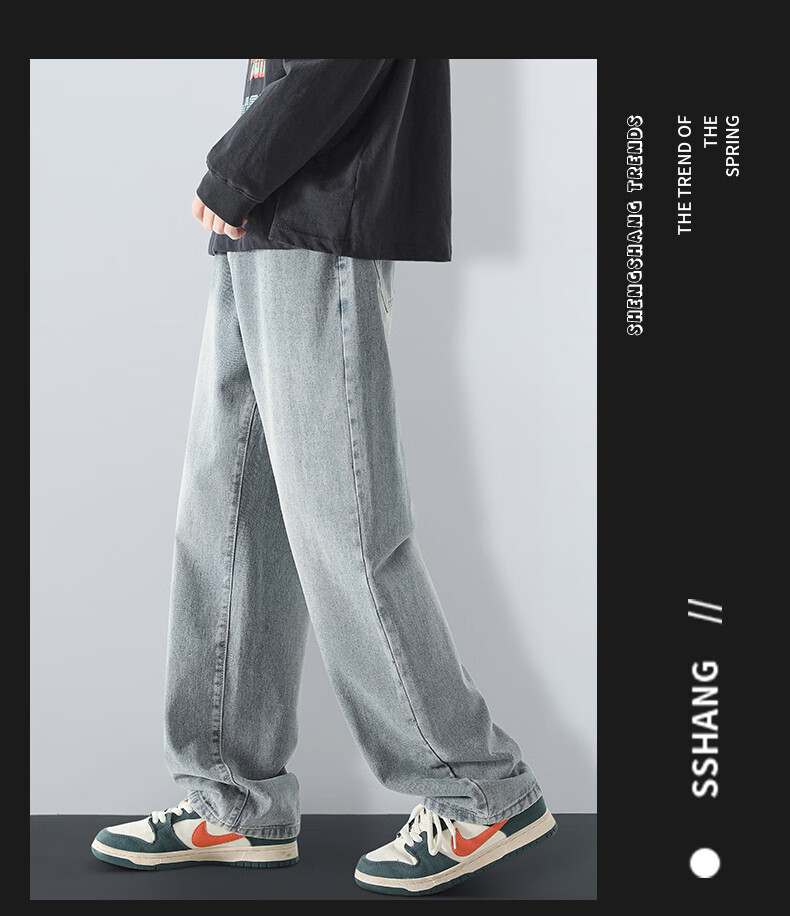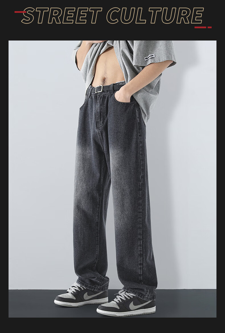 MAYBEYOND jeans men's autumn and winter loose casual straight pants trendy American pants men MA73 retro blue 2XL