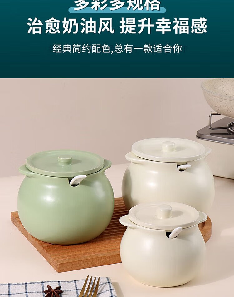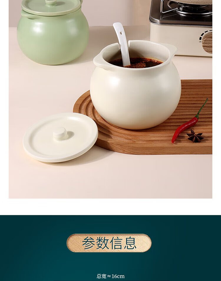 Baijie ceramic lard tank high temperature resistant food grade meat oil tank oil storage tank seasoning tank salt tank chili oil tank 1400ml