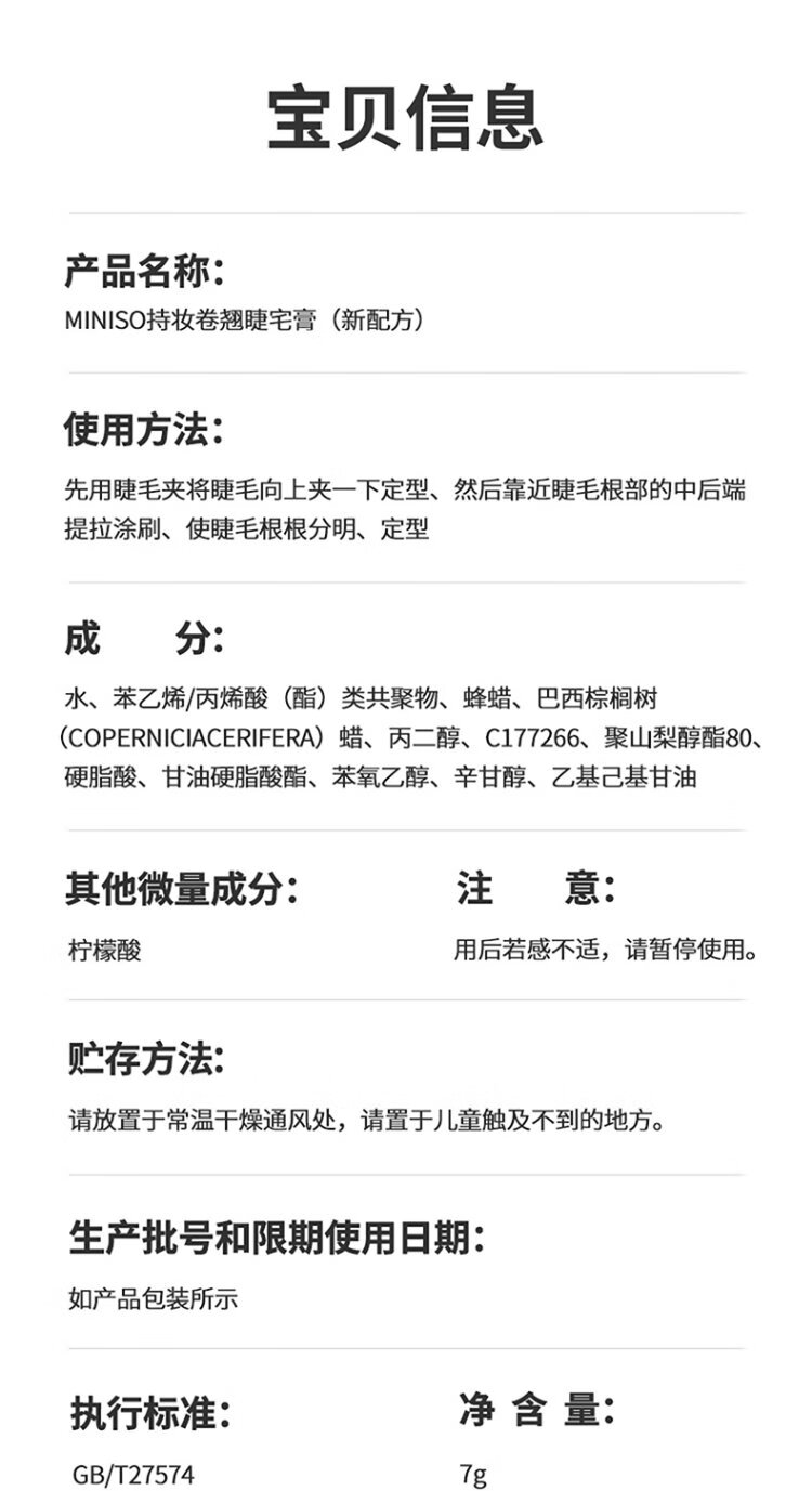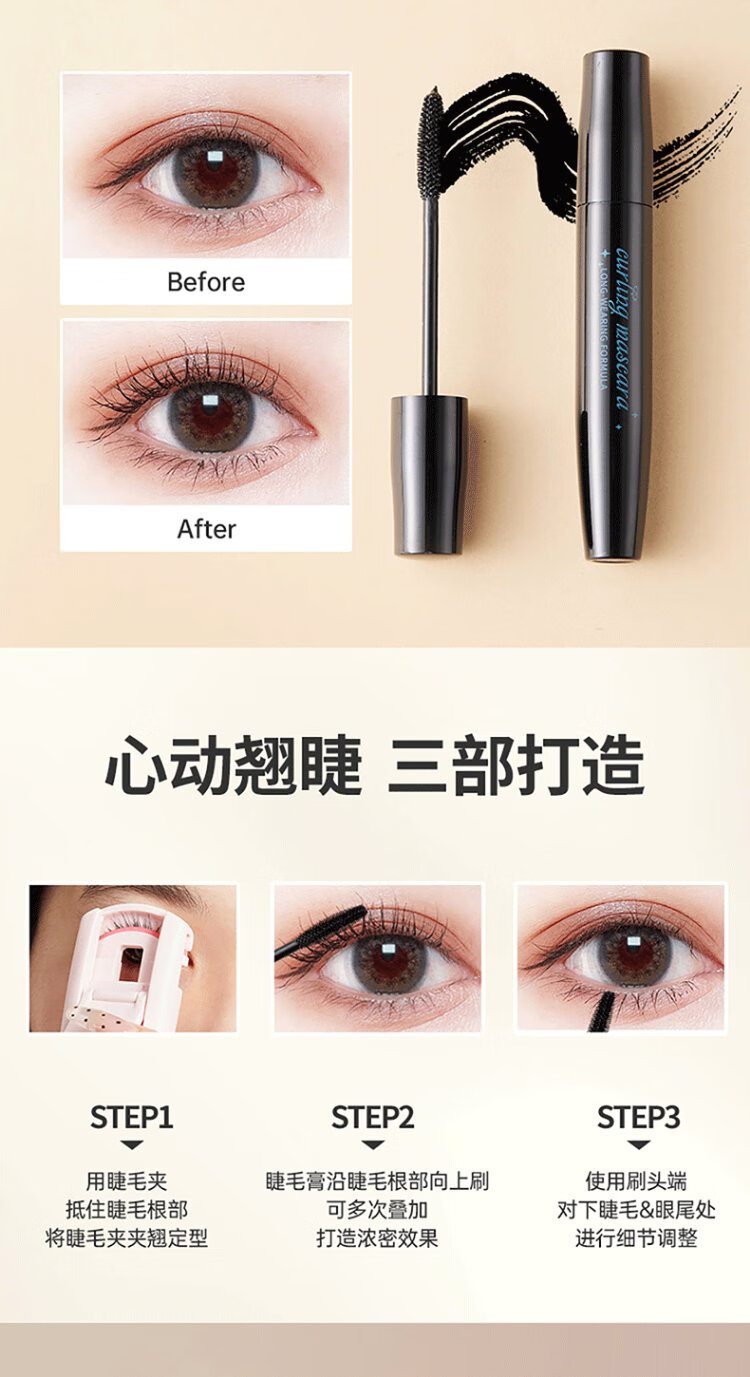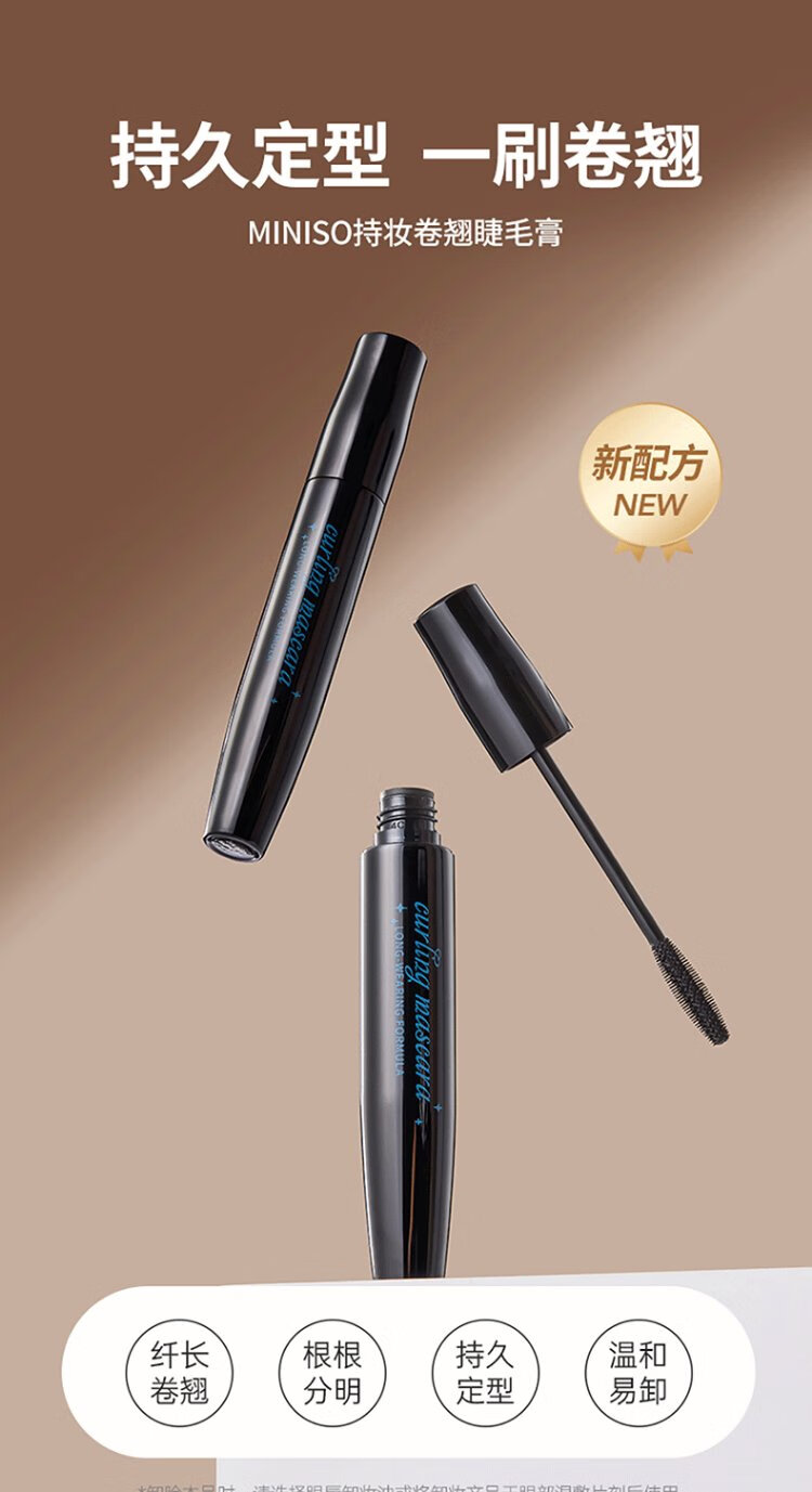 MINISO long-lasting curling mascara, waterproof, sweat-proof, non-smudge-proof birthday gift for women, black (new formula)