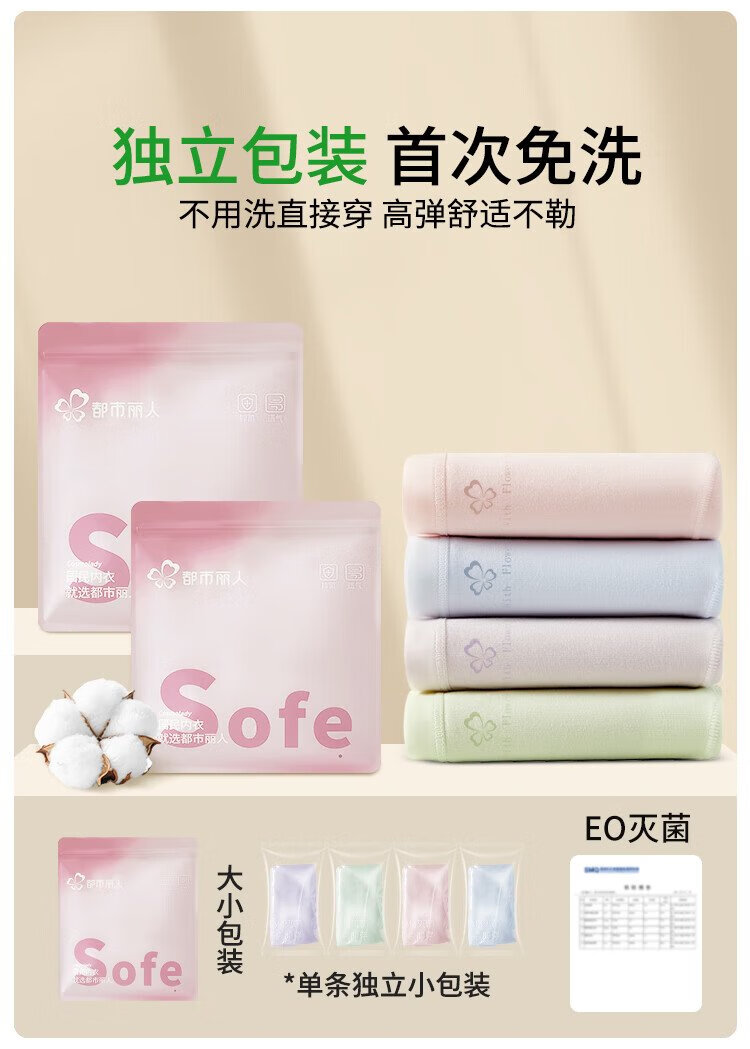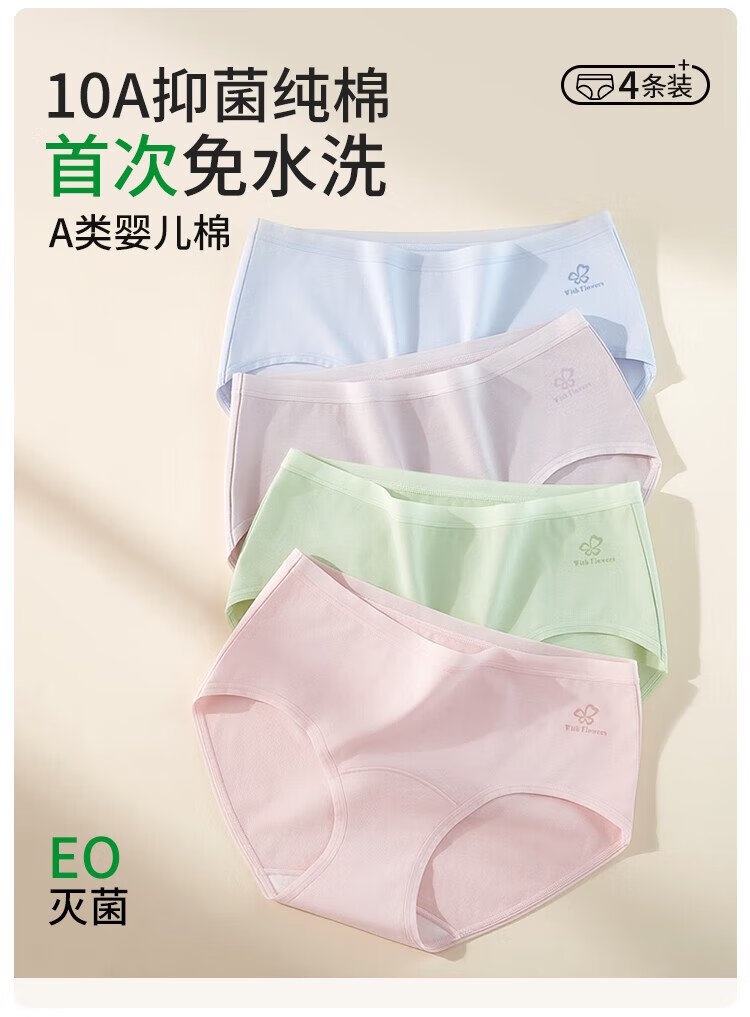 Urban Beauty Class A cotton women's underwear for women 100% cotton 10A antibacterial mid-waist girls' briefs individually packaged 4 L