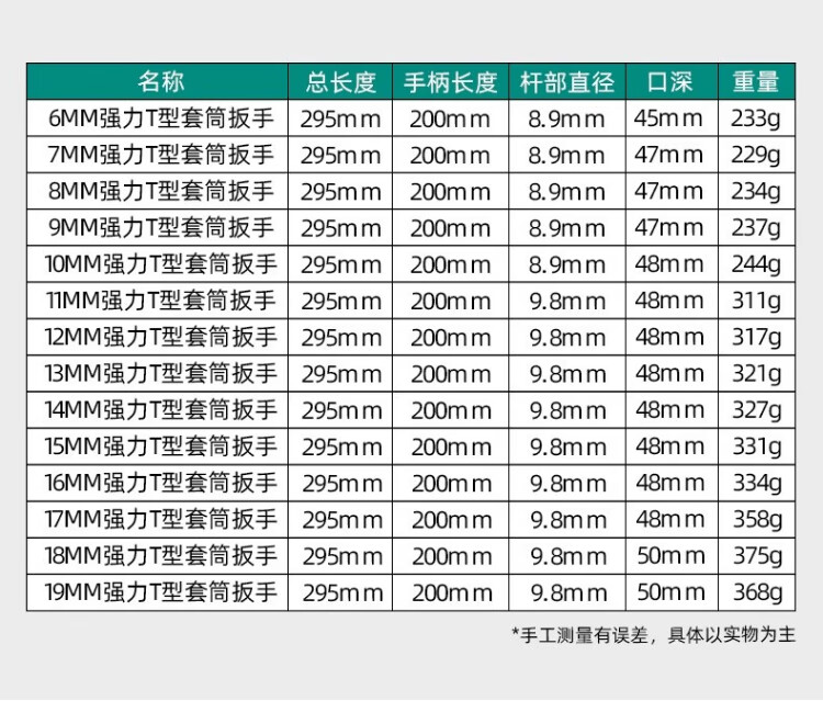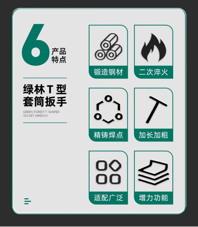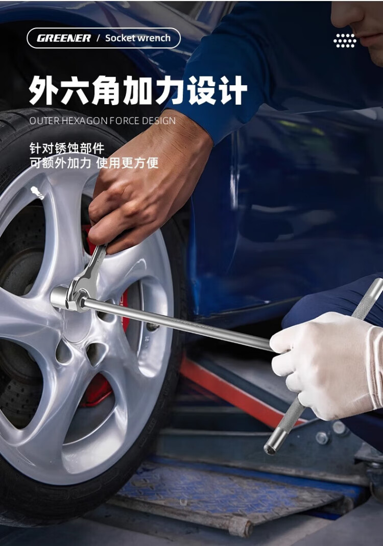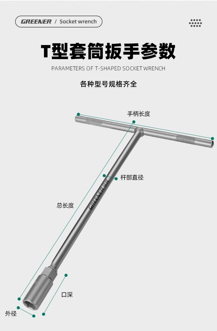 GREENER manual T-shaped socket wrench, multi-functional household T-shaped external hexagonal wrench, automobile and motorcycle repair tool