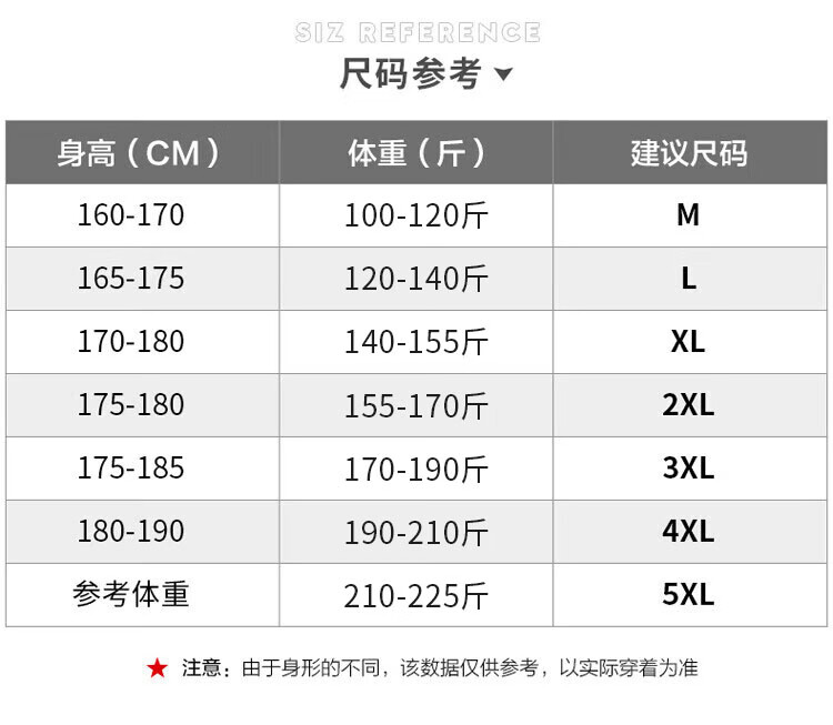 China (cm) 165 / 88-90 170 / 96-98 175 / 108-110 180 / 118-122 185 / 126-130