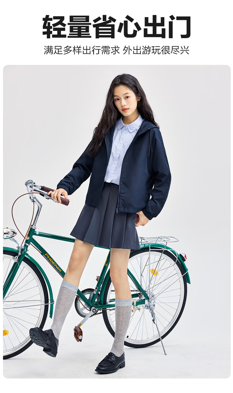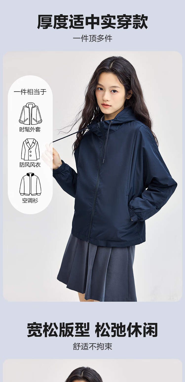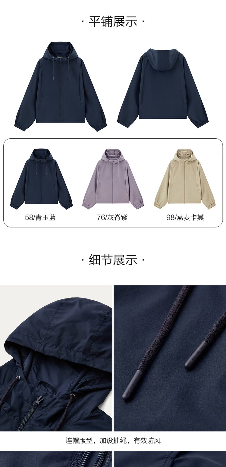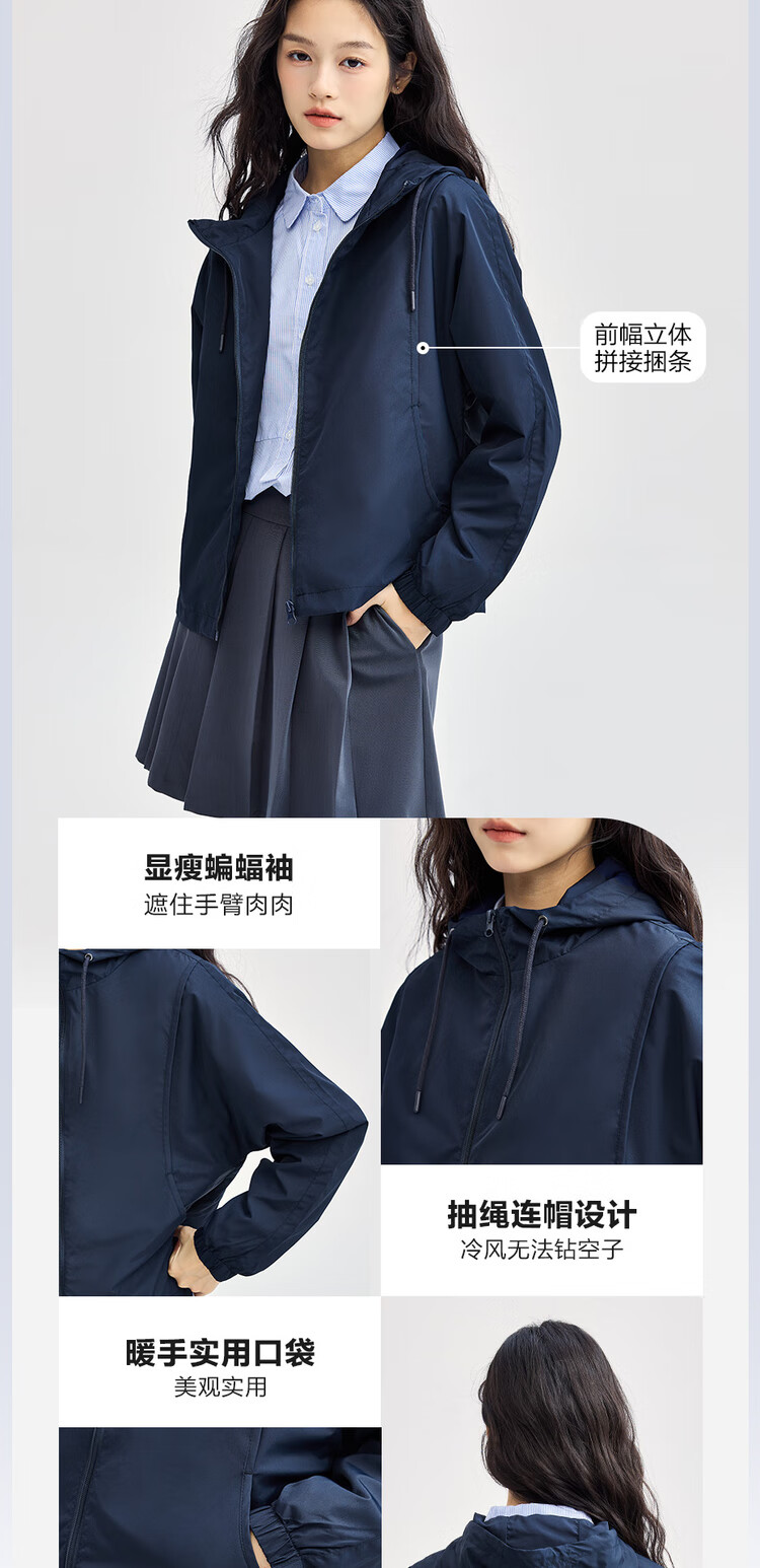 Giordano casual jacket women's outdoor sports jacket spliced baton sleeve hooded windbreaker women 13374842