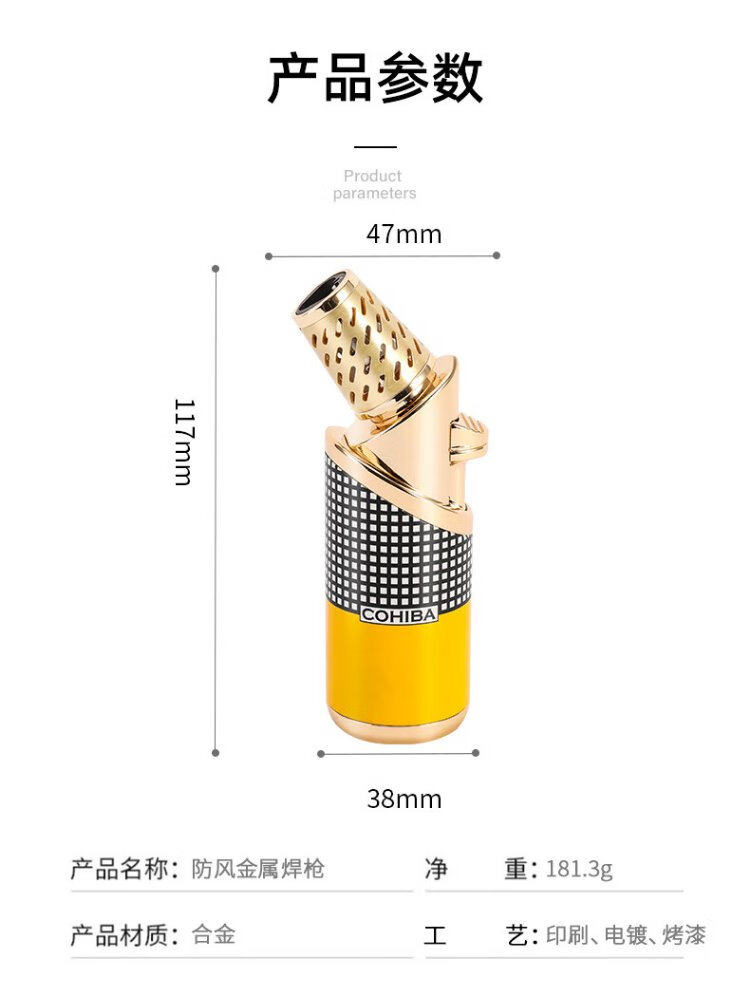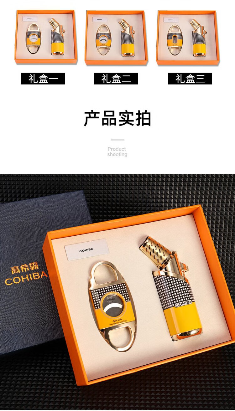 Cohiba cigar scissors, windproof lighter, welding gun, portable cigarette cutter, cigar tools, business birthday gifts for elders