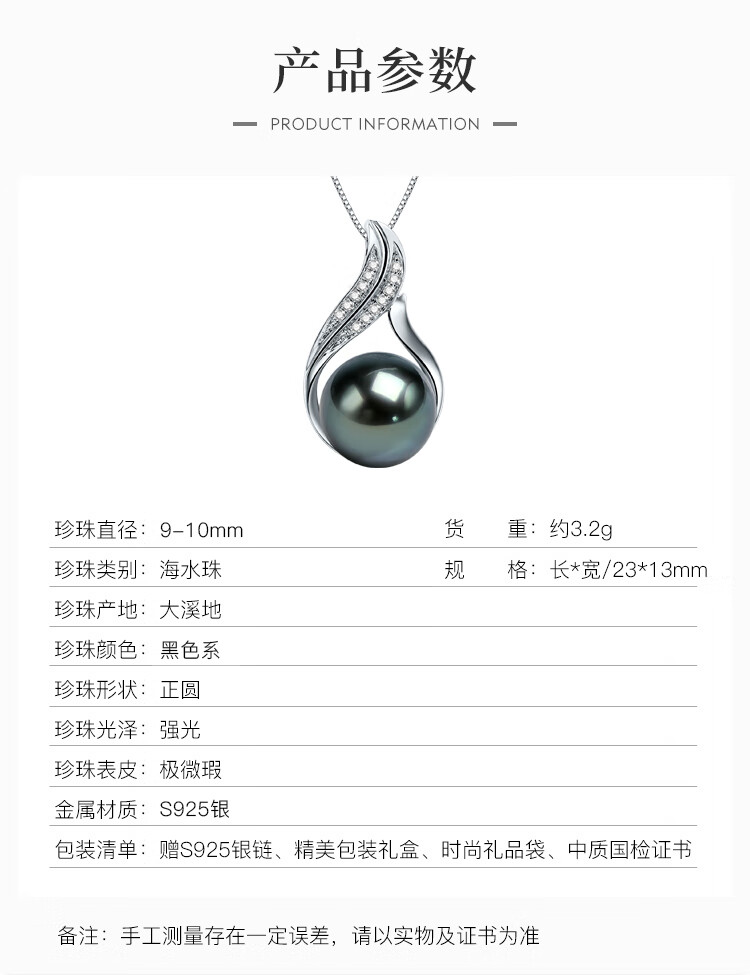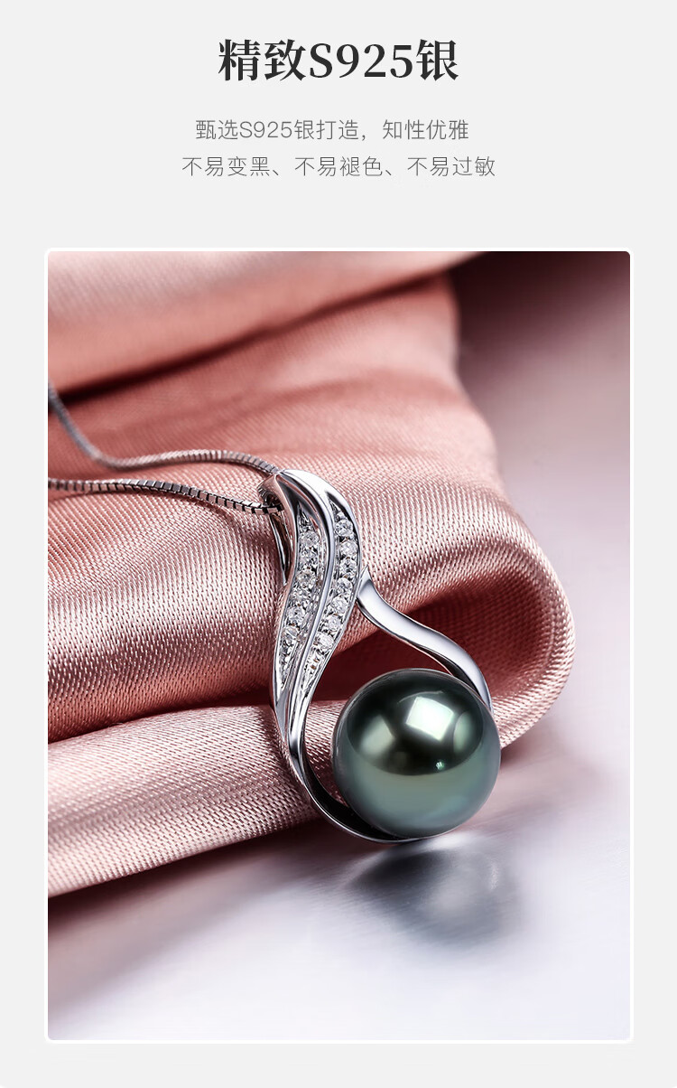 Queen of Pearls S925 Silver Tahitian Black Pearl Pendant Seawater Pearl Necklace for Women Elegant Birthday Gift for Women
