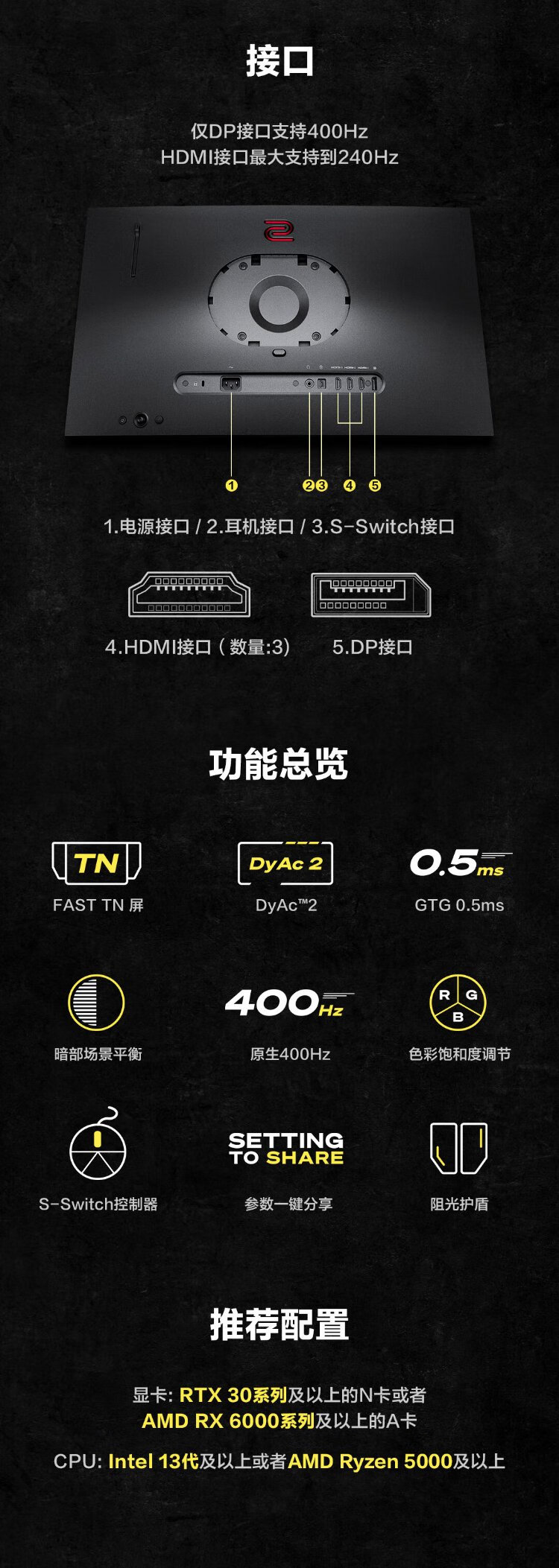 ZOWIE GEAR 400Hz monitor E-sports monitor FastTN screen Game display DyAc2 technology Computer monitor 360Hz upgraded model XL2566X+