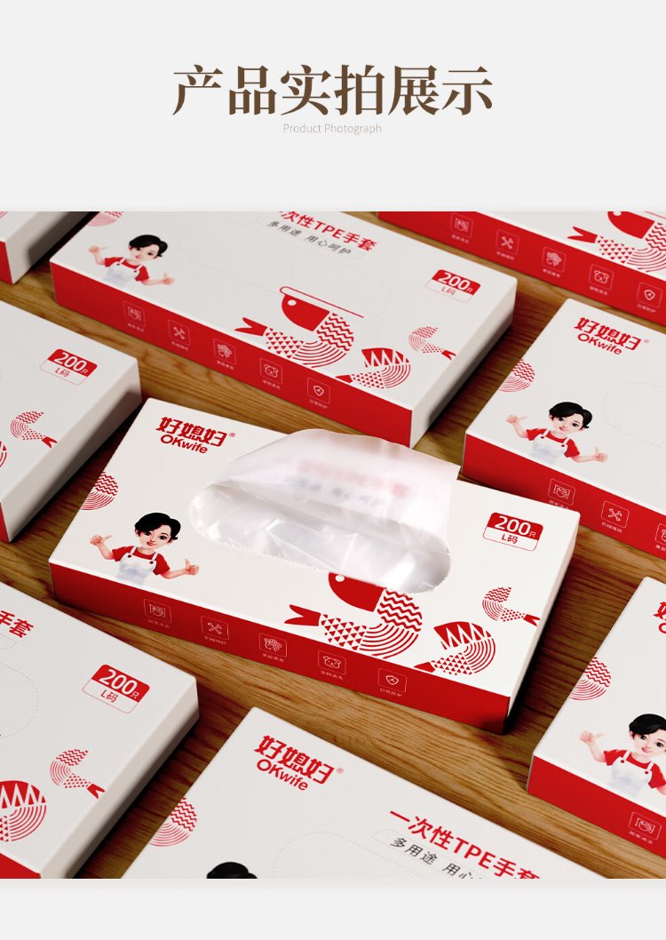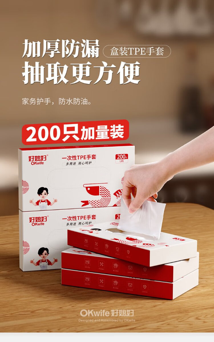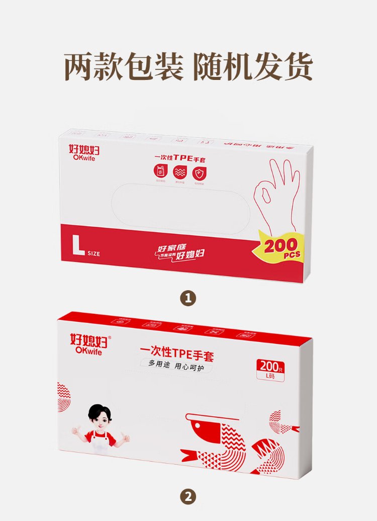 Good Wife Disposable Gloves Boxed TPE 200 Kitchen Housework Wear-Resistant Cleaning Household Durable