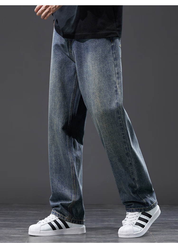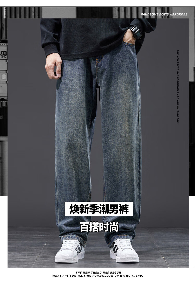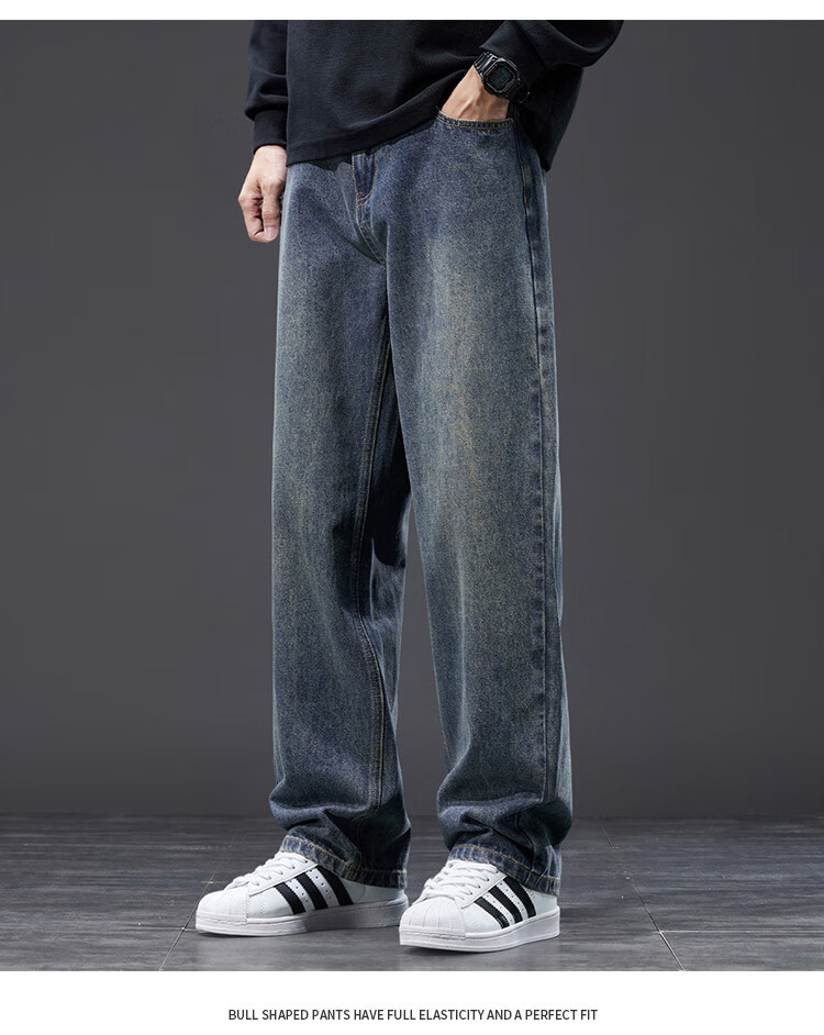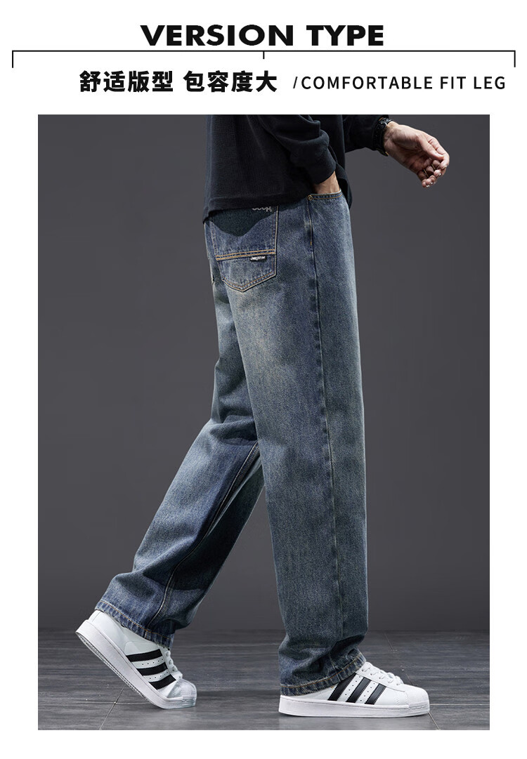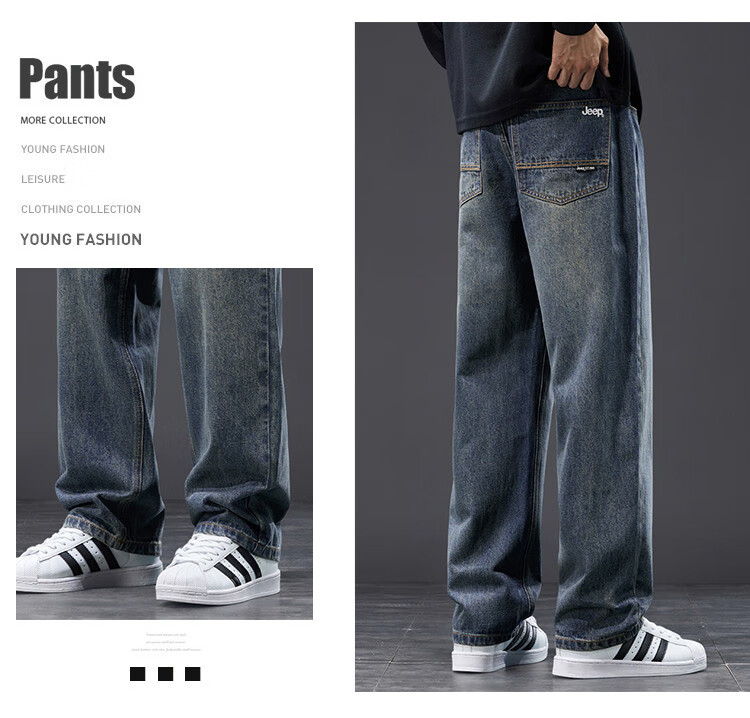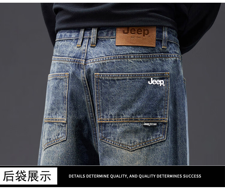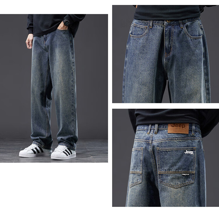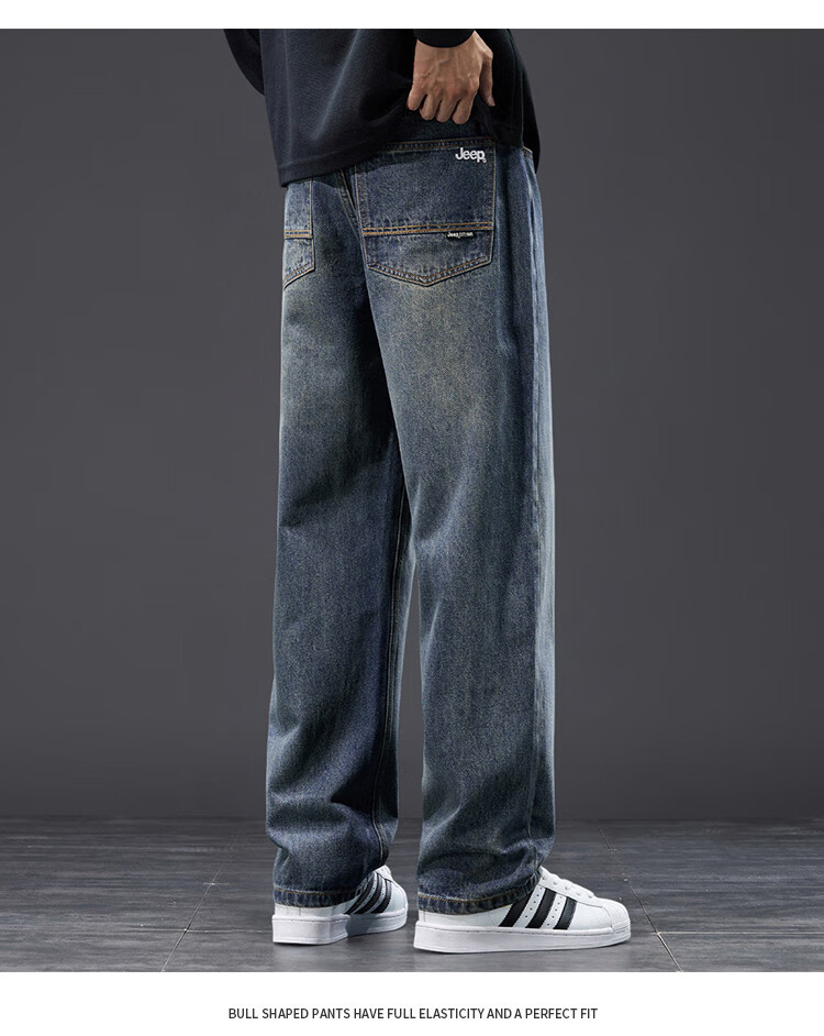 Jeep (JEEP) high-end retro men's jeans for men 2025 autumn and winter new loose straight trend brand casual wide-leg long pants for men