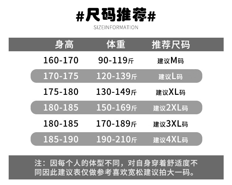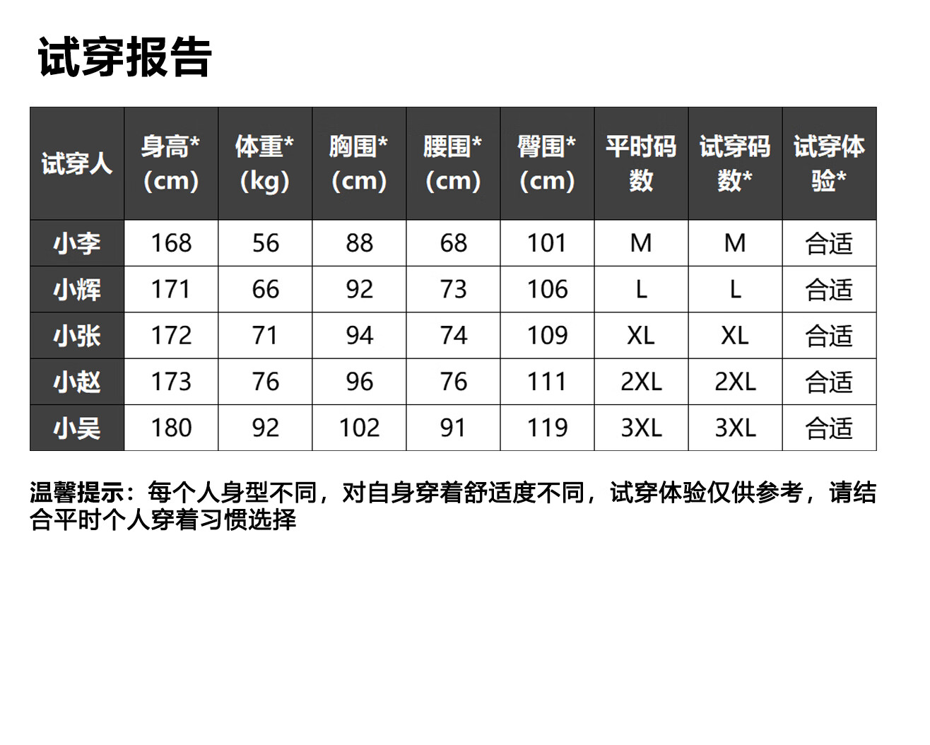 China (cm) 160-165/84-86 165-170 / 88-90 167-172 / 92-96 168-173 / 98-102 170-176 / 106-110