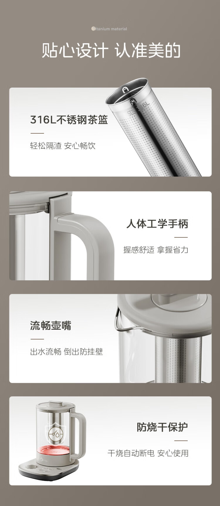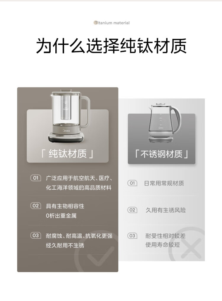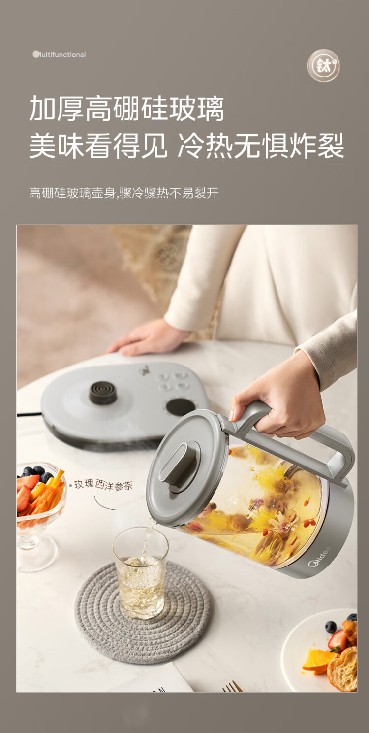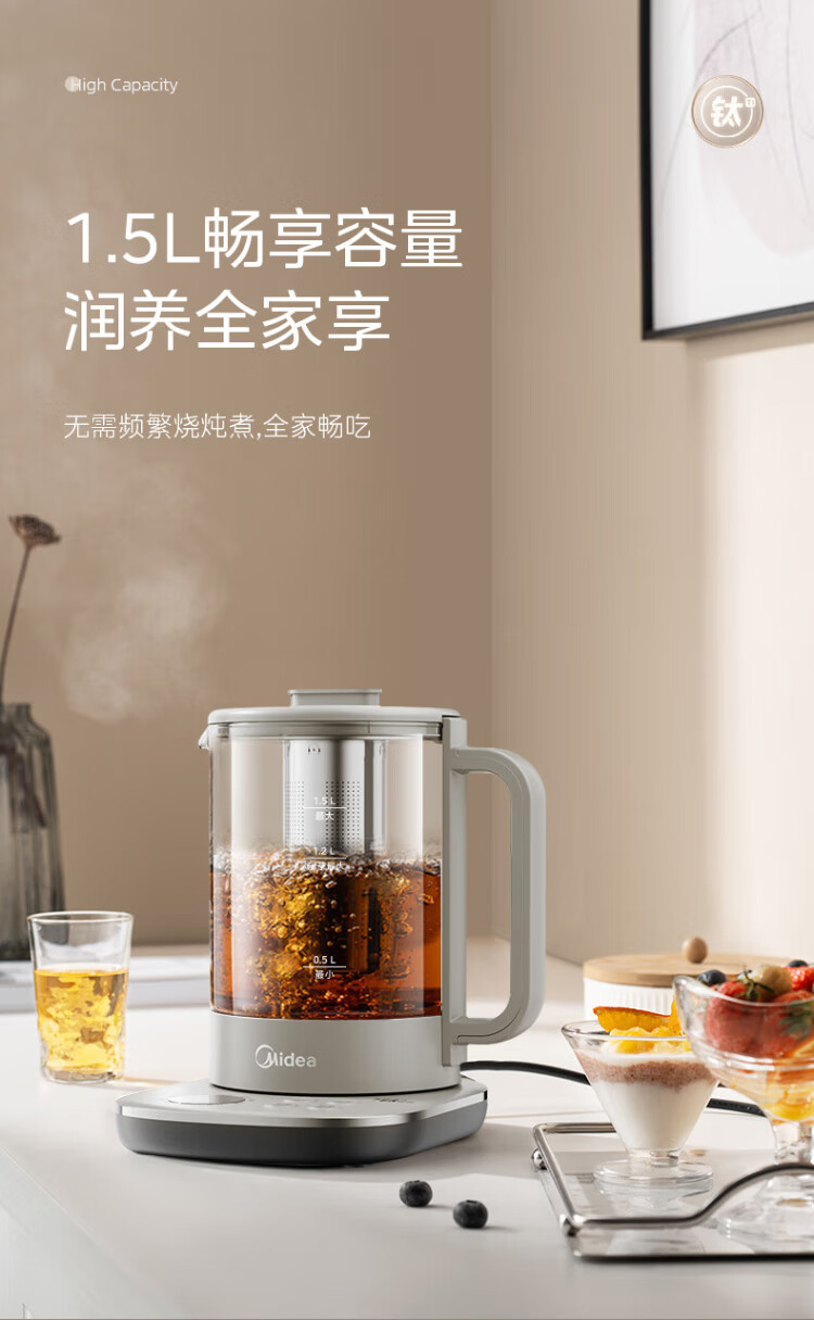 Midea pure titanium health kettle kettle 24-hour appointment 12-hour constant temperature 11-level temperature control tea kettle electric kettle tea maker 1.5L YS15P01-Ti