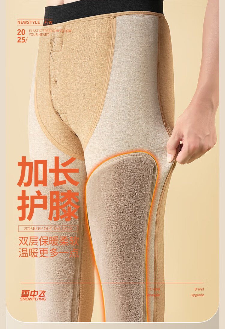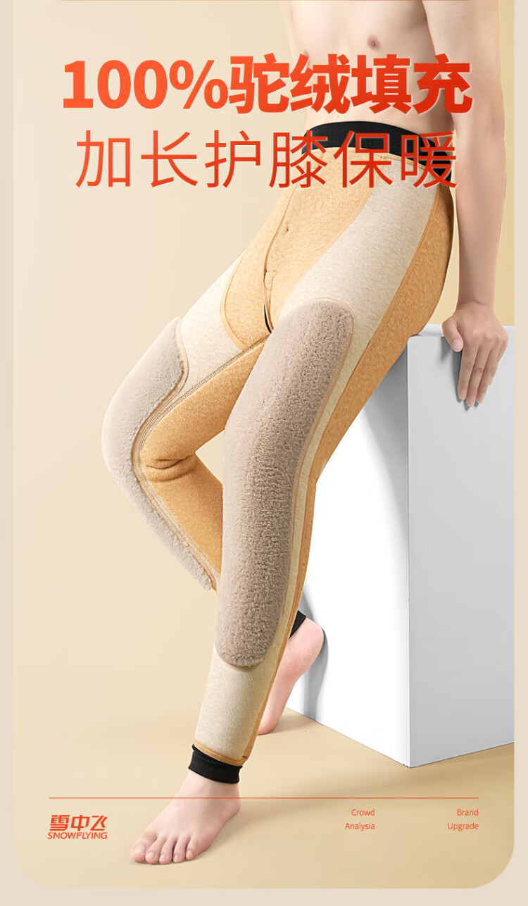 Flying in the Snow Warm Pants Men's Autumn and Winter 100% Camel Down Filled Knee Pad Cotton Pants Plus Velvet Thickened Knee Pad Waist Middle-aged and Elderly Extra Thick