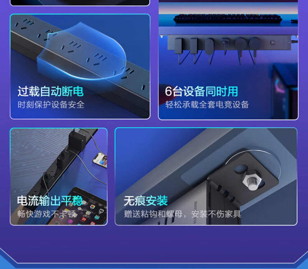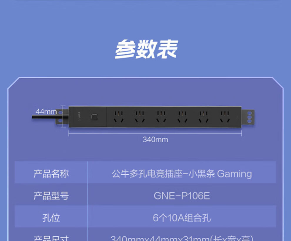 Bull (BULL) PDU plug-in strip industrial computer room cabinet socket plug-in board computer-specific e-sports plug-in board super power protection drag strip plug-in 6 jacks 1.8 meters E-P106E black