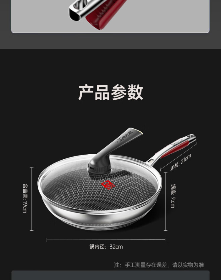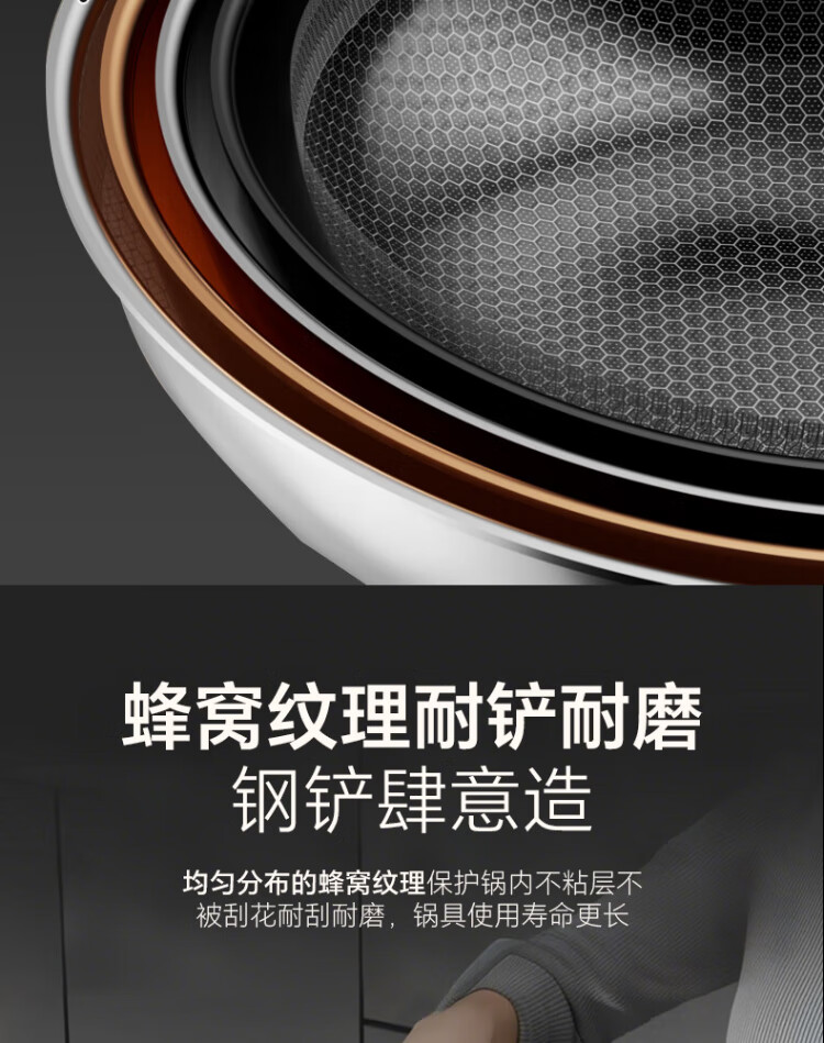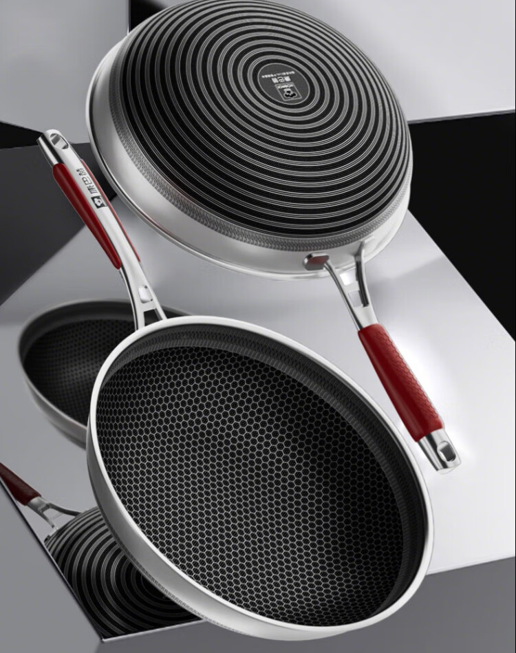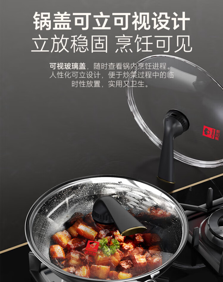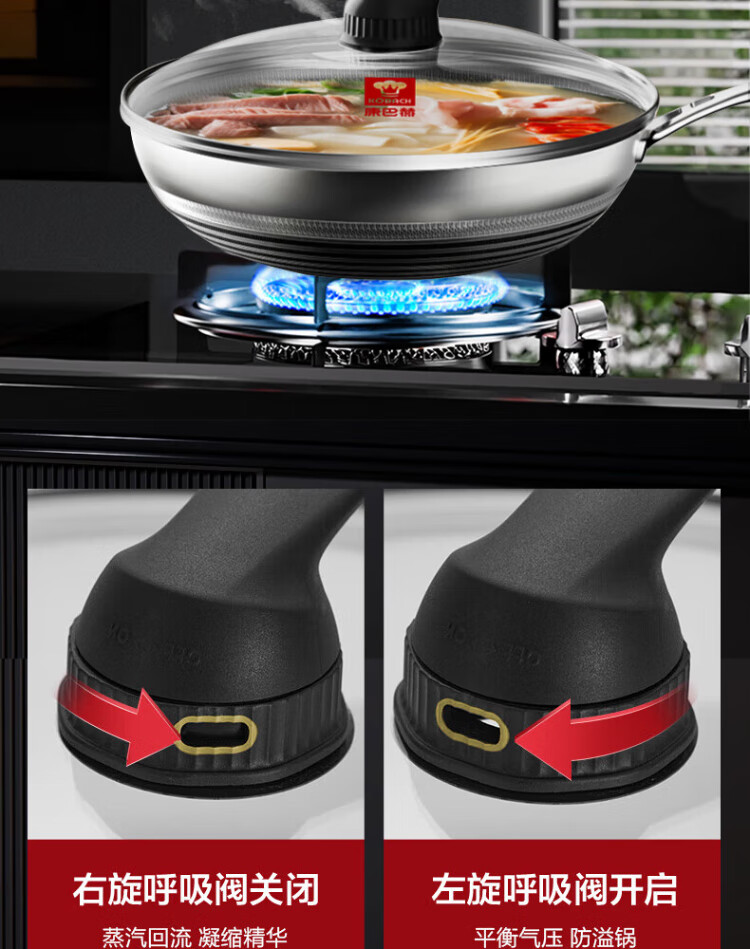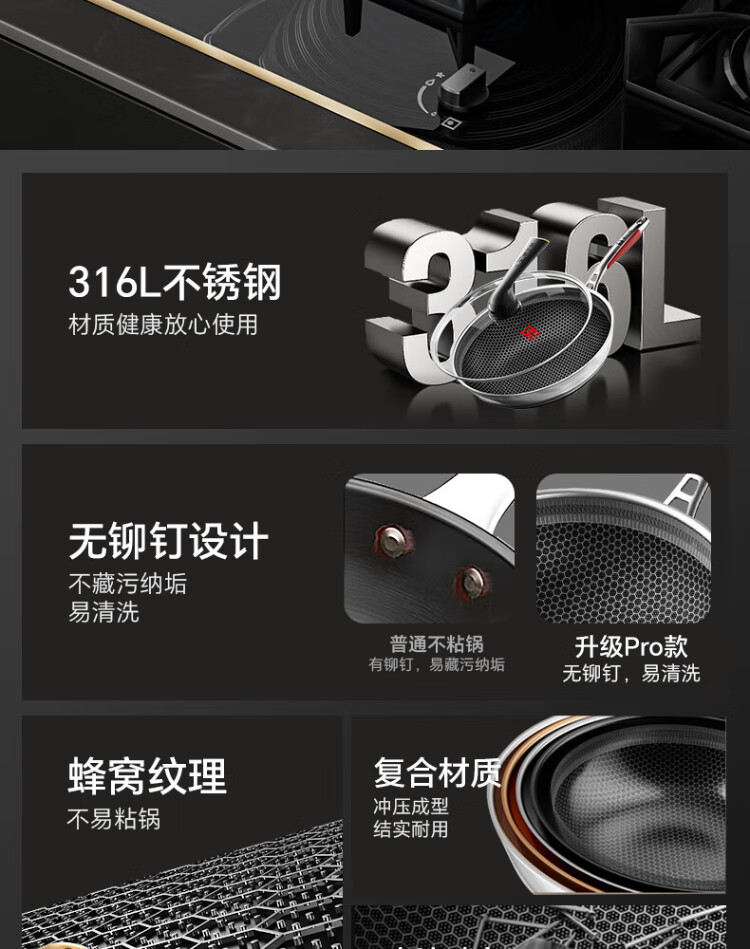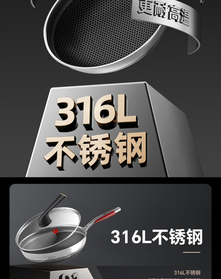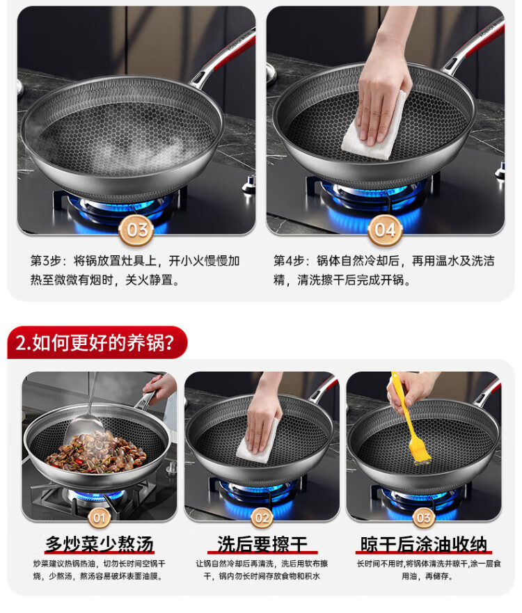 Konbach's new non-stick wok 316L stainless steel wok 32cm double-sided honeycomb flat bottom induction cooker universal
