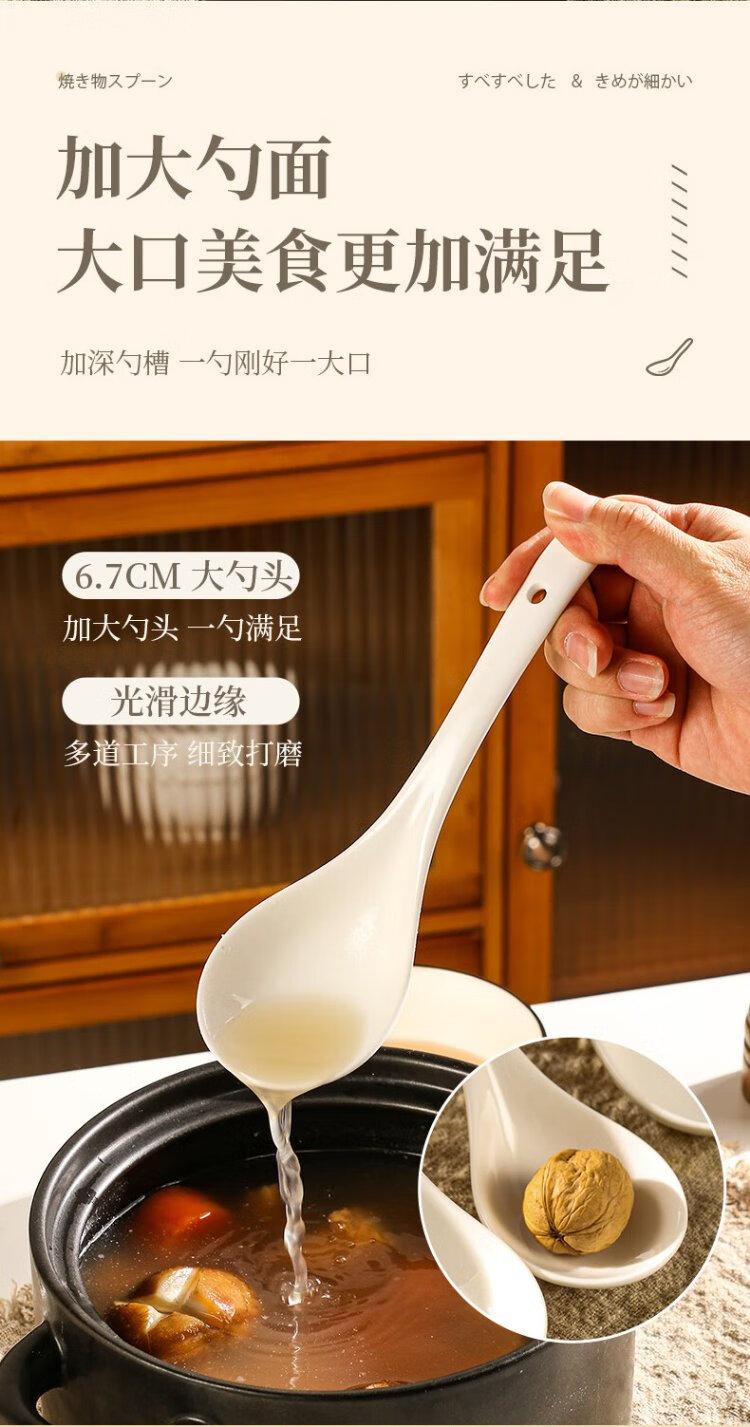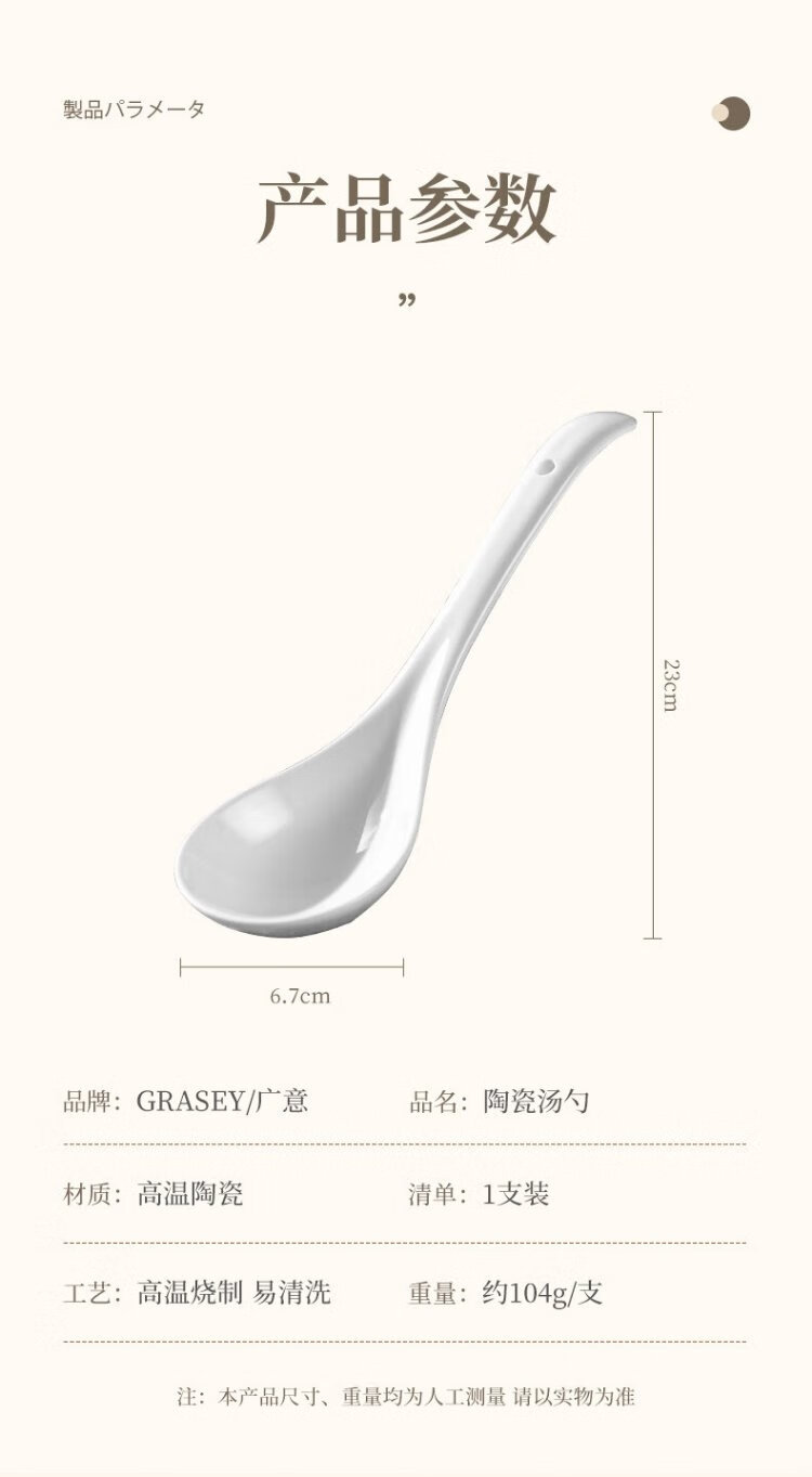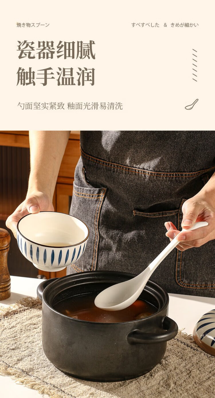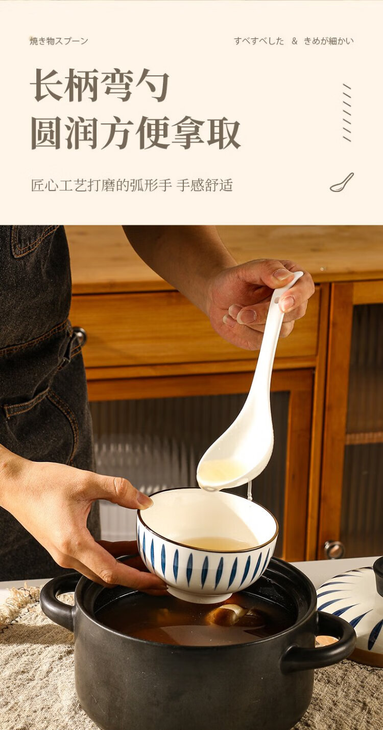 Guangyi Japanese ceramic large spoon long handle household ceramic soup spoon large porridge spoon GY8840