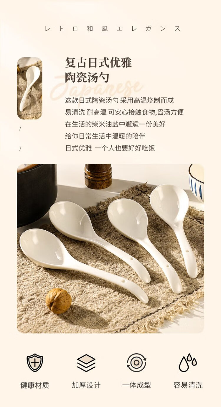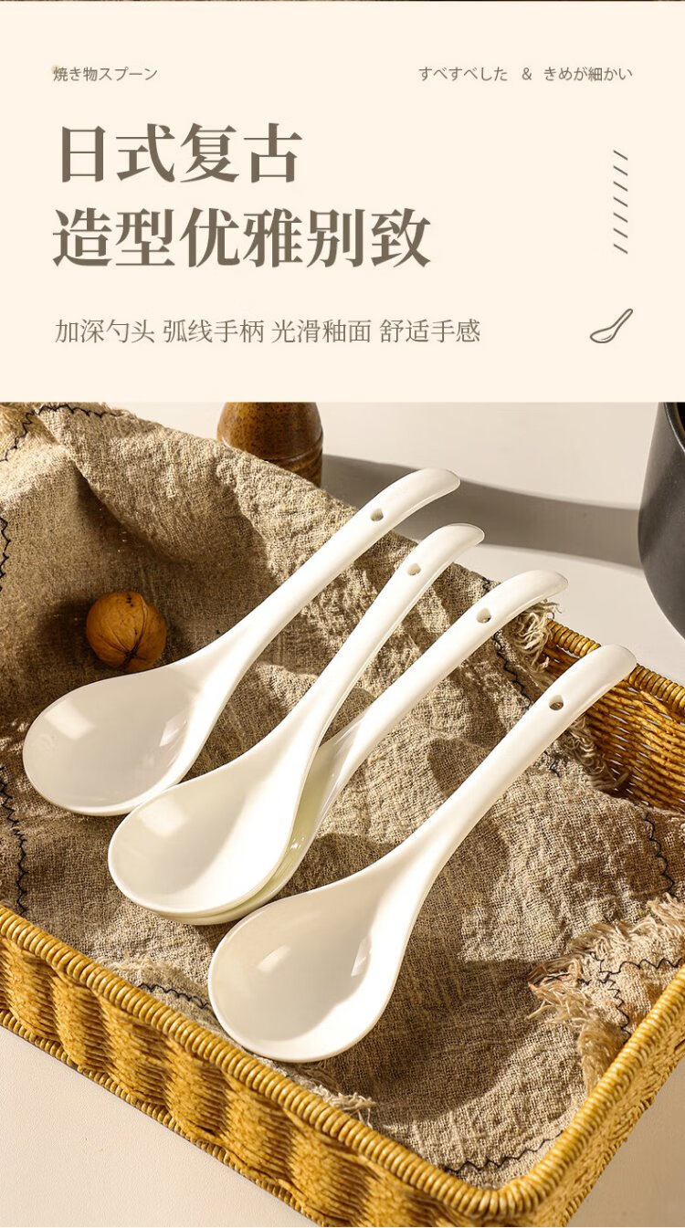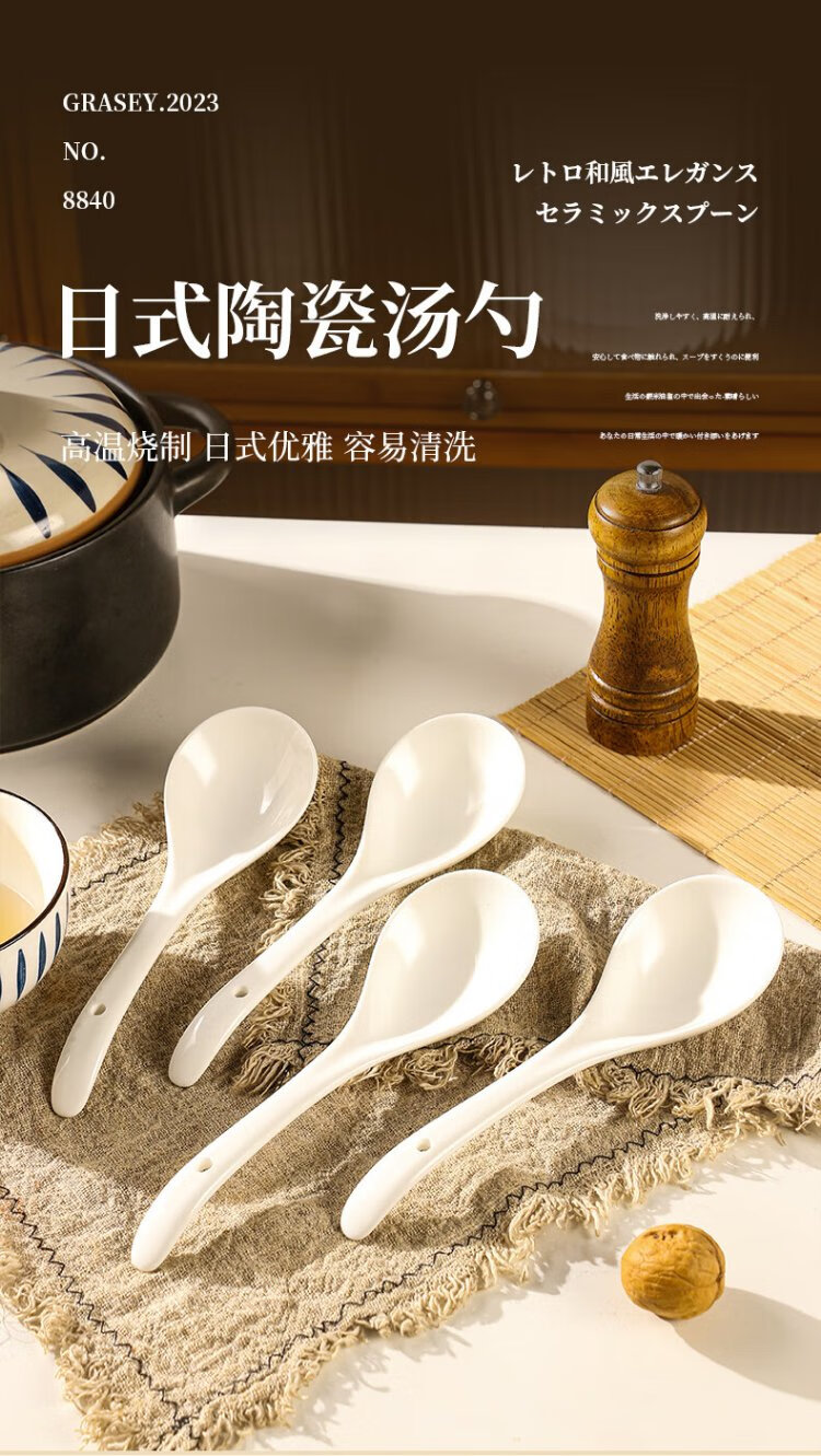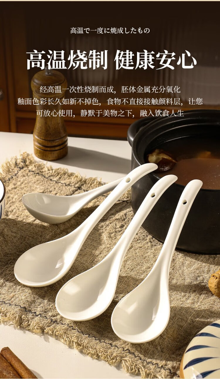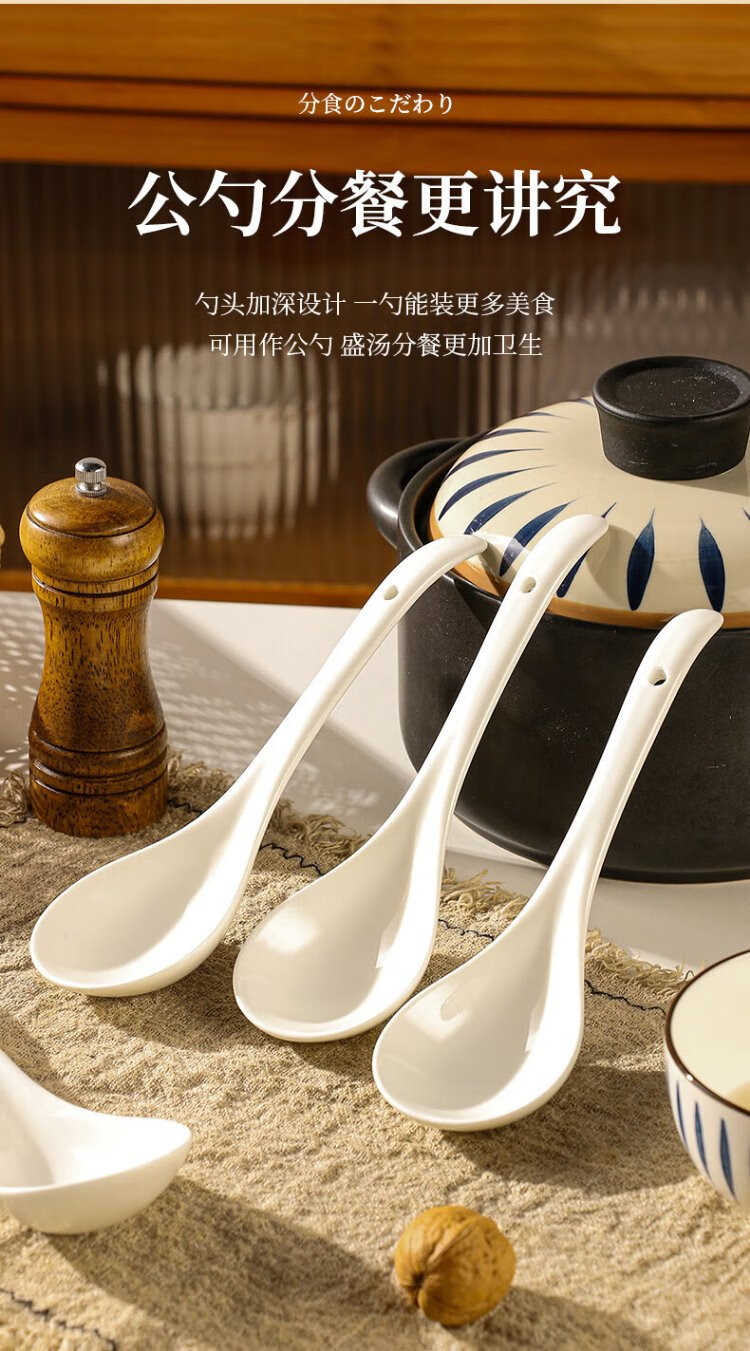 Guangyi Japanese ceramic large spoon long handle household ceramic soup spoon large porridge spoon GY8840