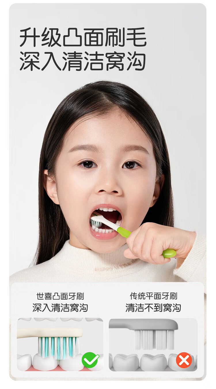 Shixi children's toothbrush 3-6 years old soft-bristle toothbrush baby convex wide-bristle deep cleaning pits and fissures single pack green