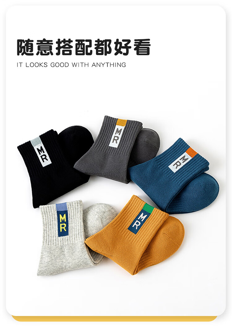 Catman children's socks boys cotton mid-calf socks boy baby letter sports trendy socks mixed color XL