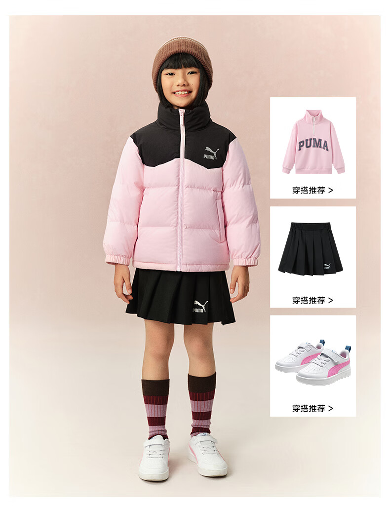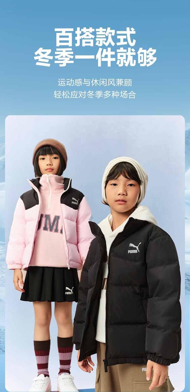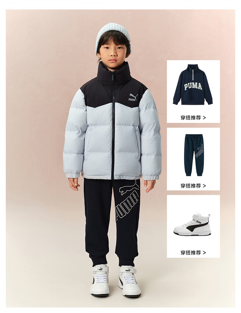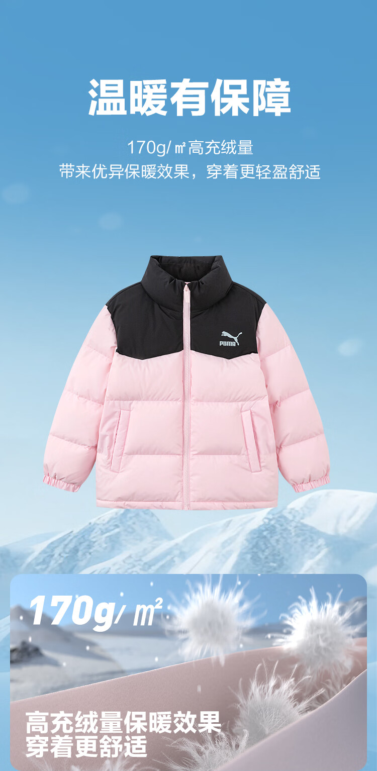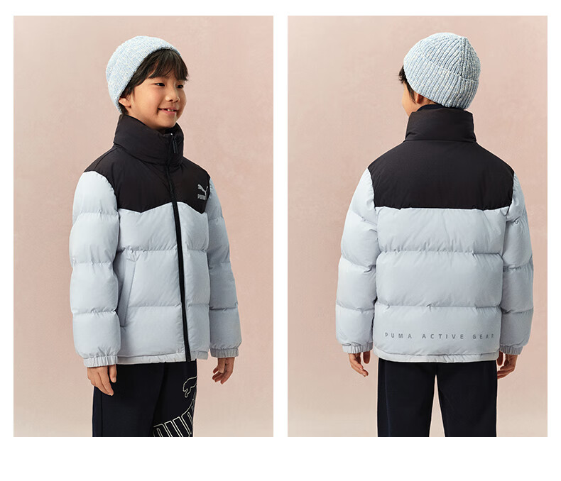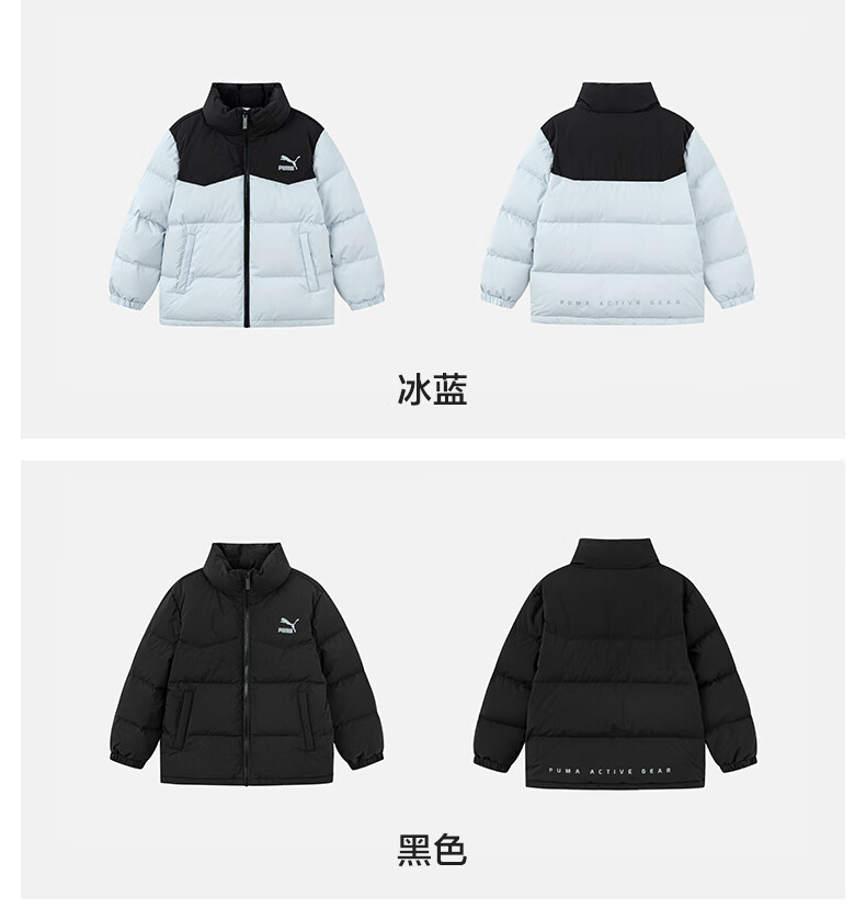 Puma new children's down jacket stand collar black 90001 150