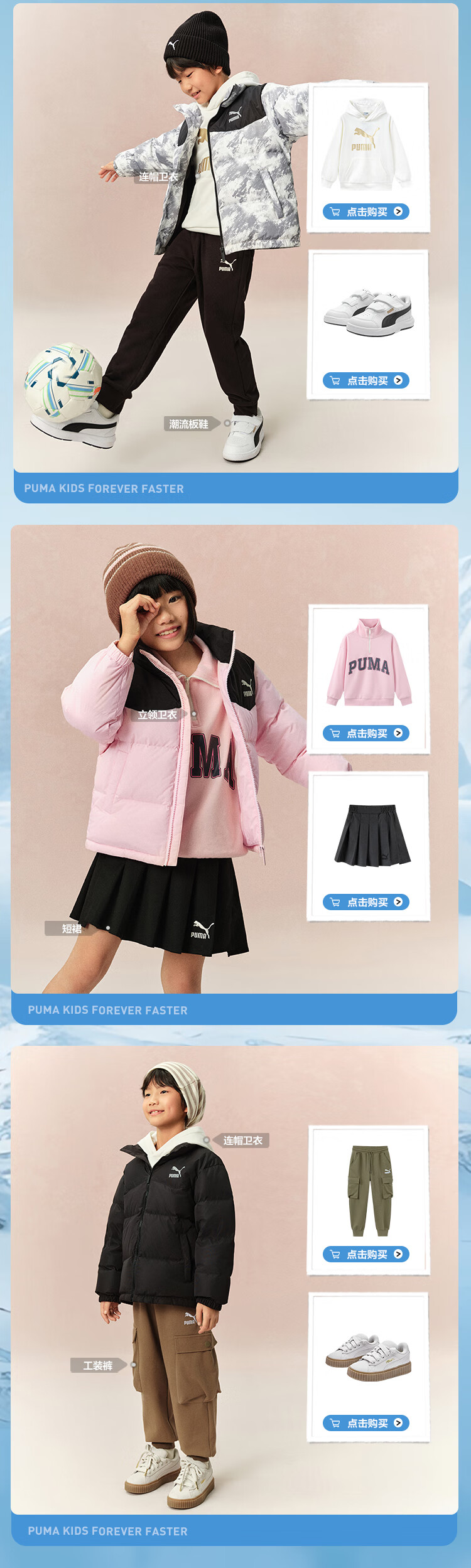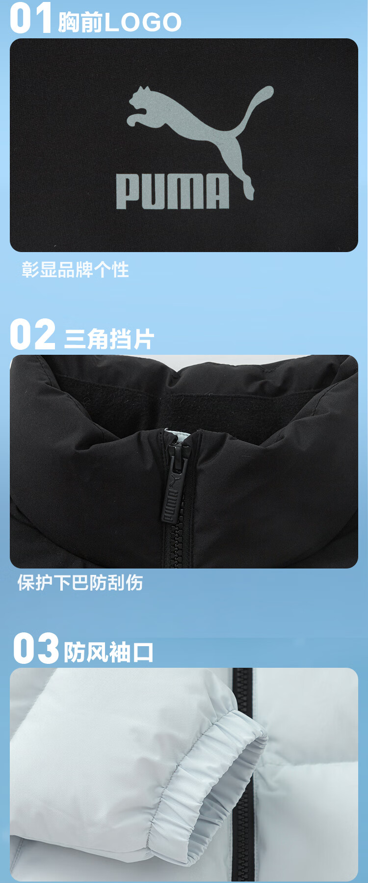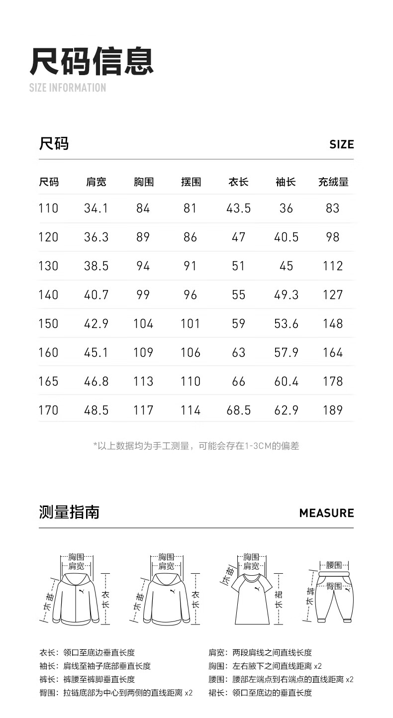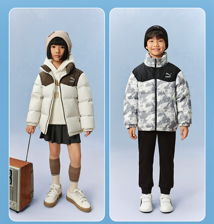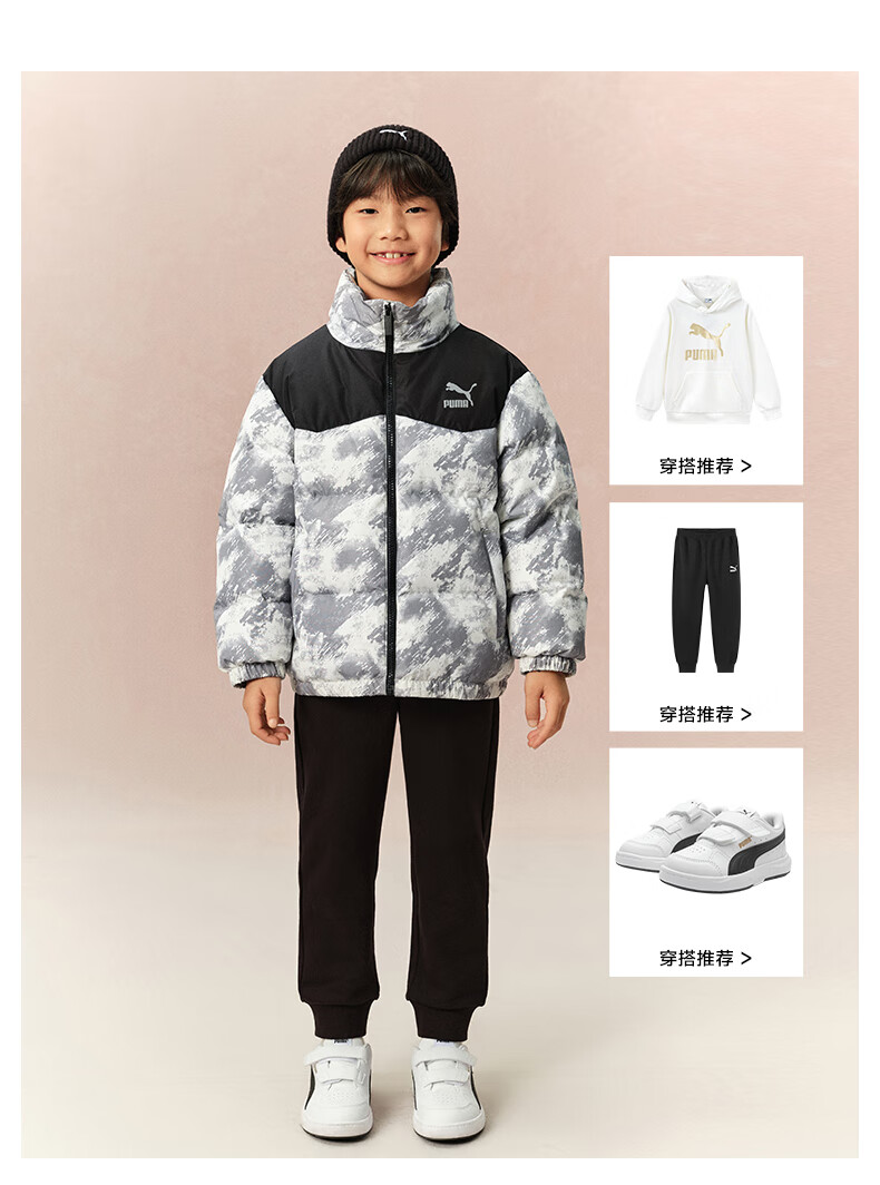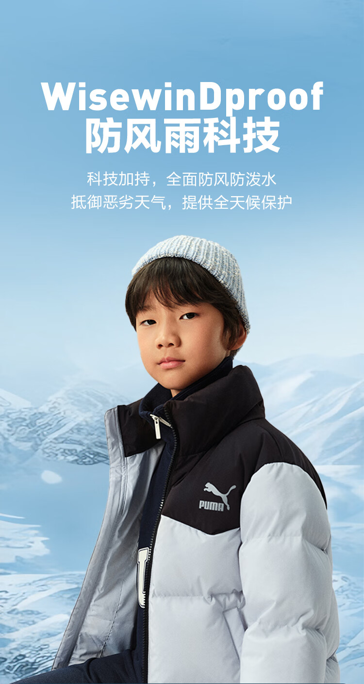 Puma new children's down jacket stand collar black 90001 150