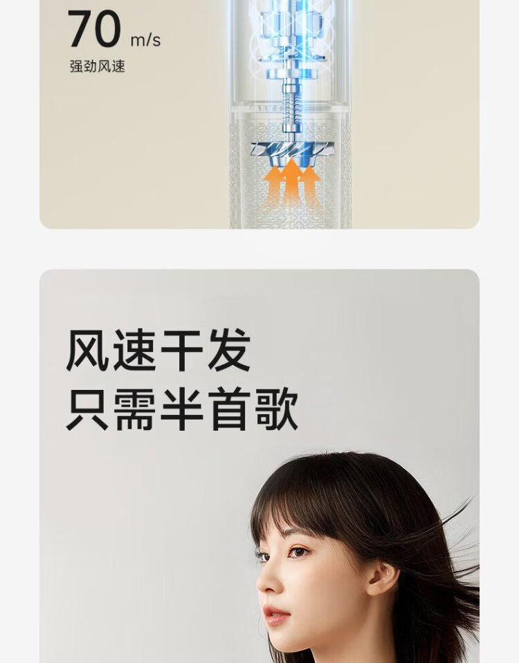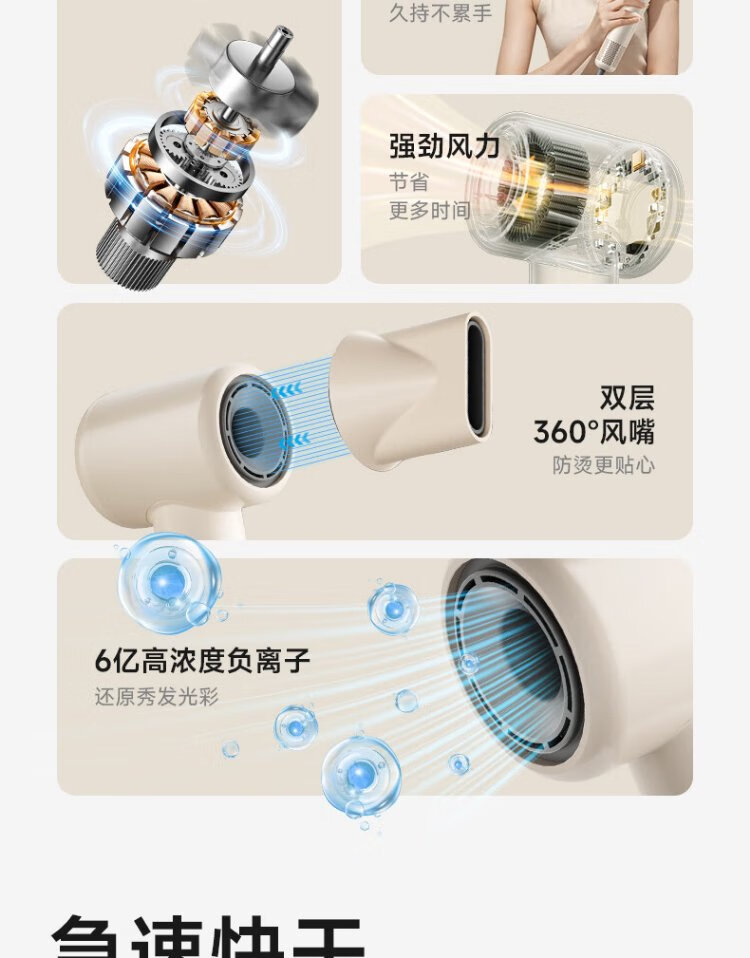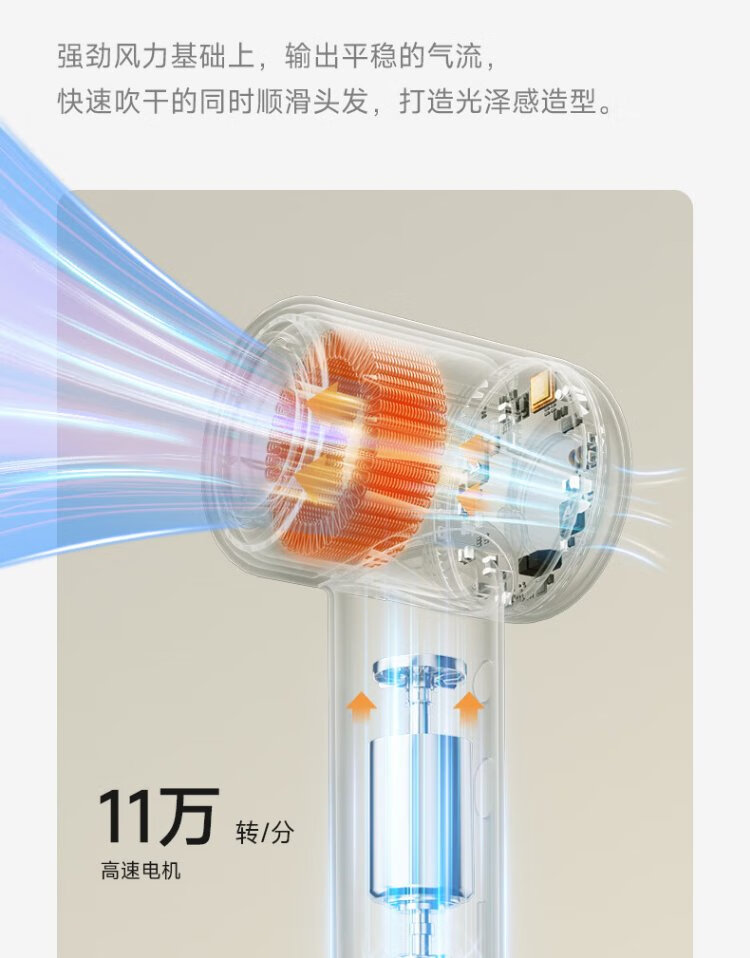 AUX hair dryer, household high-speed hair dryer, high wind power, quick drying, leafless low-noise hair dryer, negative ion hair dryer, leafless hair dryer, a must-have for travel