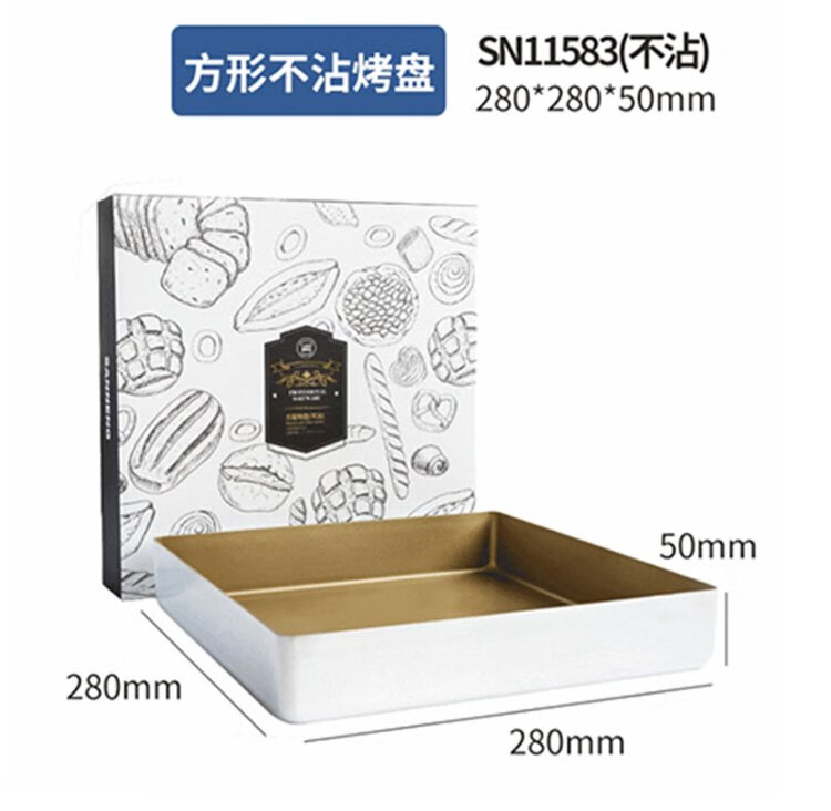 Sanneng SN11583 golden non-stick square baking pan household ancient gold plate 28x28 cake roll baking mold