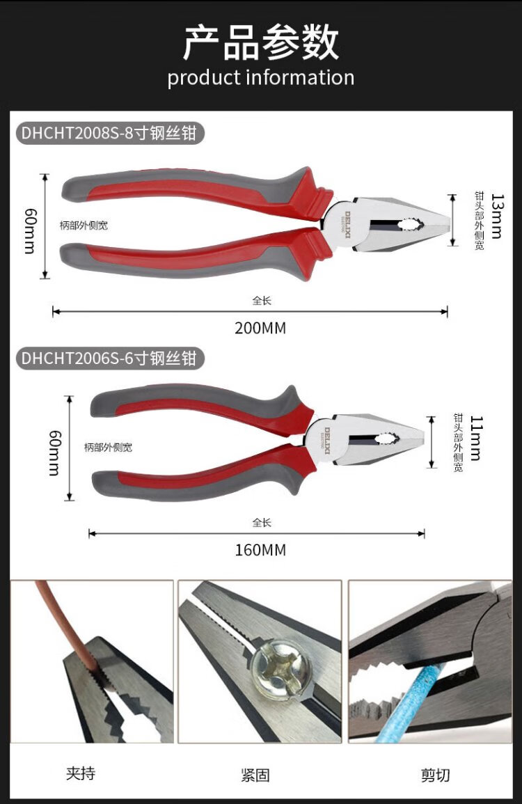 Delixi Electric wire cutter electrician vise household vise cutter labor-saving wire cutter 6 inches 160mm