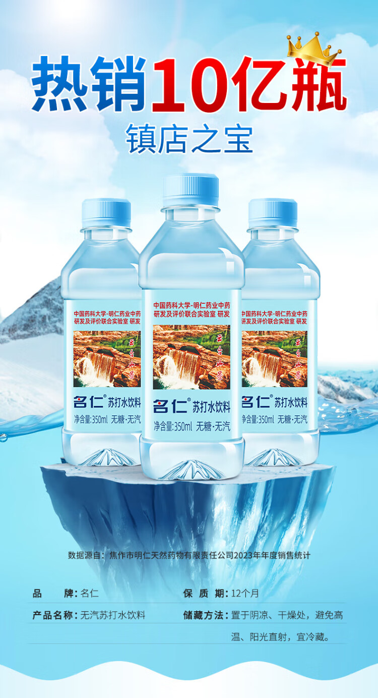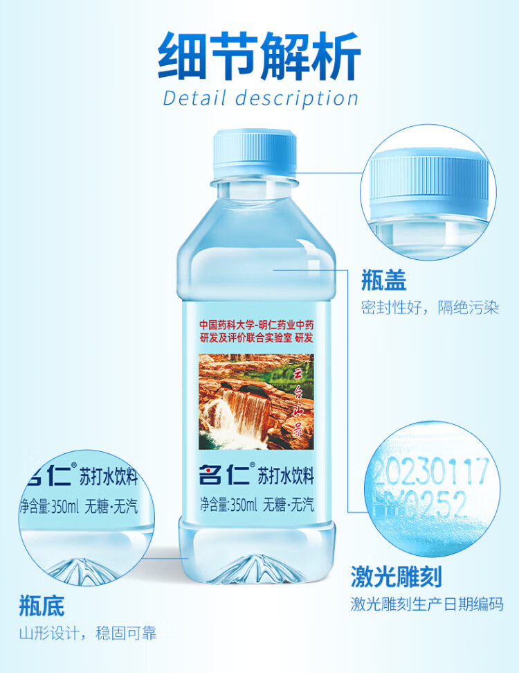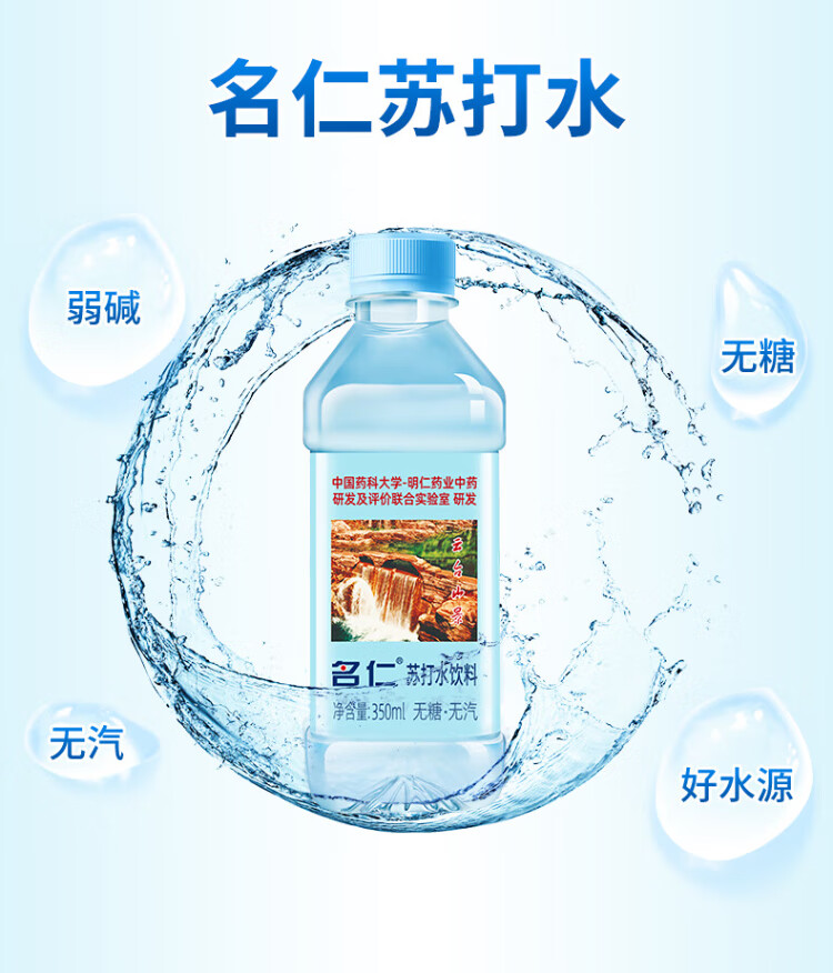 Mingren soda drink, sugar-free, carbonated, weakly alkaline water, 350ml*15 bottles, whole box