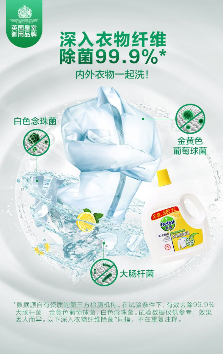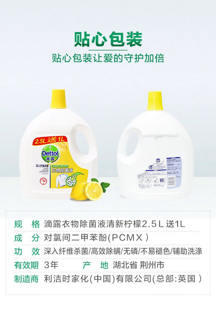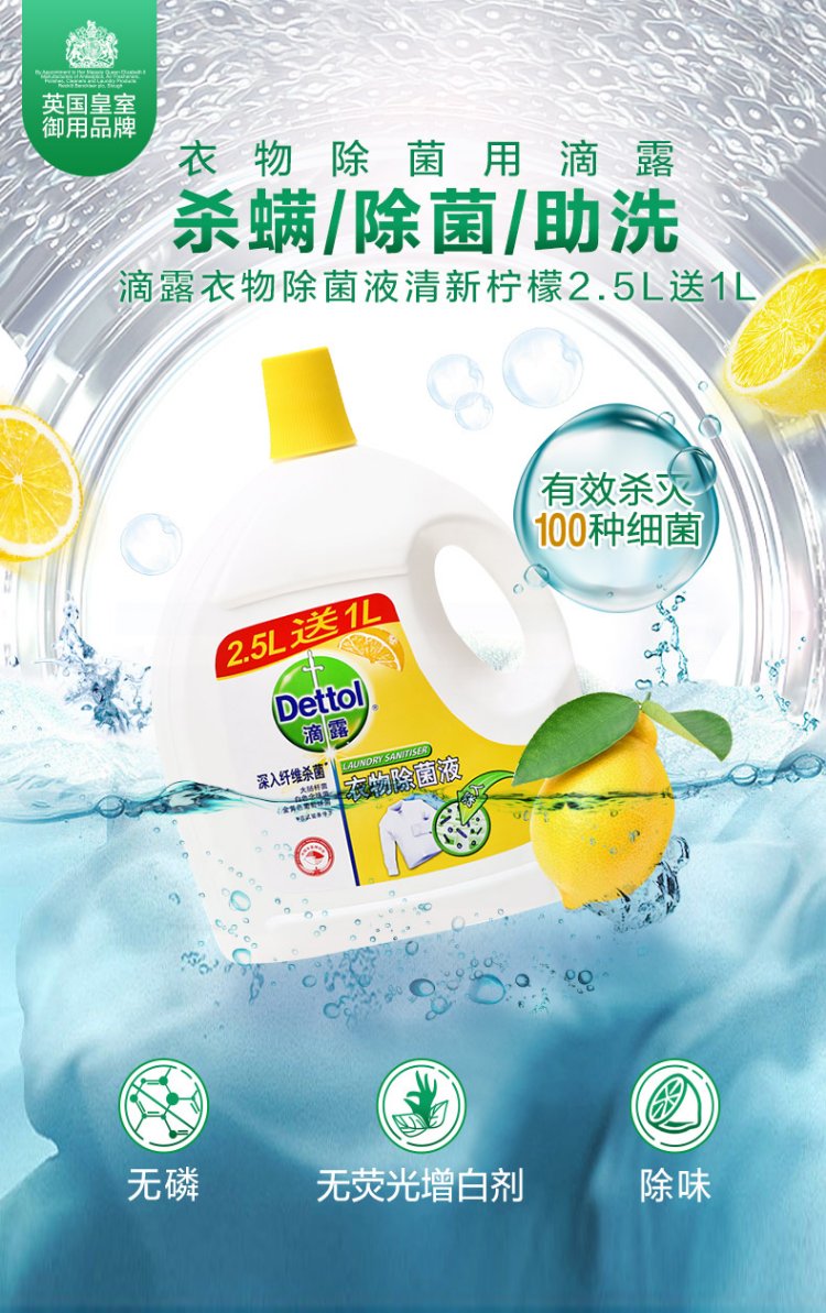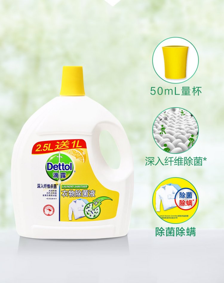 滴露清新柠檬衣物除菌液2.5L送1L