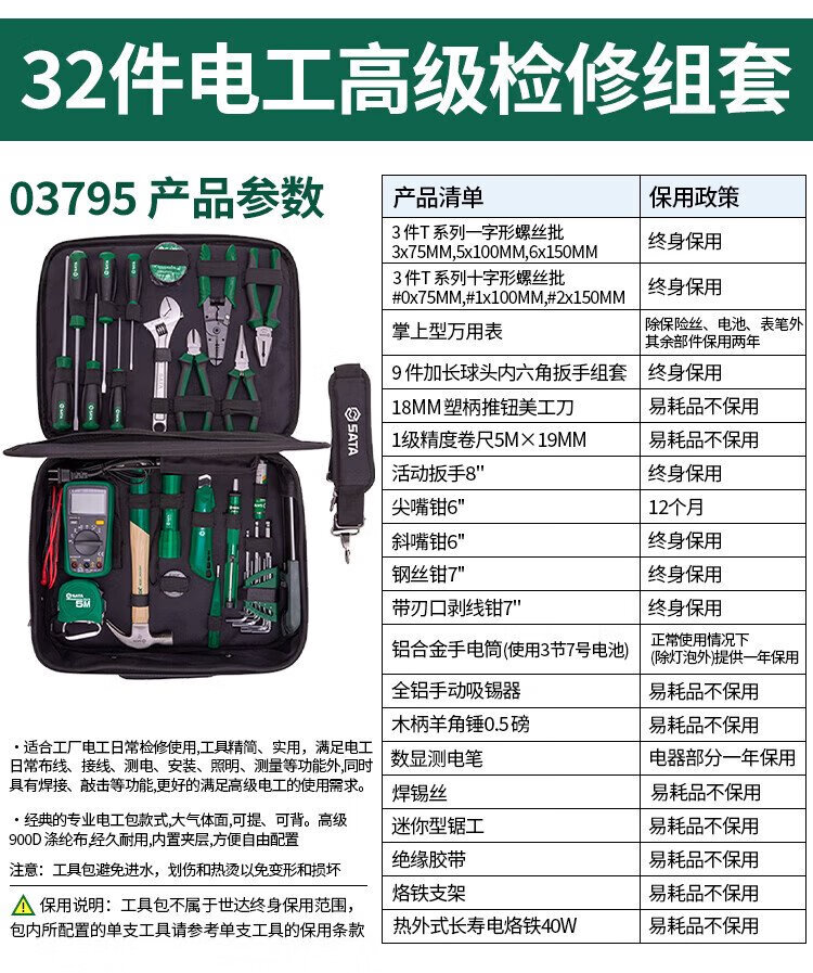 SATA 32-piece electrician advanced maintenance set 03795