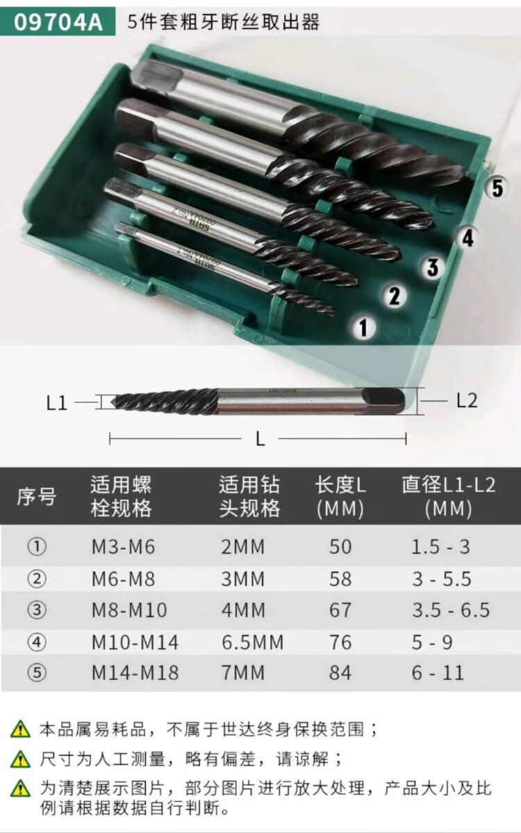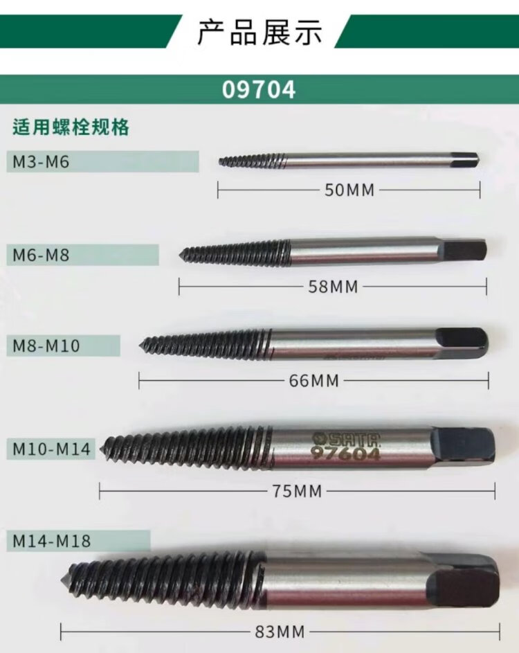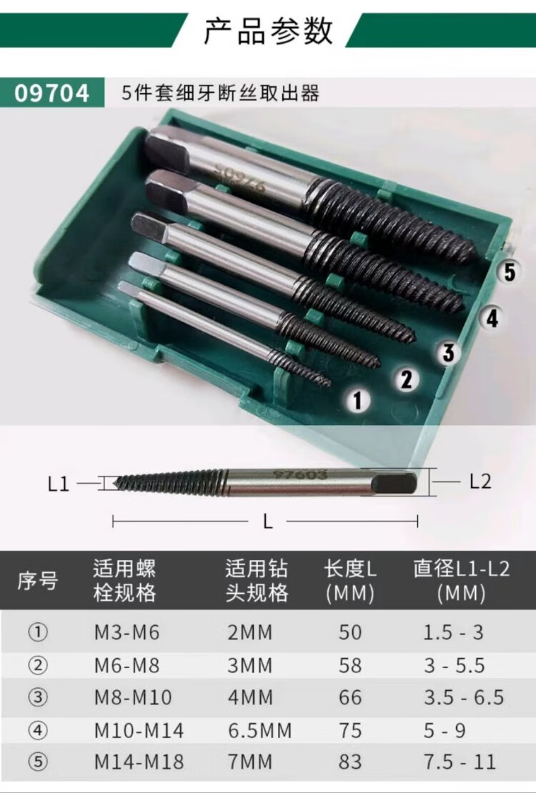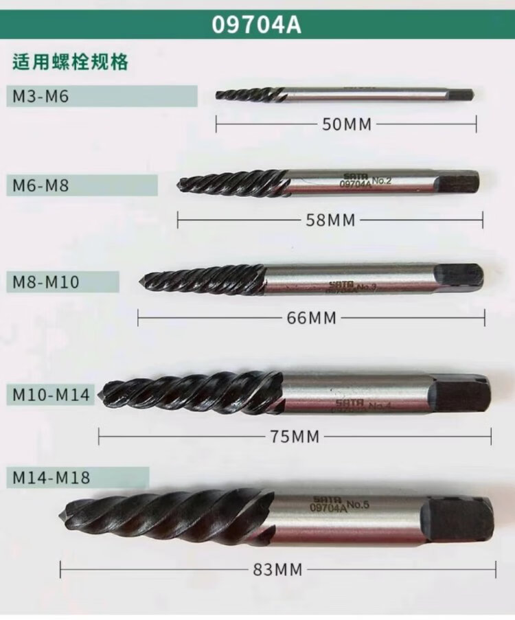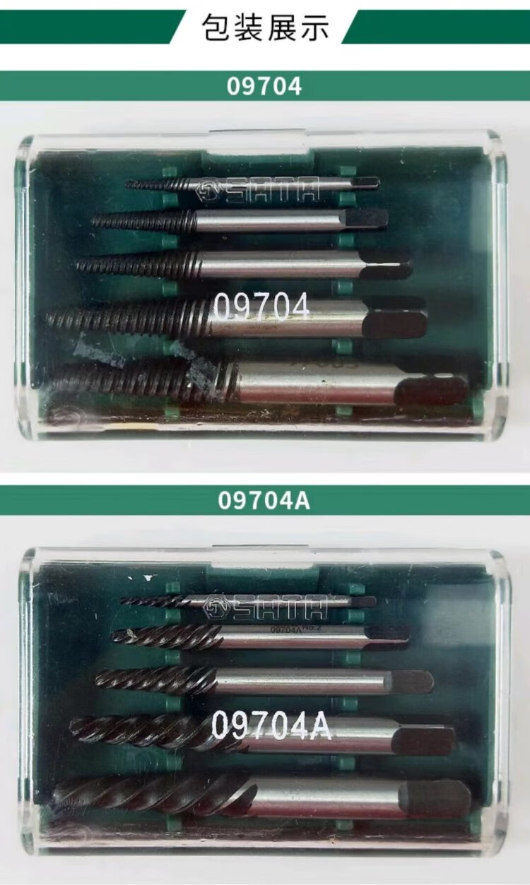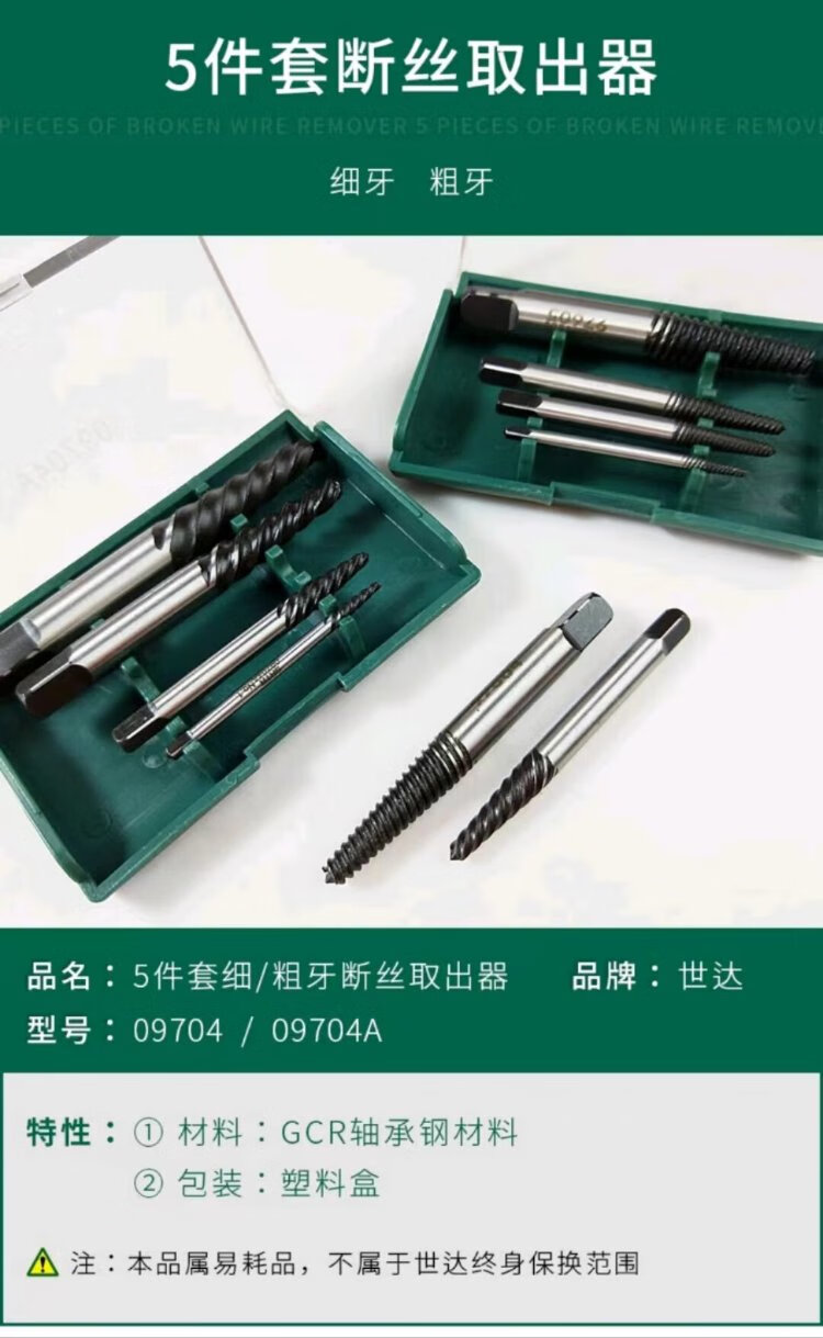 世达(SATA)高强度细牙断丝取出器三角阀型取断丝组套 5pcs 09704