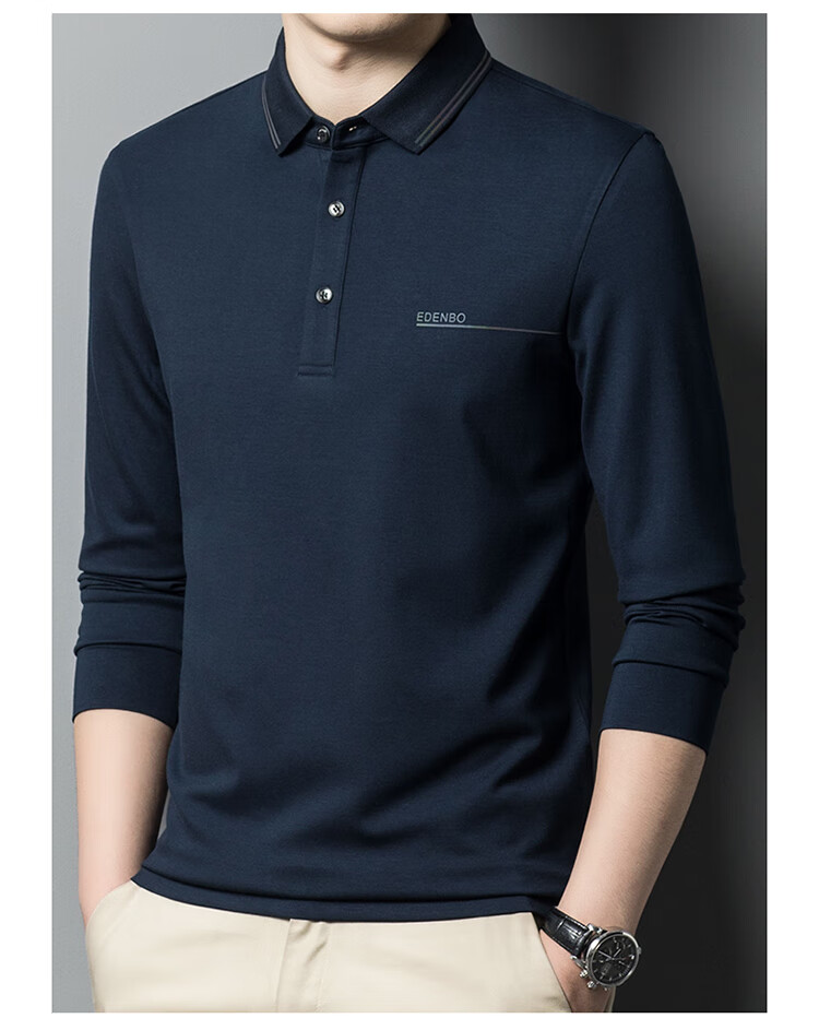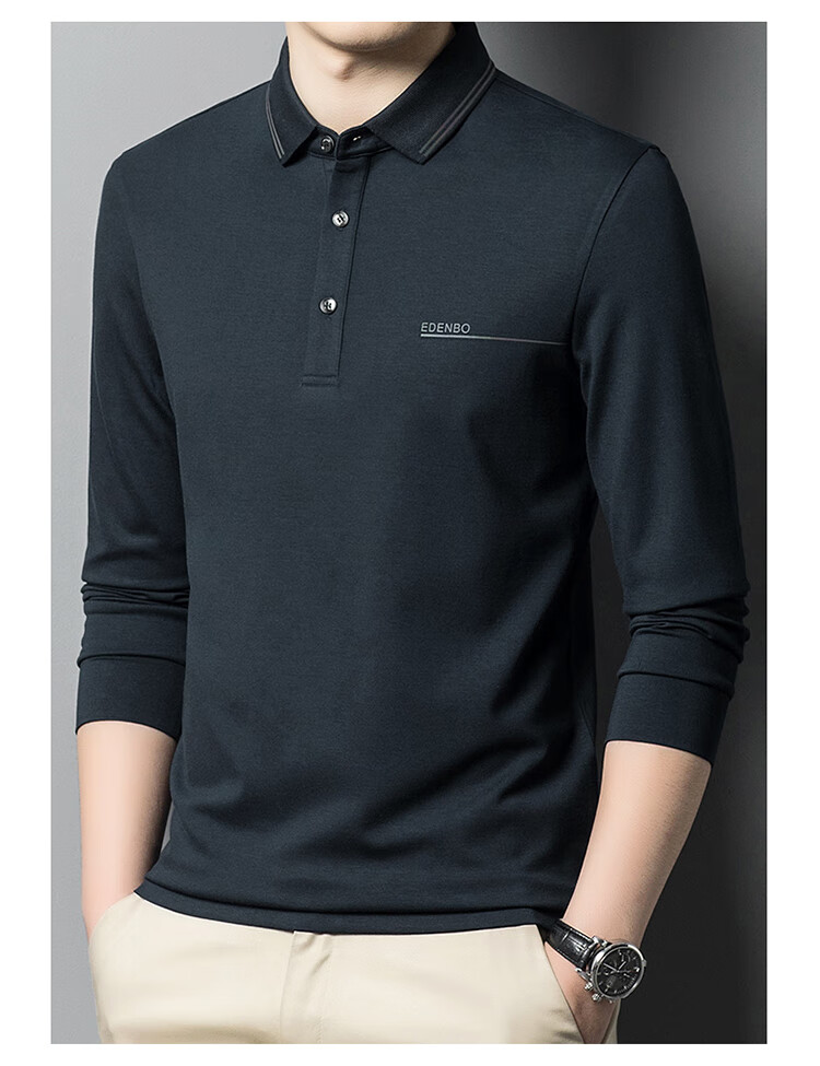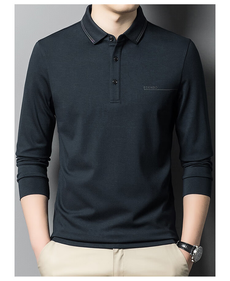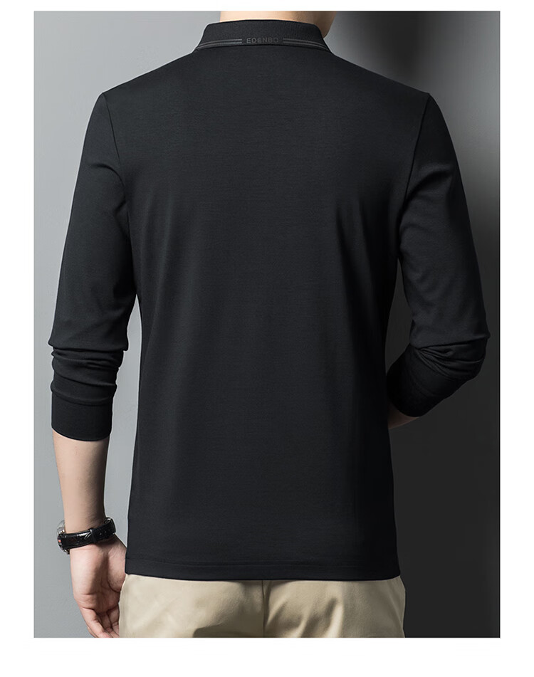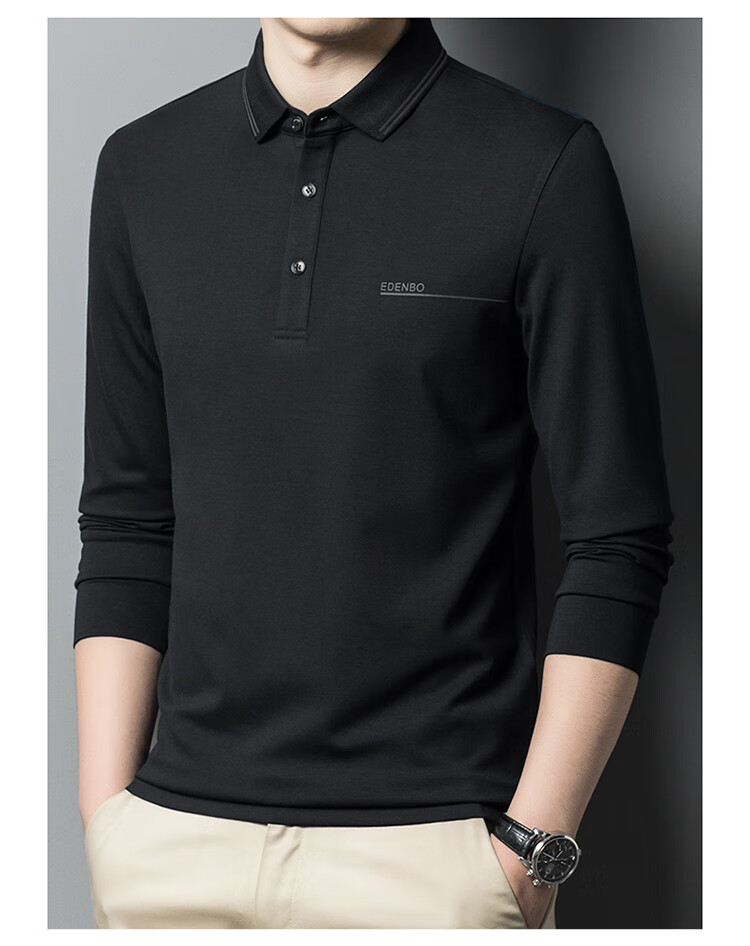 Edenbo spring long-sleeved polo shirt men's business commuting fashion polo bottoming shirt black 01175/92A