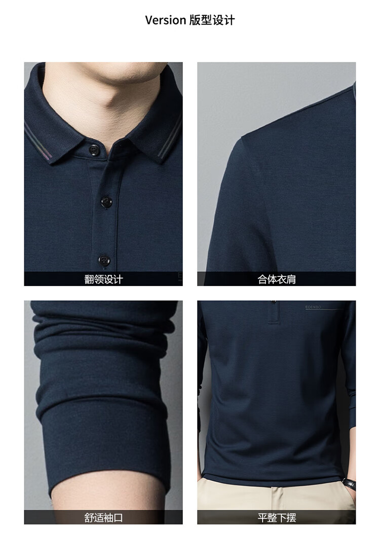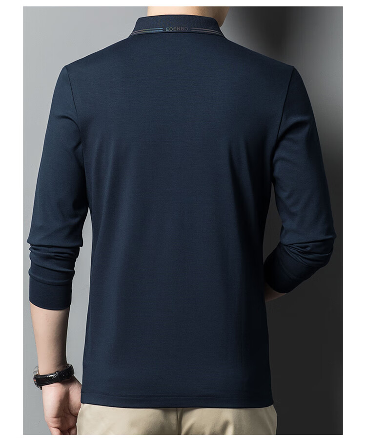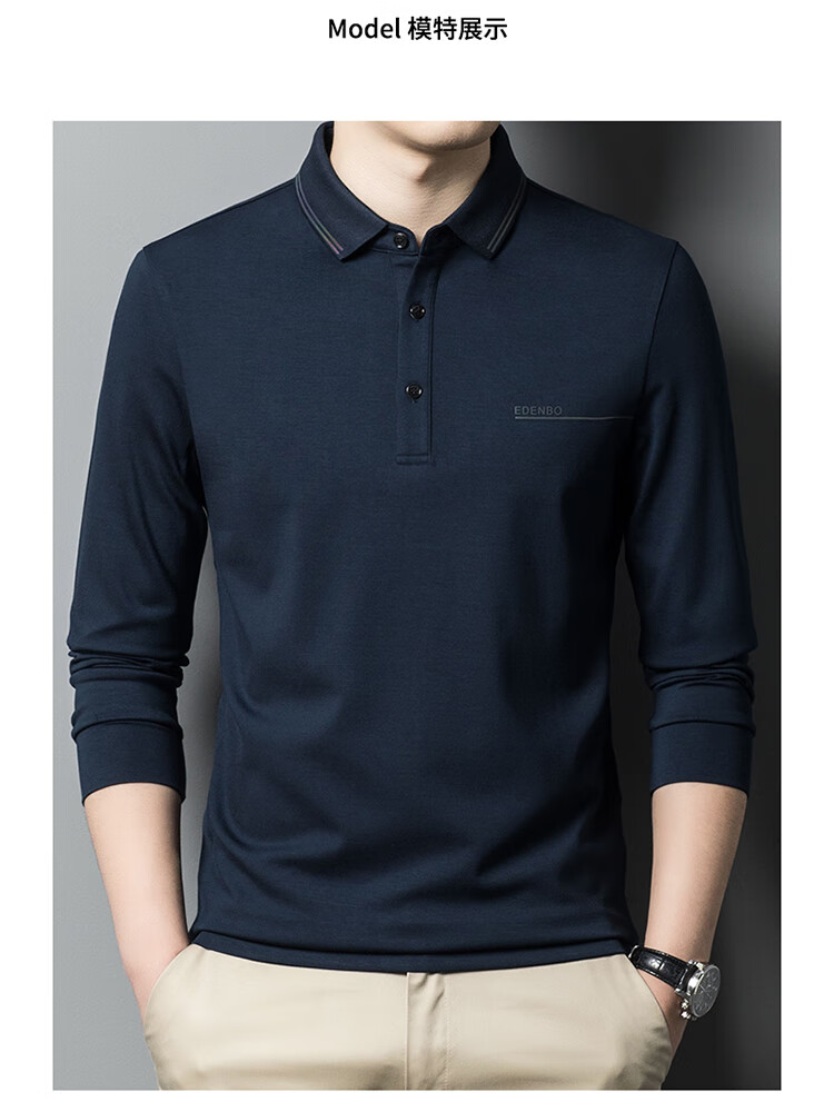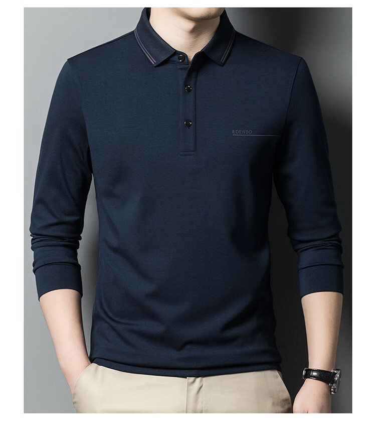 Edenbo spring long-sleeved polo shirt men's business commuting fashion polo bottoming shirt black 01175/92A