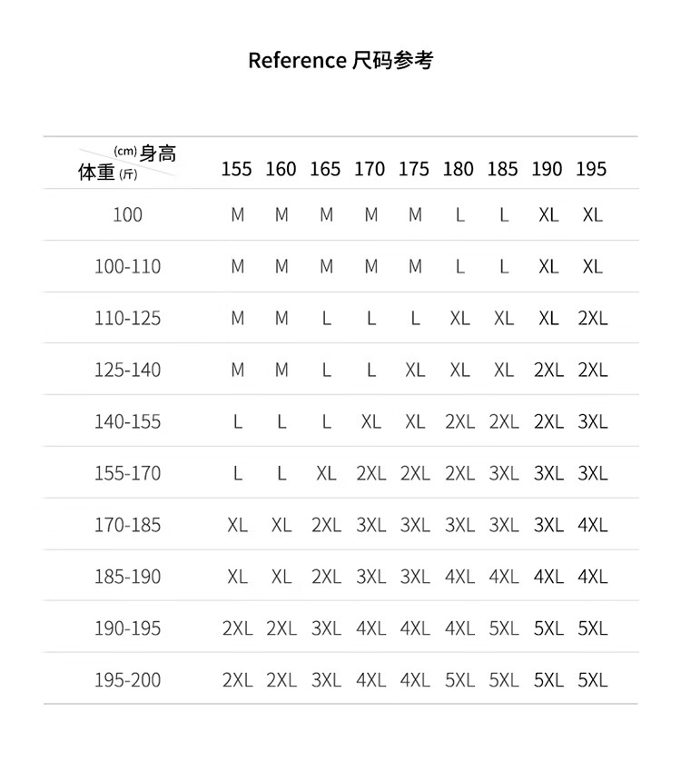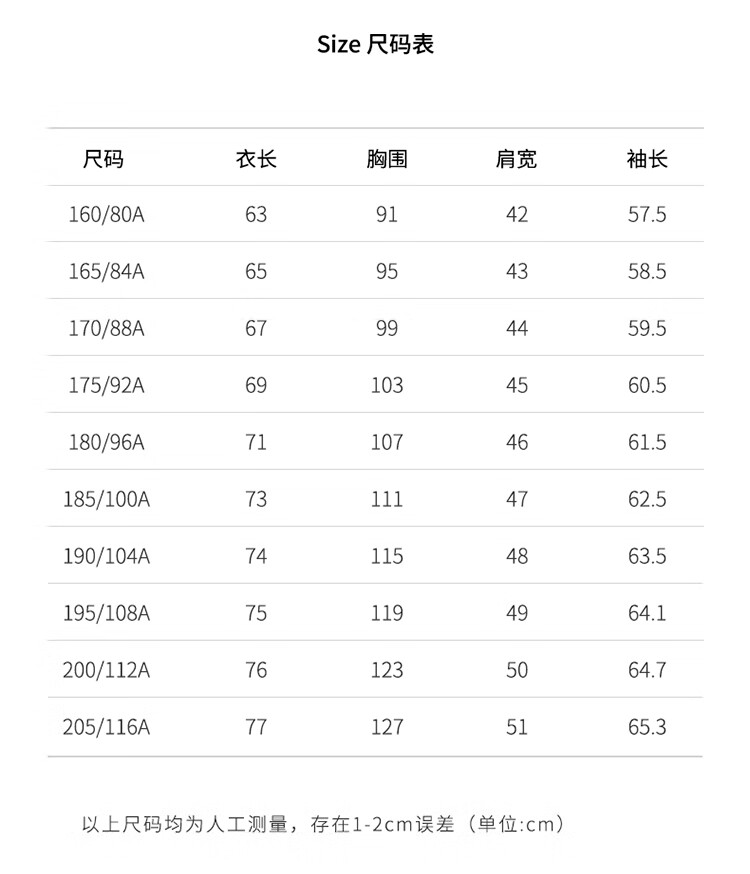 China (cm) 160-165/84-86 165-170 / 88-90 167-172 / 92-96 168-173 / 98-102 170-176 / 106-110