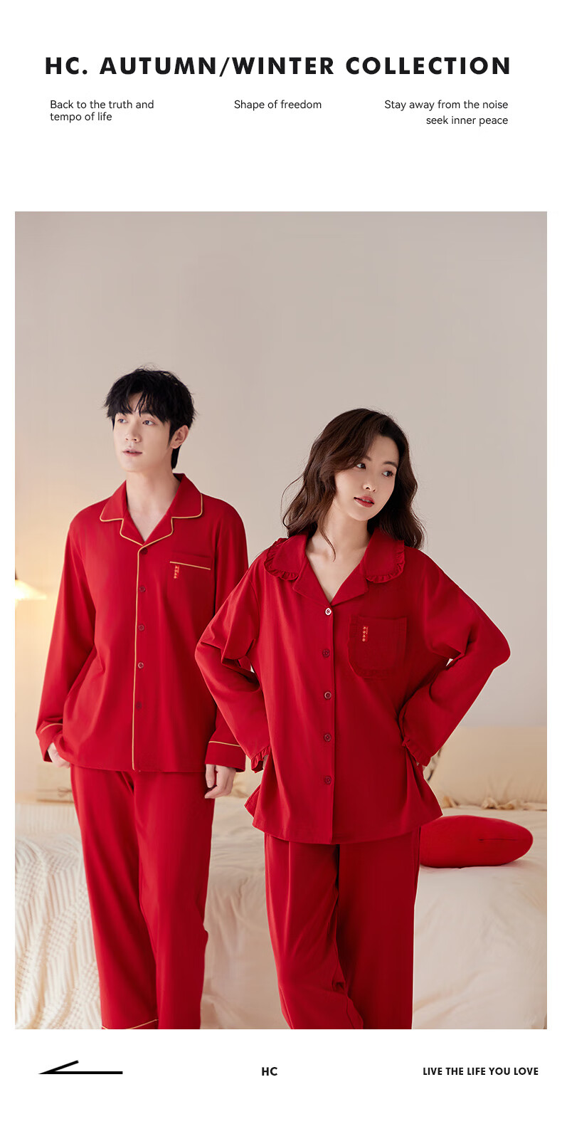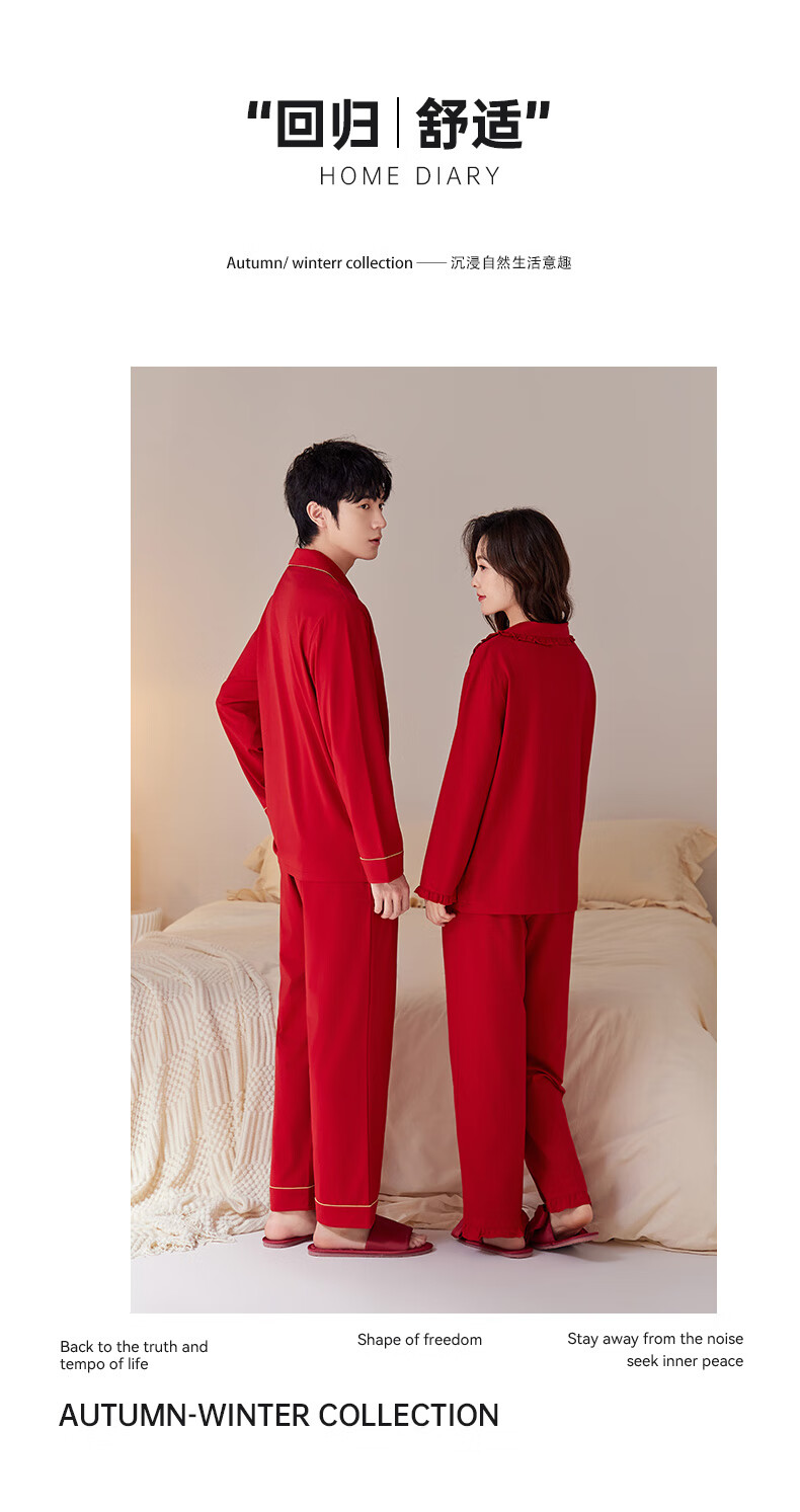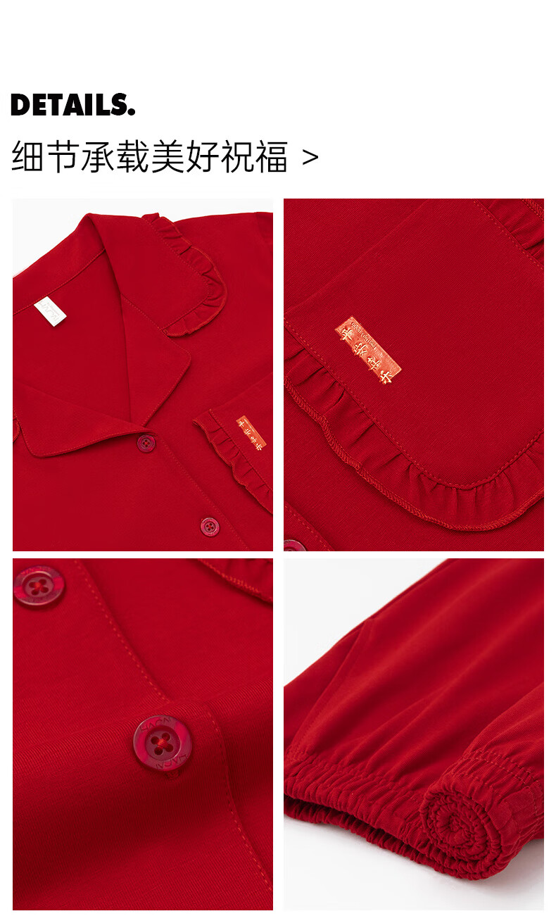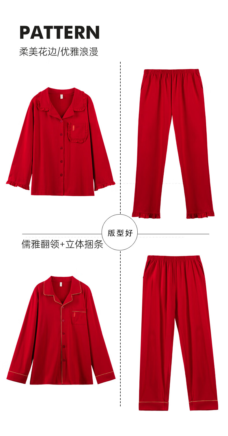 Han Cai Pajamas Women's High-End Pure Cotton Year of the Horse Zodiac Year Women's Wedding New Year Red Couple Pajamas Set Rose Red XXL