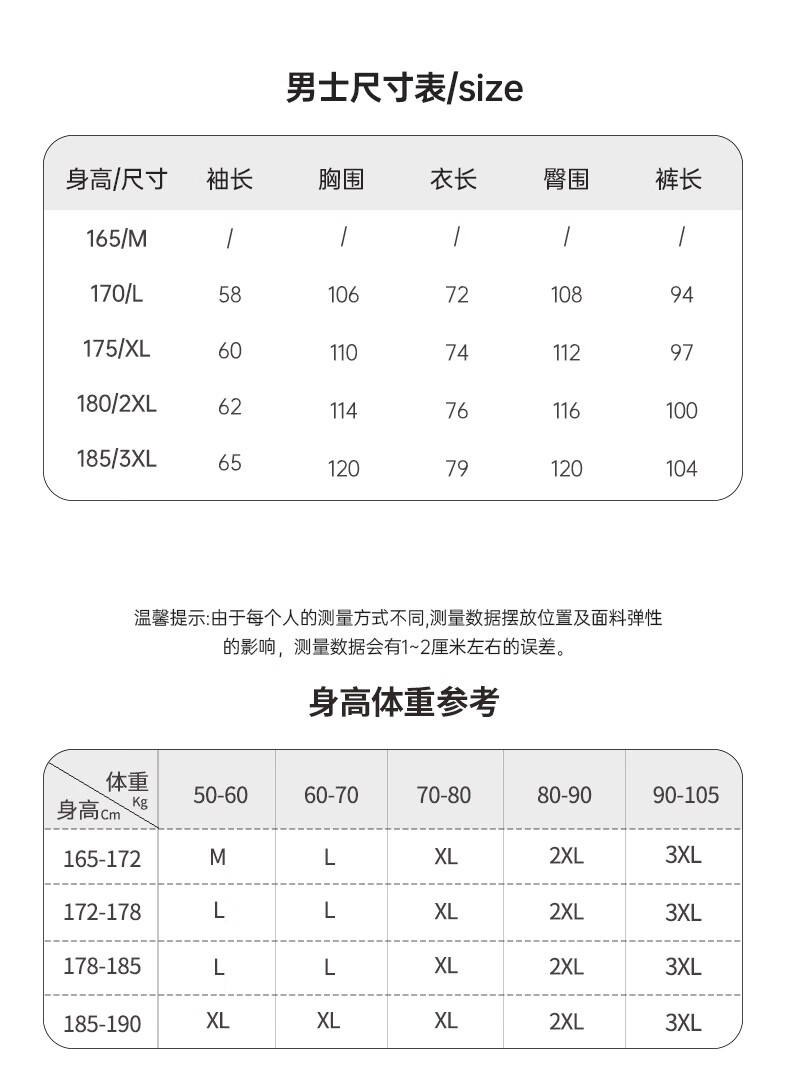 China (cm) 160-165/84-86 165-170 / 88-90 167-172 / 92-96 168-173 / 98-102 170-176 / 106-110