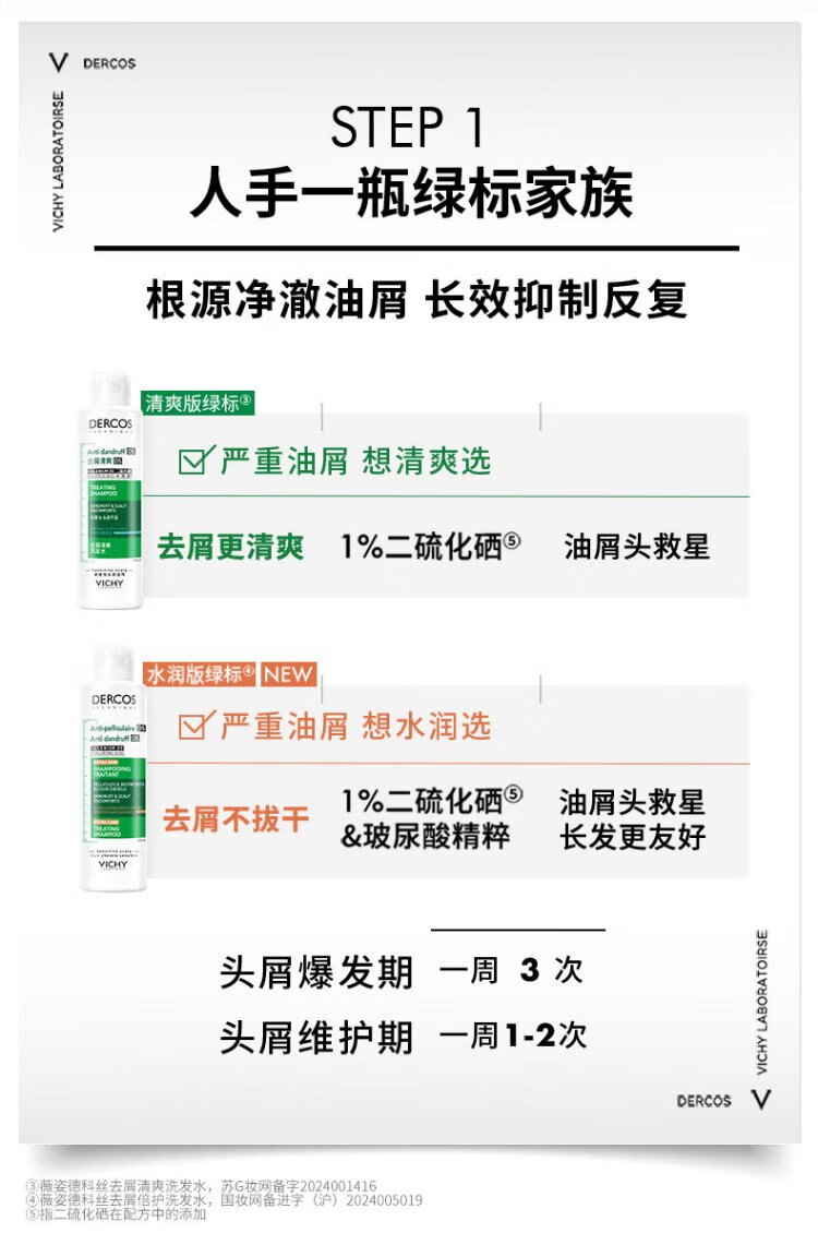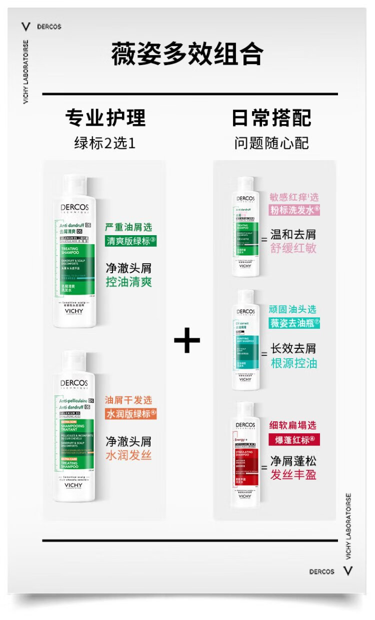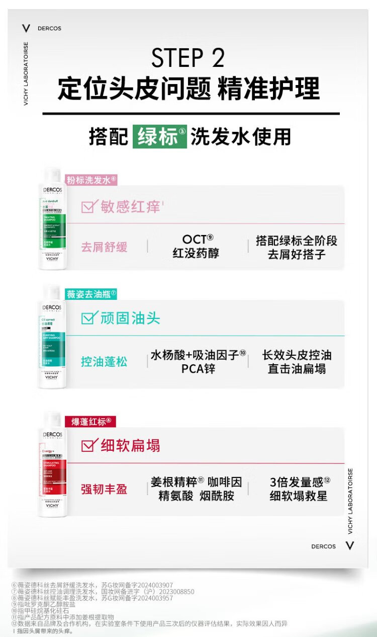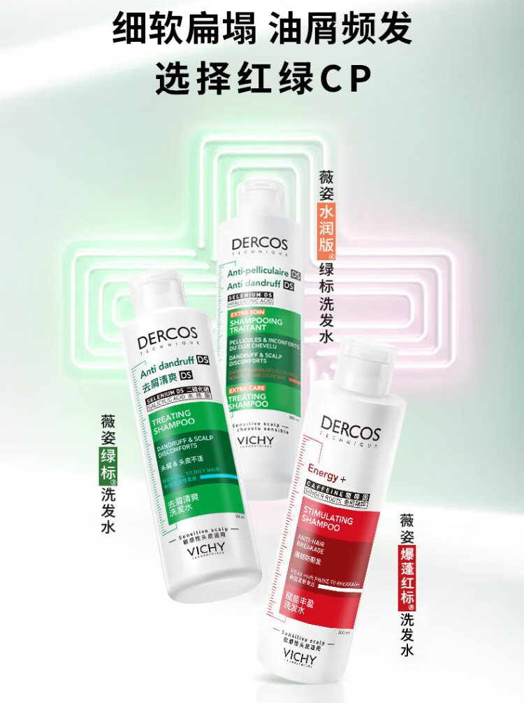 VICHY shampoo set, anti-dandruff, fluffy, anti-breakage, improvement of fineness, softness, green label 390ml + red label 200ml, unisex