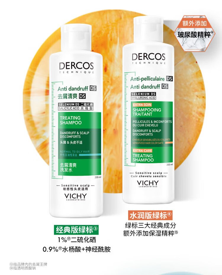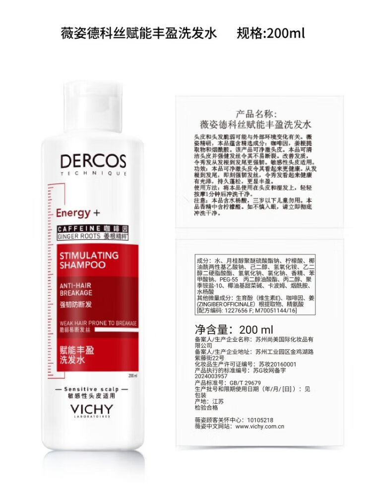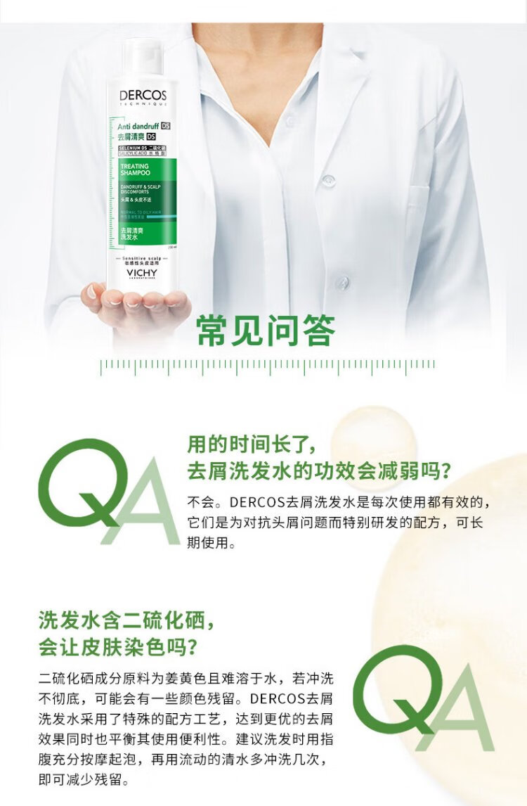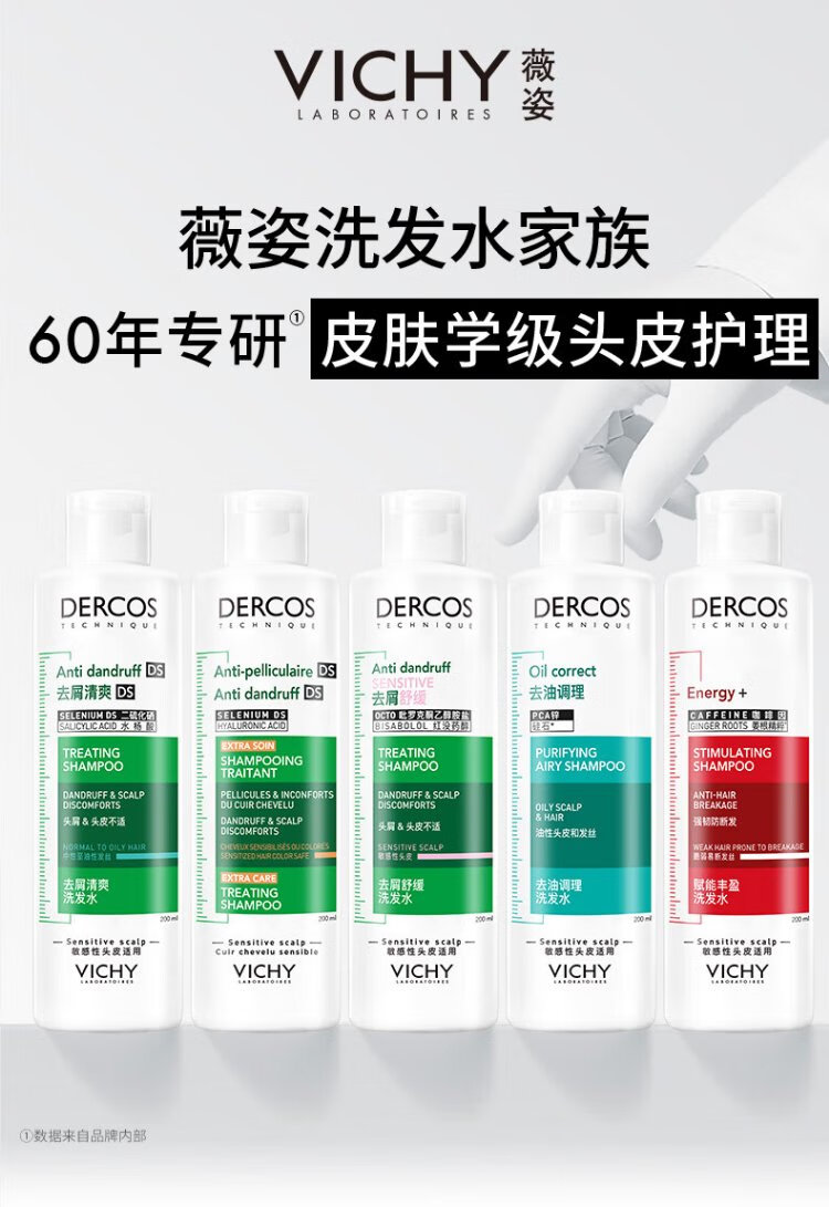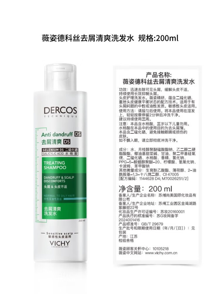 VICHY shampoo set, anti-dandruff, fluffy, anti-breakage, improvement of fineness, softness, green label 390ml + red label 200ml, unisex