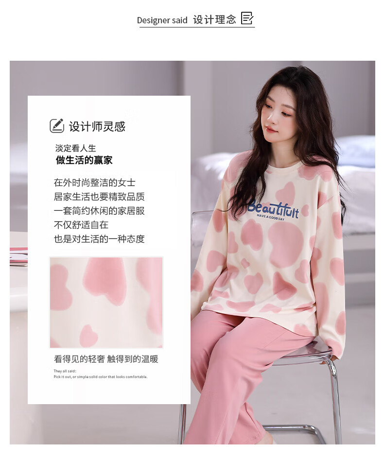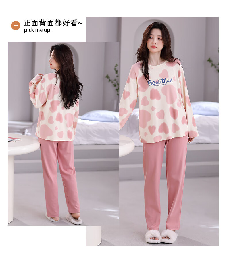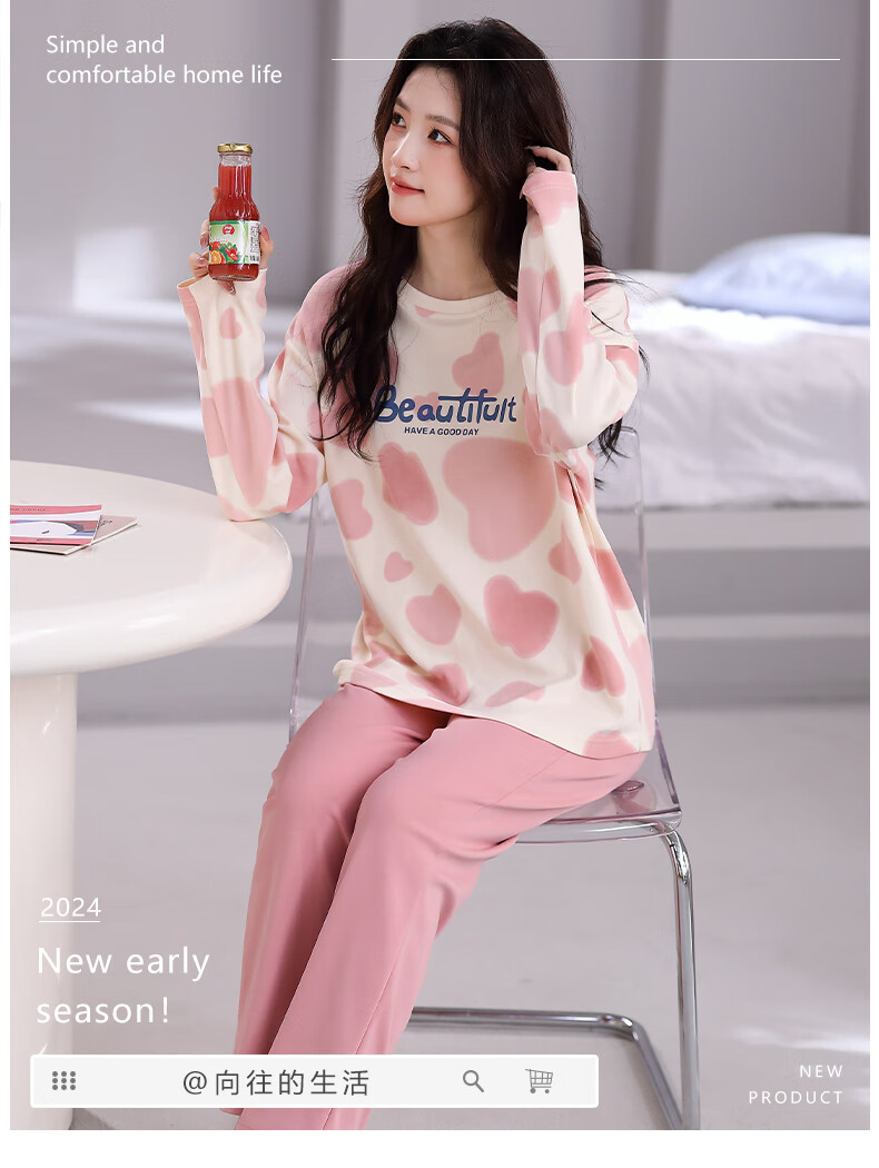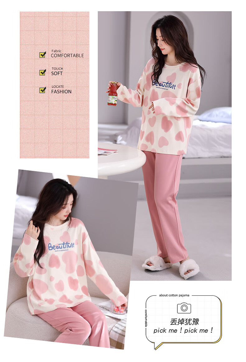 FENTENGCARE Women's Pajamas Women's Autumn and Winter New Product 100% Cotton Round Neck Pullover Long Sleeve Loose Casual Can Be Weared Outside Home Clothes Q3
