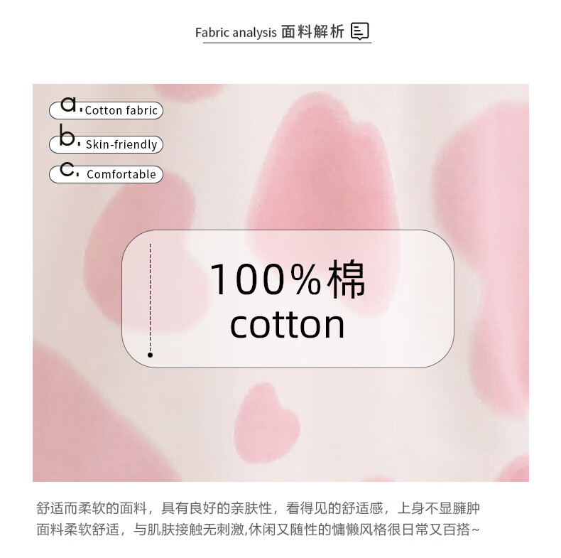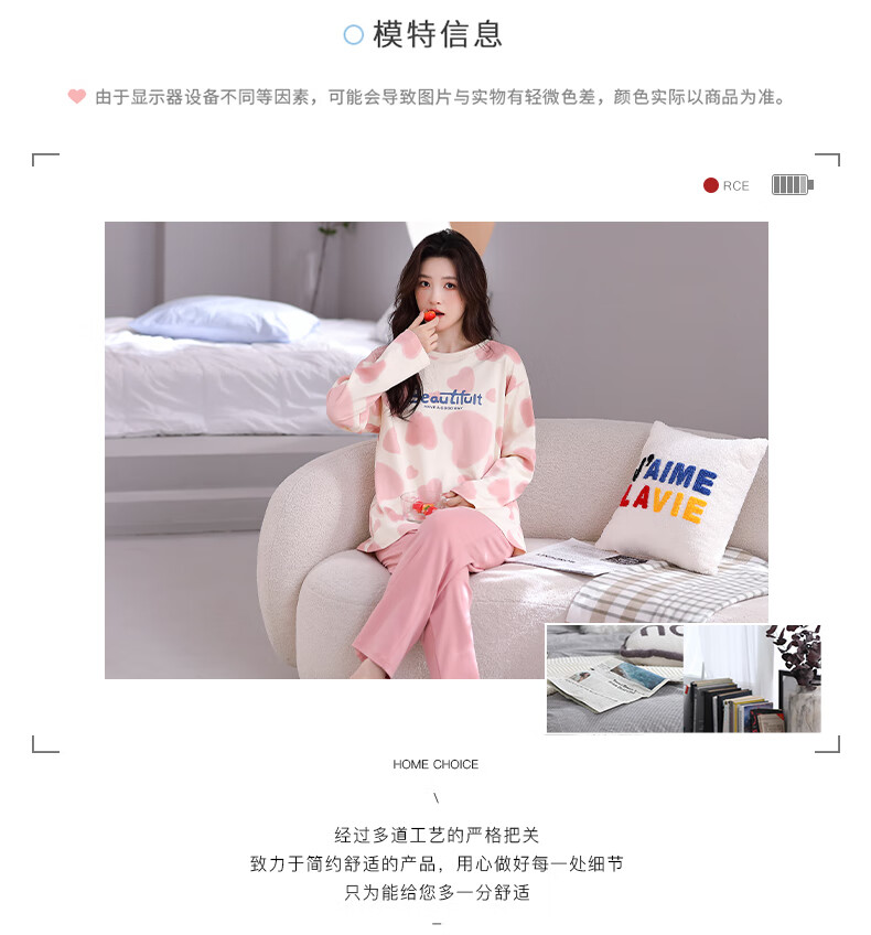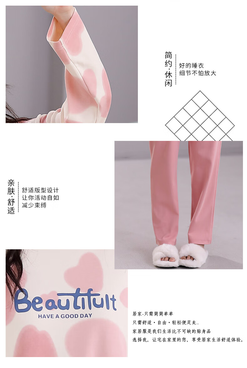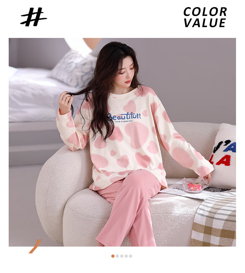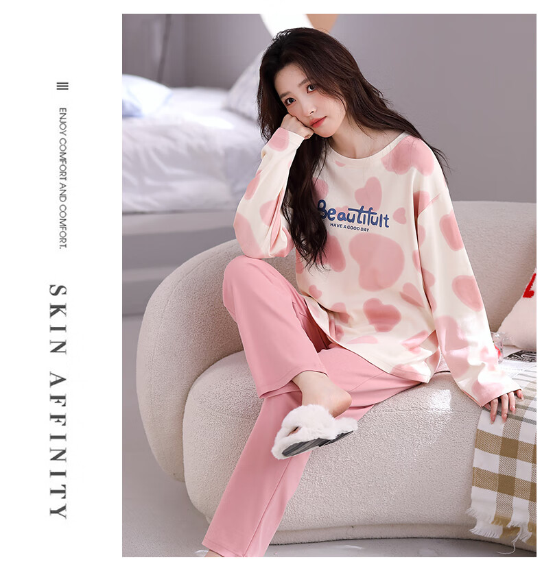 FENTENGCARE Women's Pajamas Women's Autumn and Winter New Product 100% Cotton Round Neck Pullover Long Sleeve Loose Casual Can Be Weared Outside Home Clothes Q3