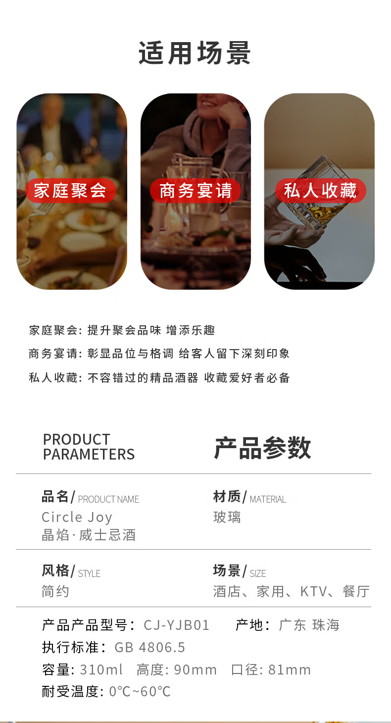 Circle joy glass whiskey glass, thickened European spirit glass, foreign wine glass, household beer glass, single pack
