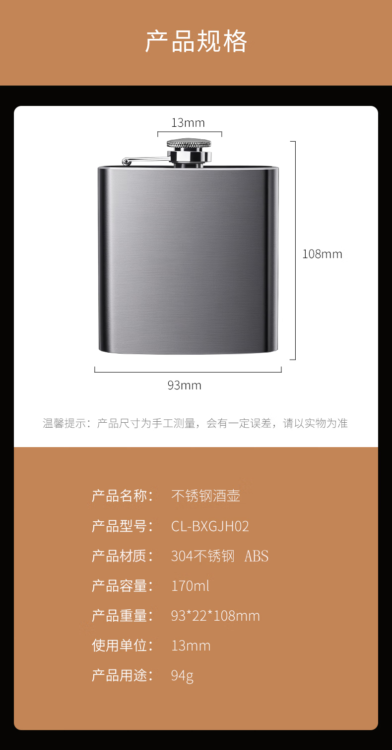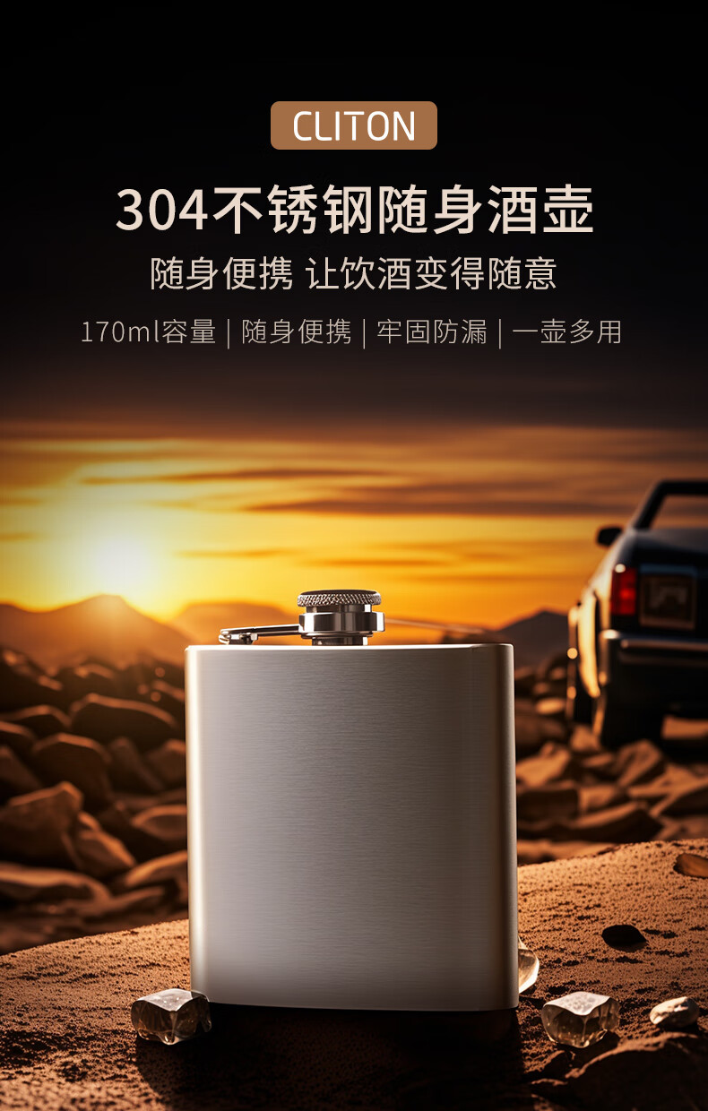 CLITON wine bottle 304 stainless steel portable outdoor thickened white wine bottle white wine bottle flat wine bottle 3 packs