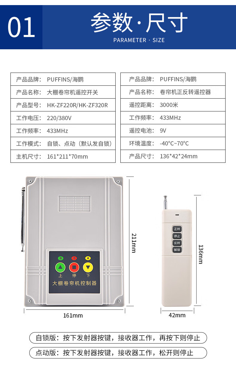Puffin greenhouse roller shutter machine remote control motor forward and reverse switch electric mobile phone wireless remote control limit reverse controller 380V motor 3KM remote control