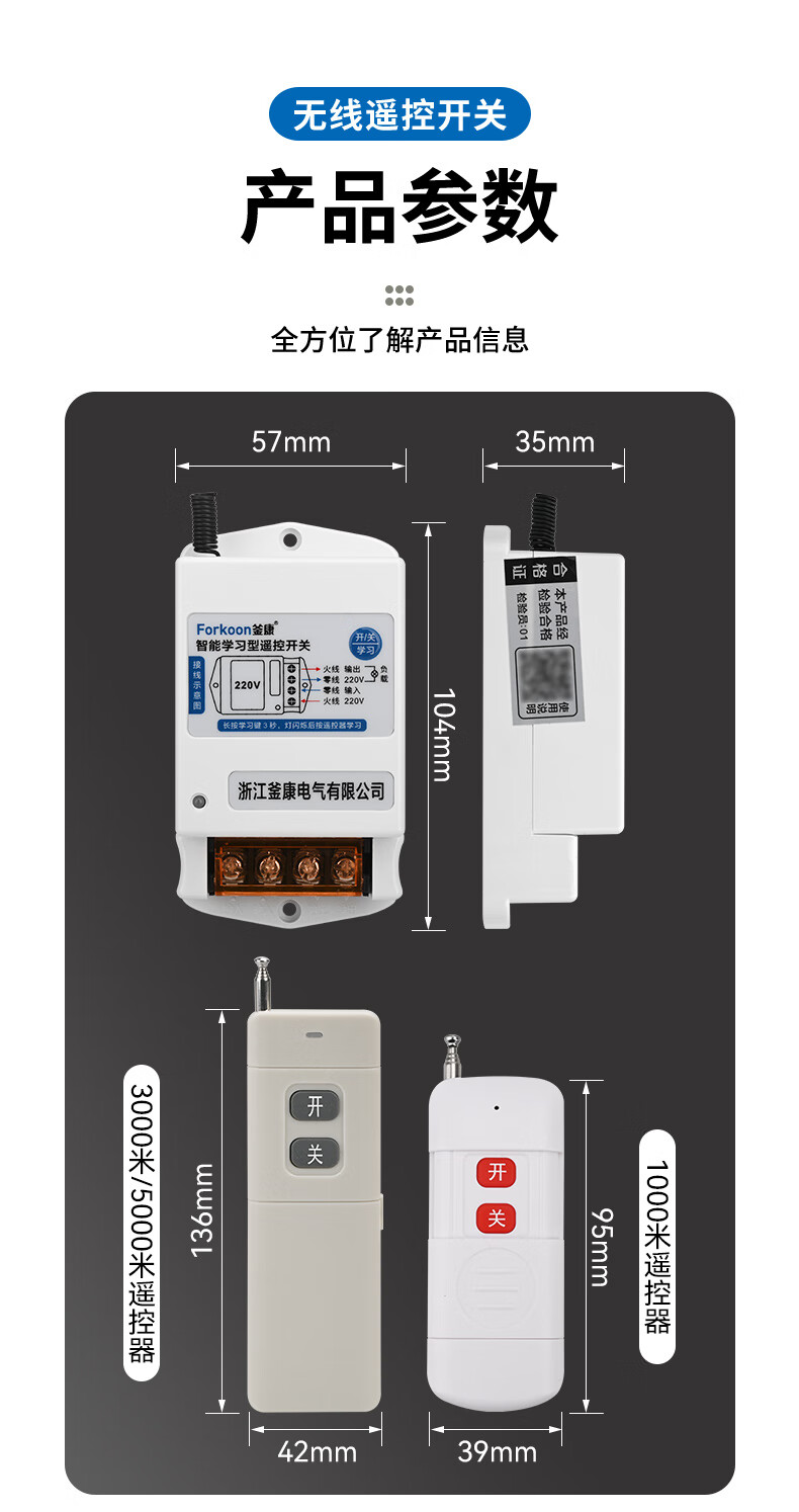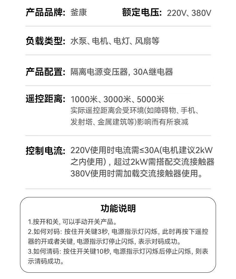 Fukang wireless remote control switch high-power wall-penetrating water pump motor switch remote intelligent power supply pumping controller 220V 1000 meters