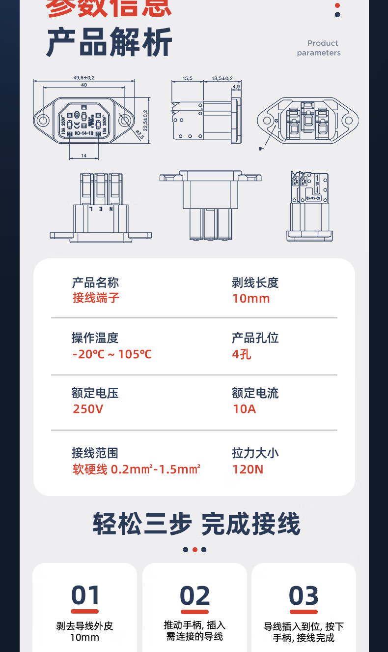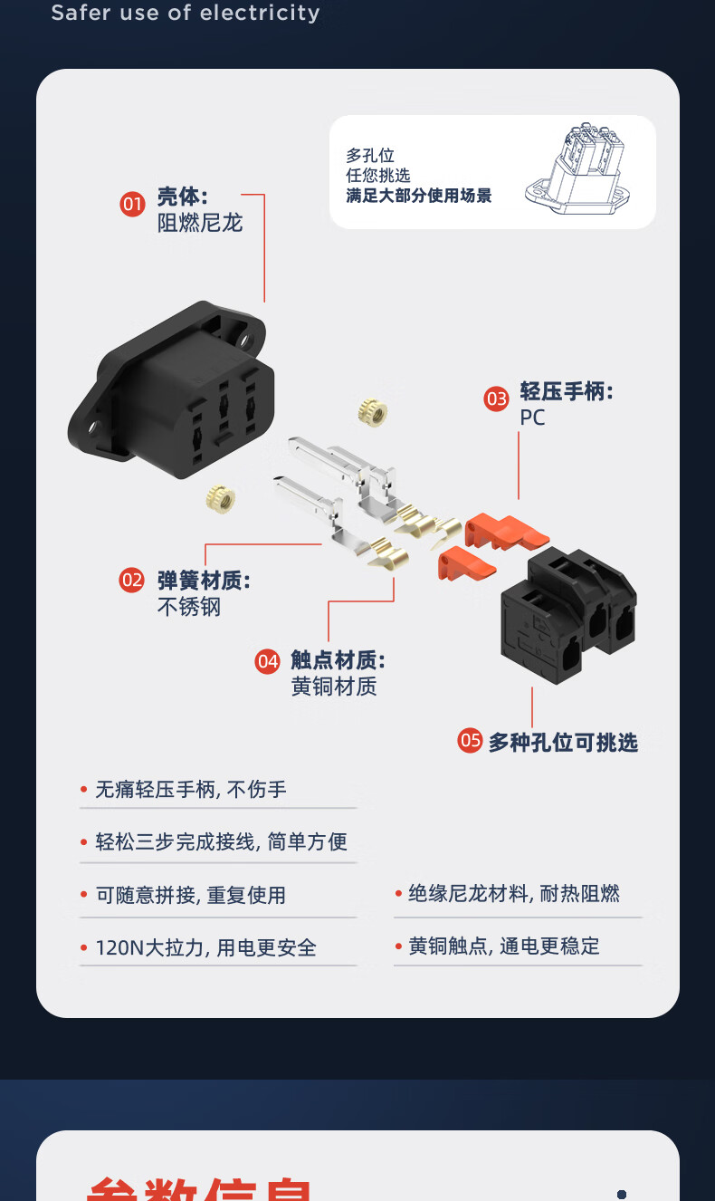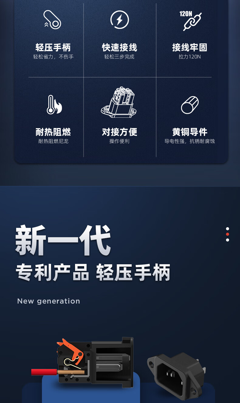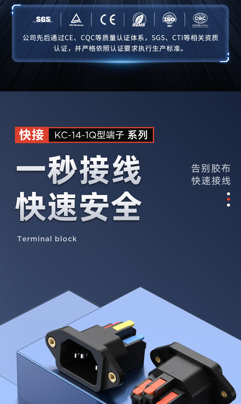 Huijun Quick Connect Pin Socket Weld-free Quick Wiring Press Power Socket Three-core Charging Pin Pin Male 250V10A KC-14-1Q Quick Connect Pin Socket Black-Three Color Handle-5 Pack