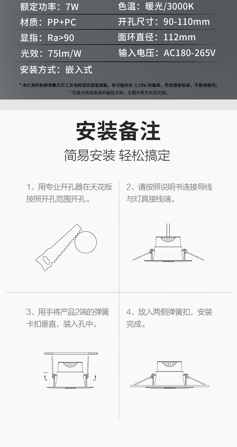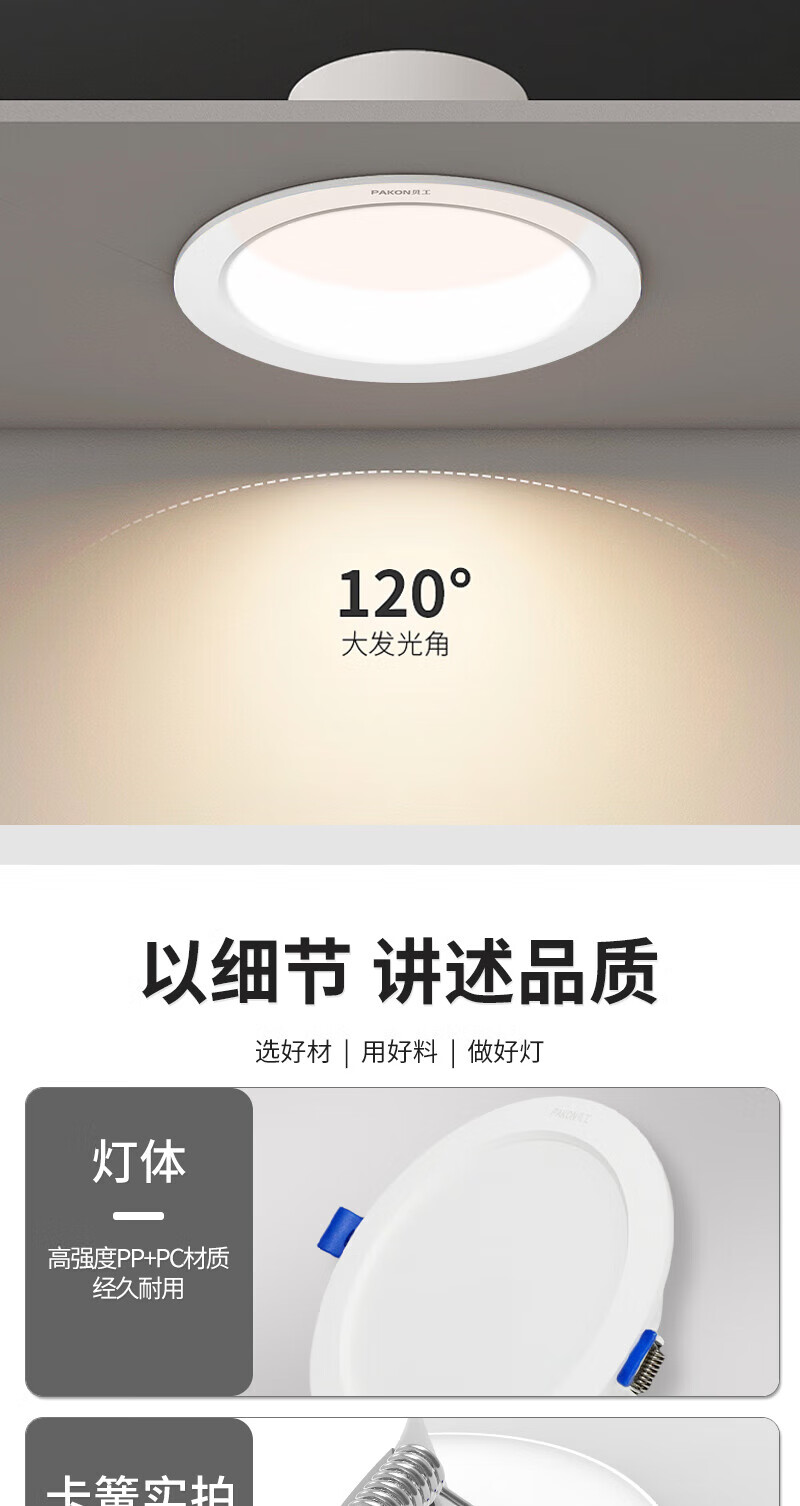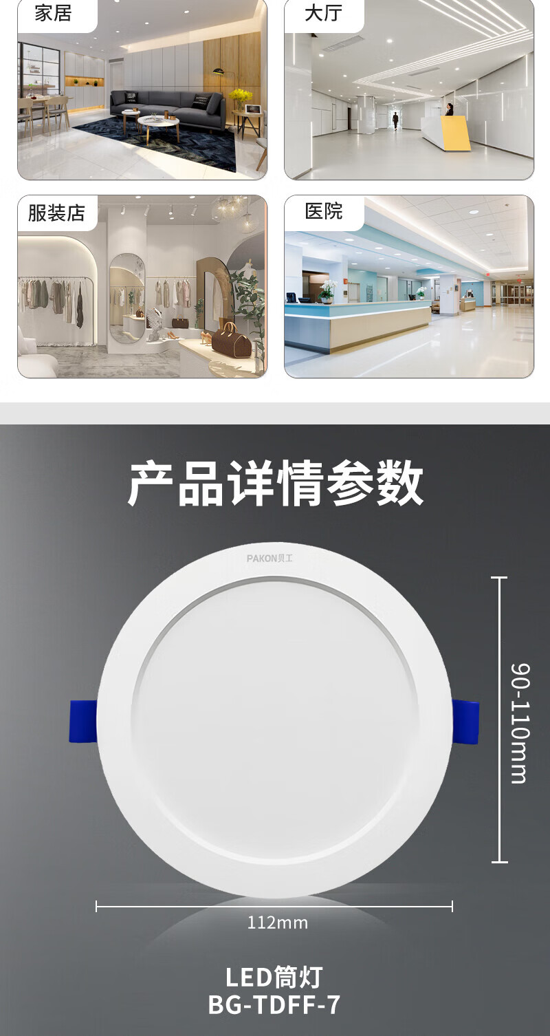 Beigong LED downlight recessed downlight opening 9.5cm 3.5 inch 7W Ra 90 warm light ultra-thin downlight entrance light aisle ceiling light Extraordinary series