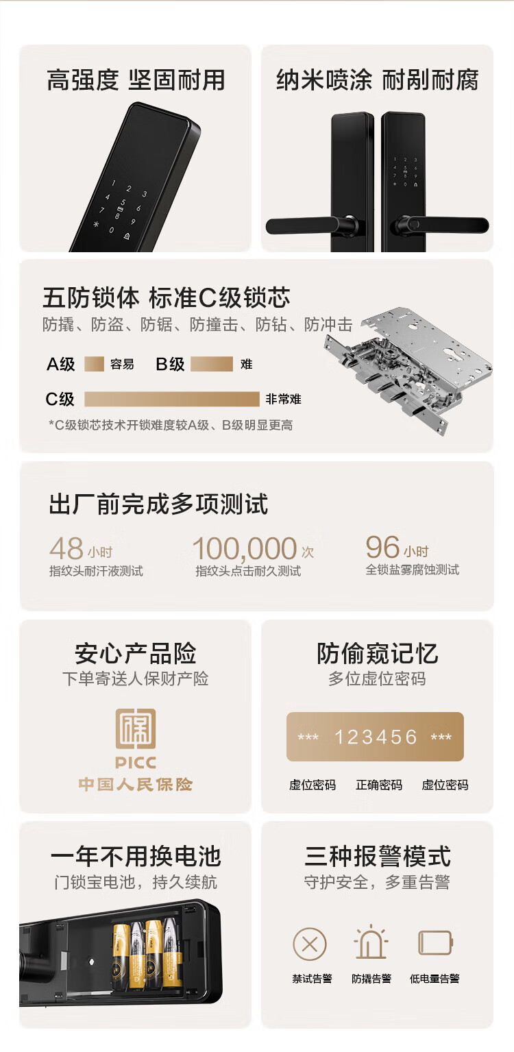 Made in Tokyo, smart door lock M10, fingerprint lock, password lock, electronic lock, C-level lock core, anti-theft door lock, free installation and national supplement